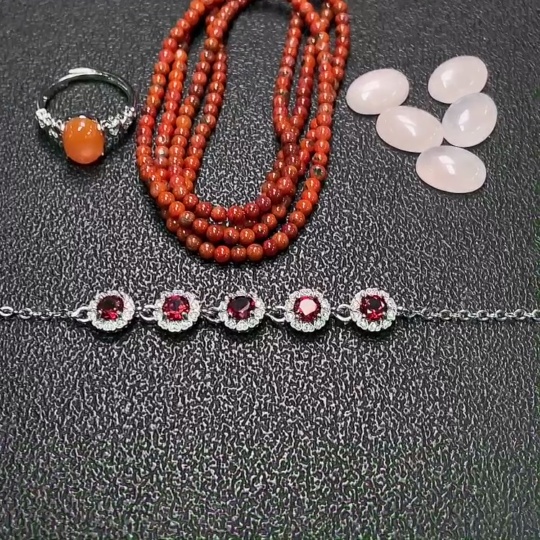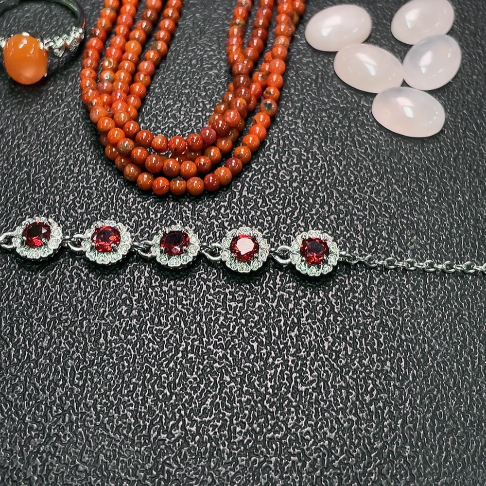 Crystal + Red Agline Agate + Garnet Jewelry Non-Gold Total Weight Approx..33g Sell as a Lot