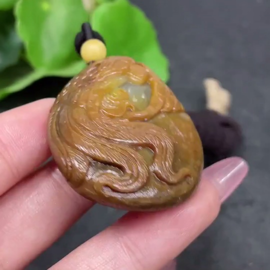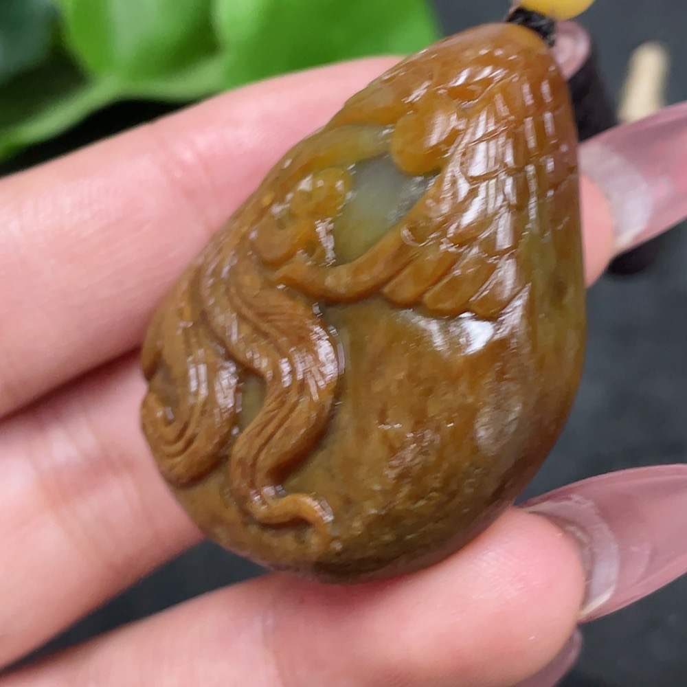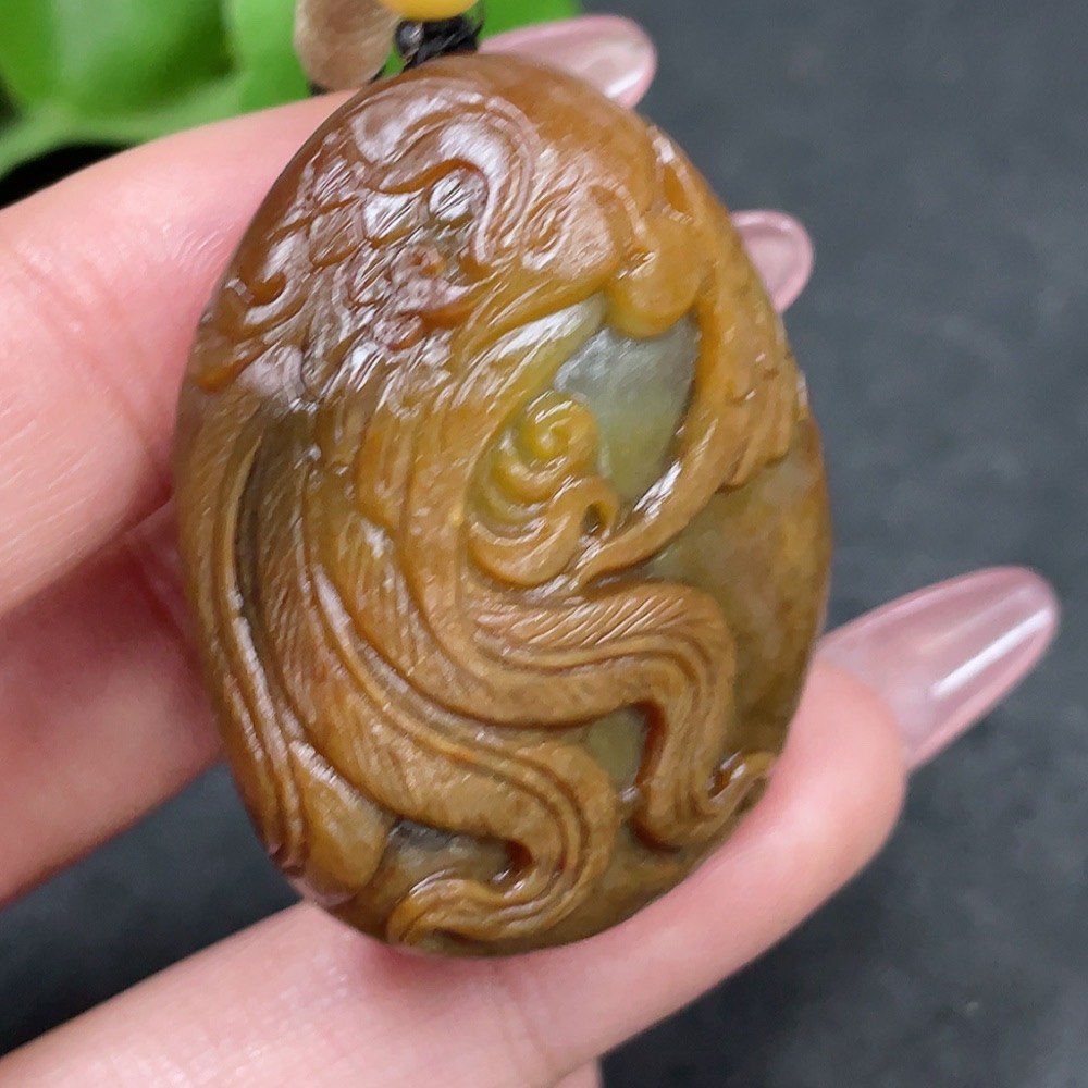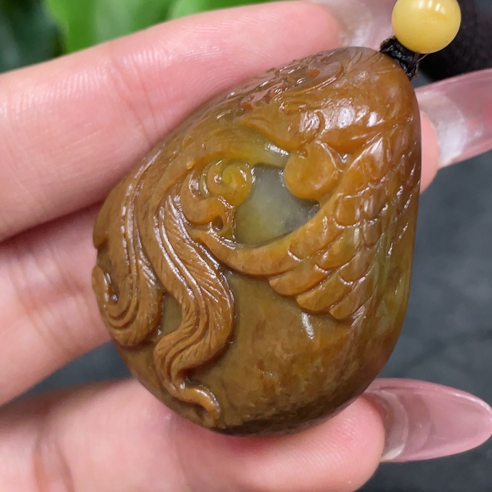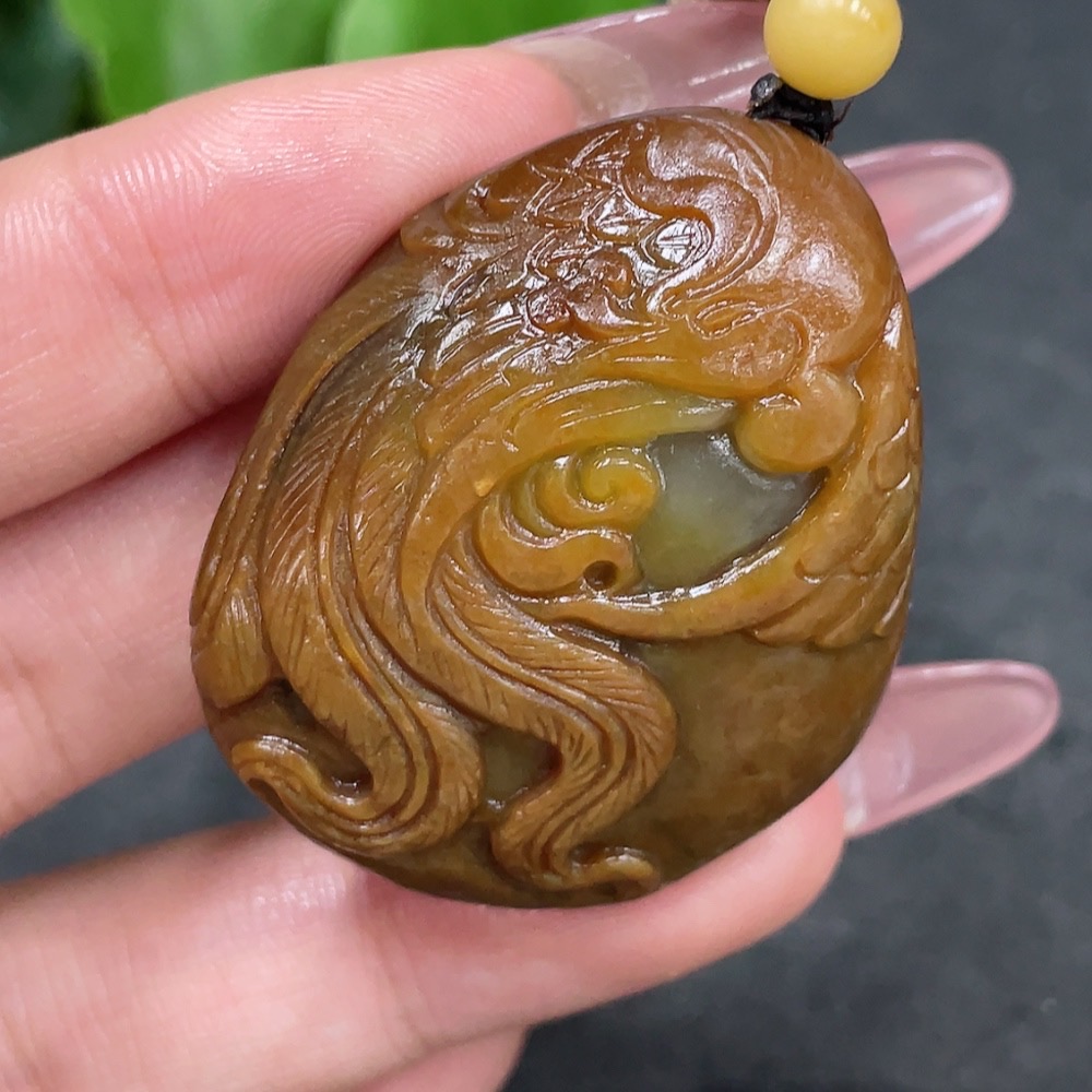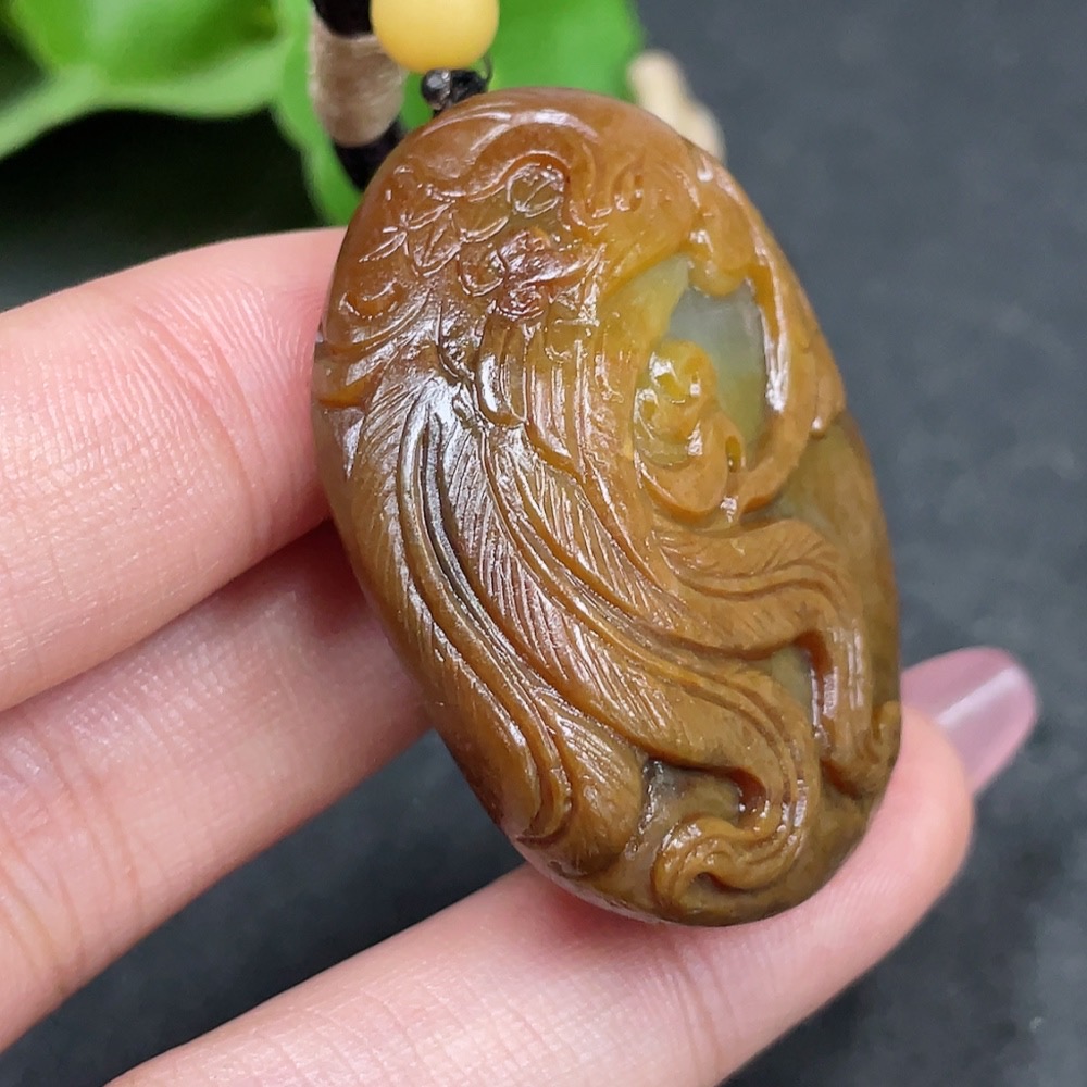 Hetian Jade Pendant Phoenix with undetermined skin color origin containing other mineral components total weight approximately (including rope) 36.9g