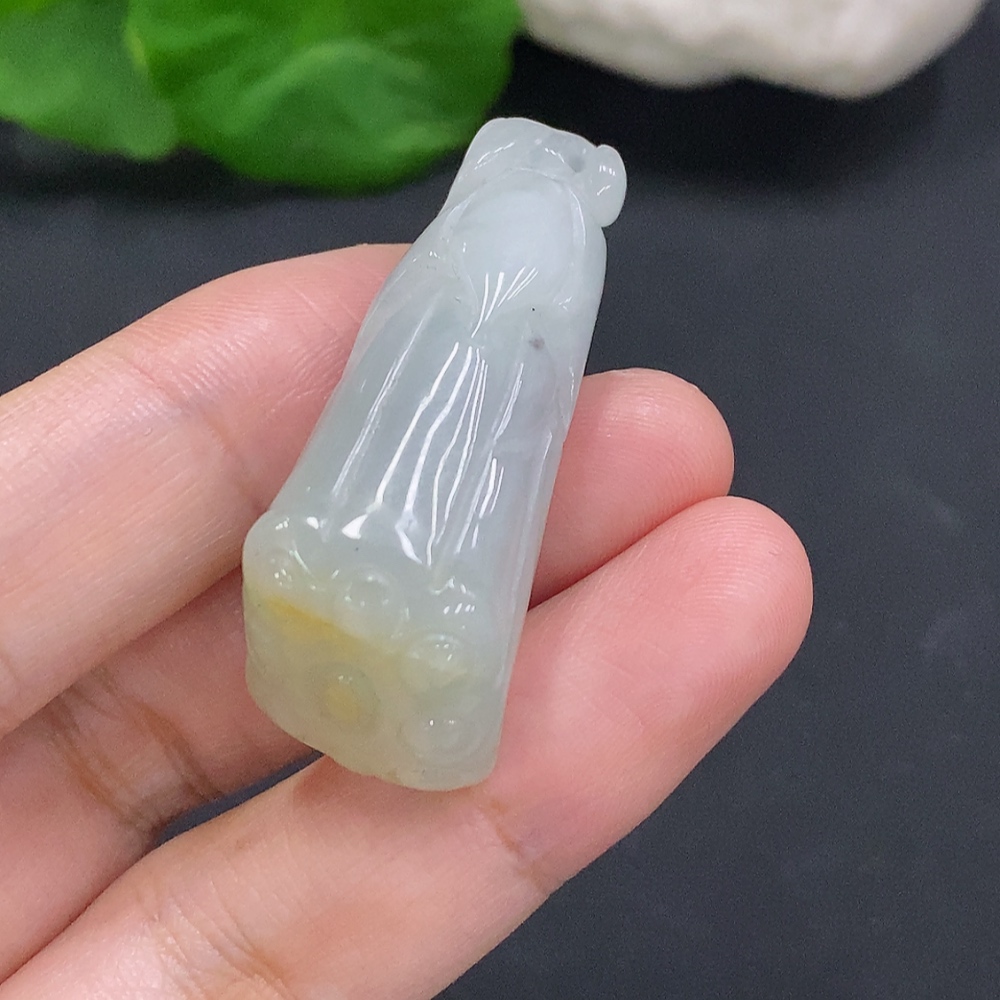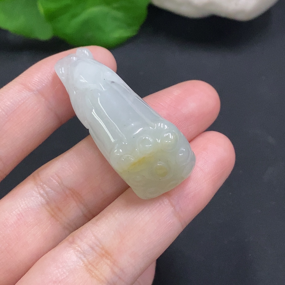 Jadeite Lotus Pod Pendant Total Weight Approx. 16.8g (Yellow color origin undetermined)