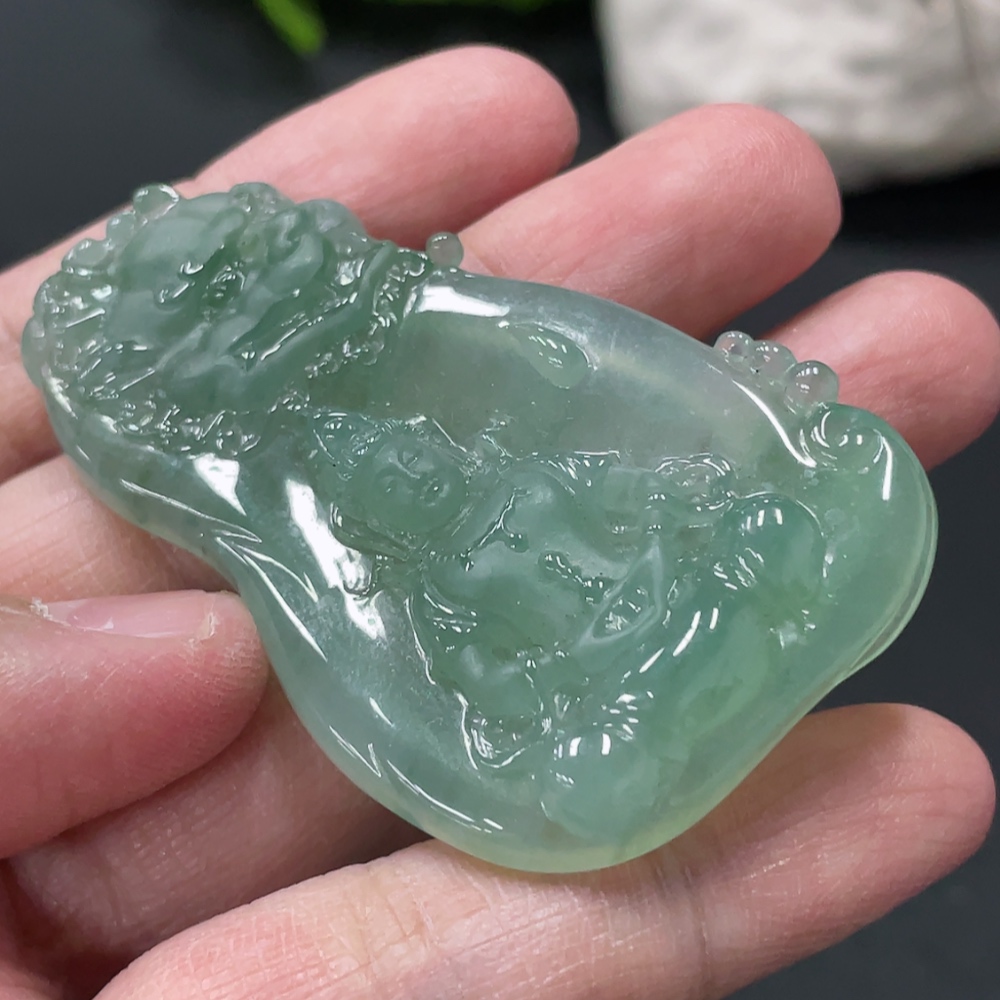 Jadeite Manjushri Bodhisattva Pendant Total Weight Approx. 21.5g