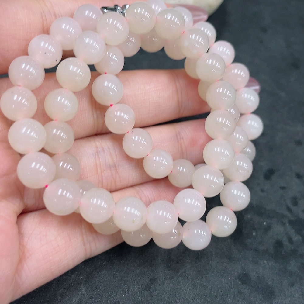 Hetian Jade Bead Necklace Non-Gold Approx. 8mm Total Weight About 47.2g