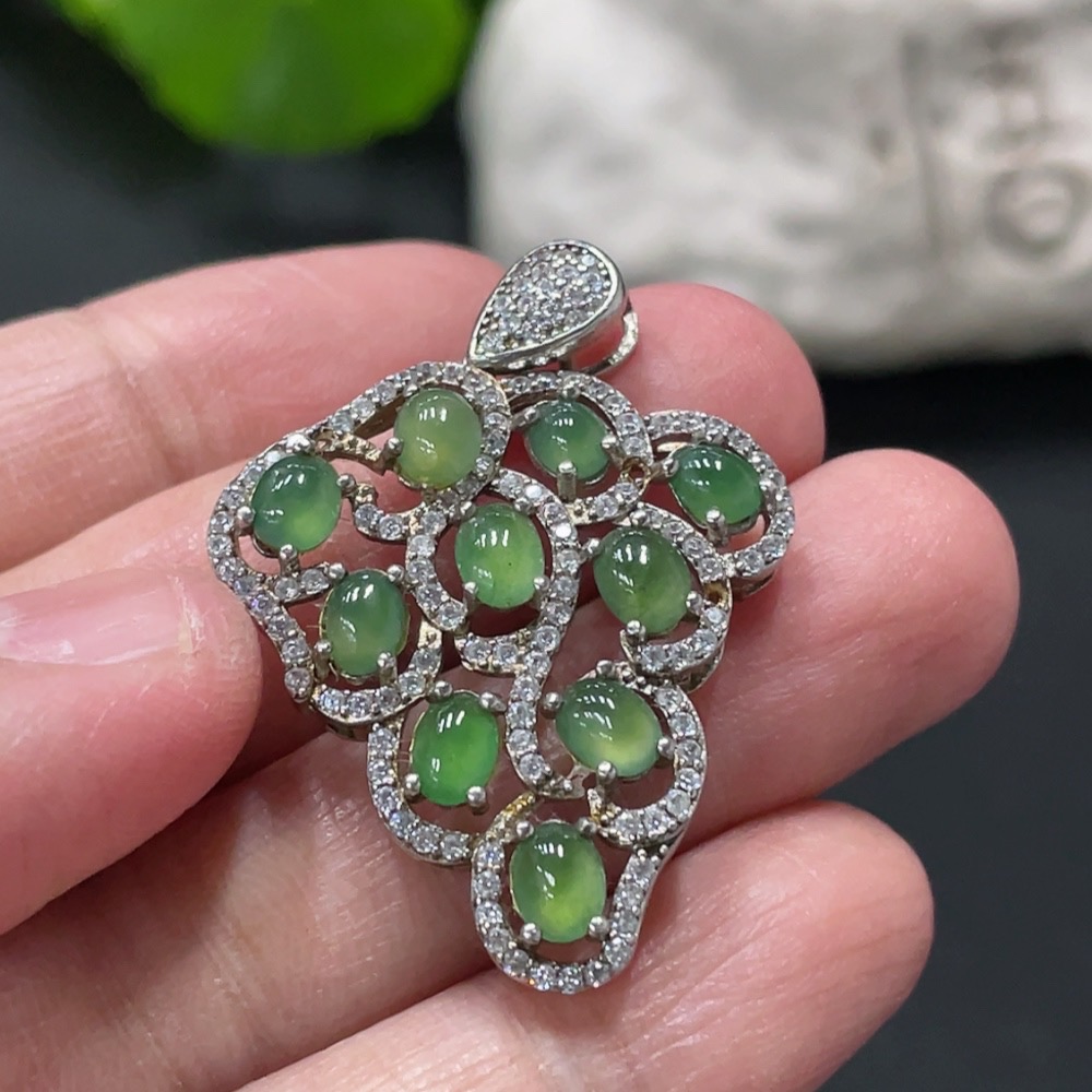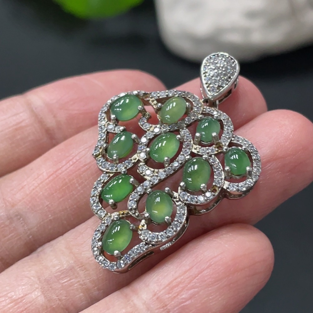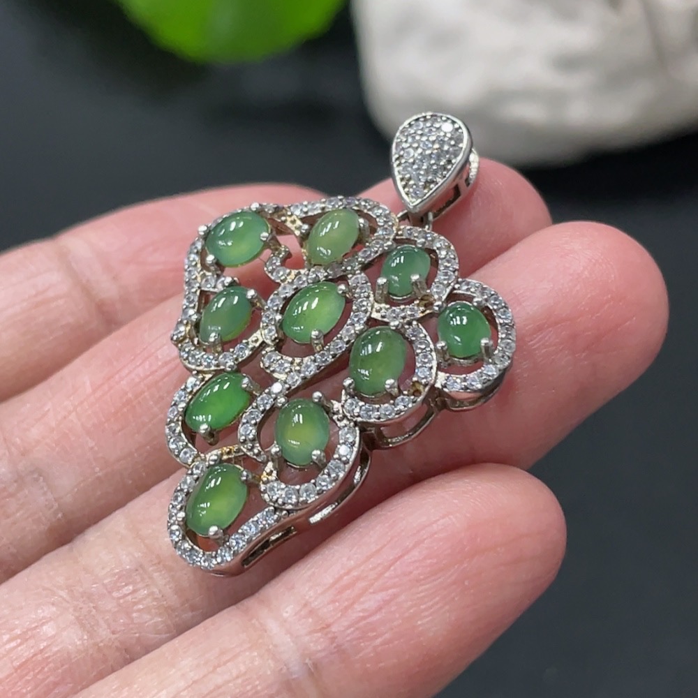 Jadeite Inlaid Pendant Non-Gold Total Weight Approx. 4.1g
