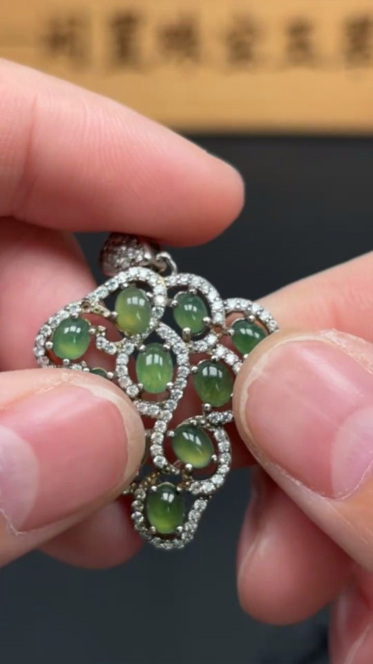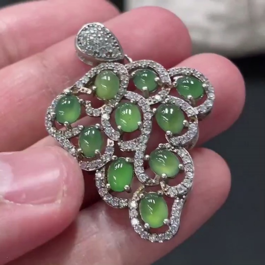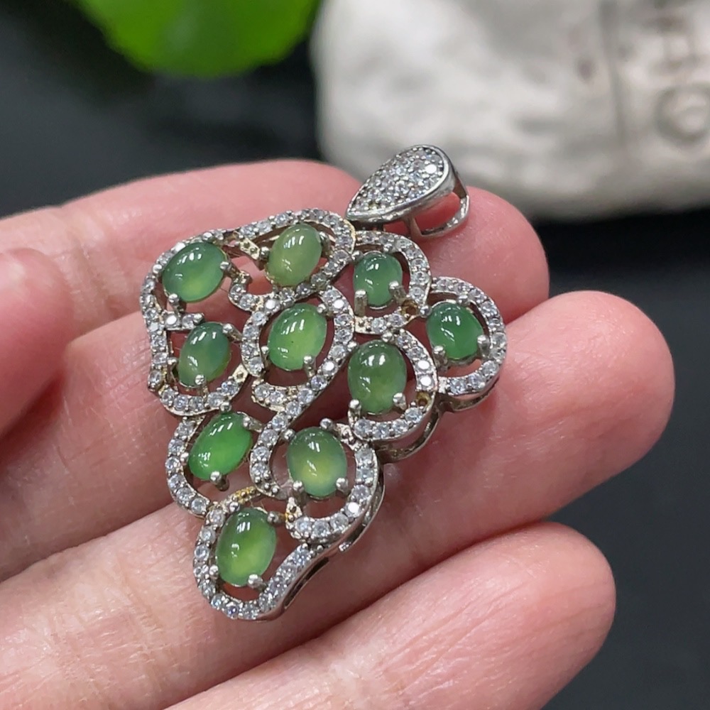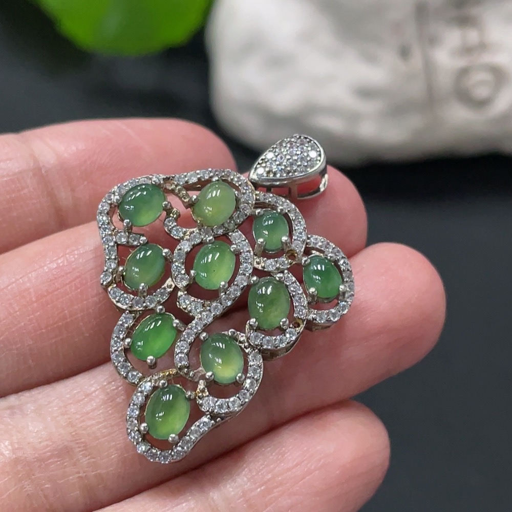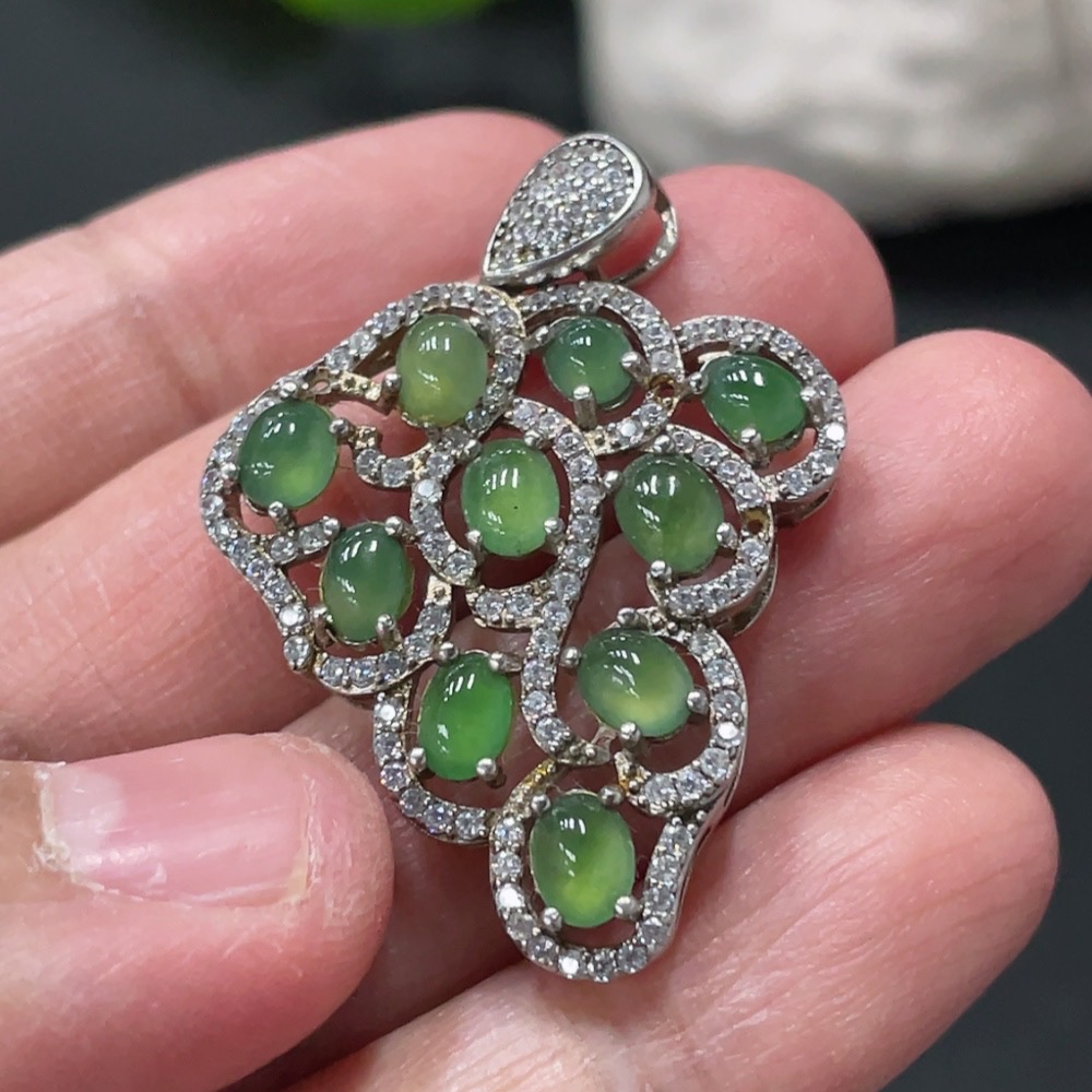 Jadeite Inlaid Pendant Non-Gold Total Weight Approx. 4.1g