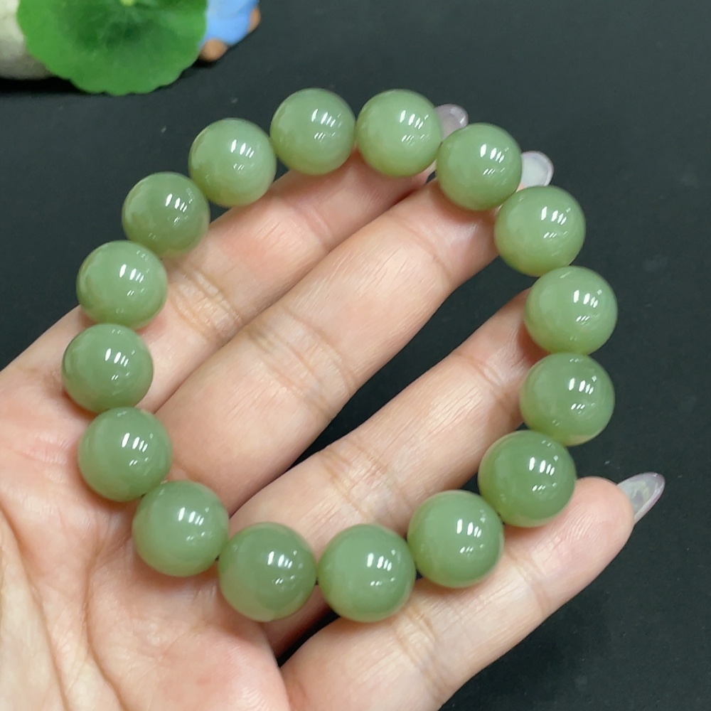 Hetian Jade Bracelet 12.6mm Approx. Total Weight About 54.5g