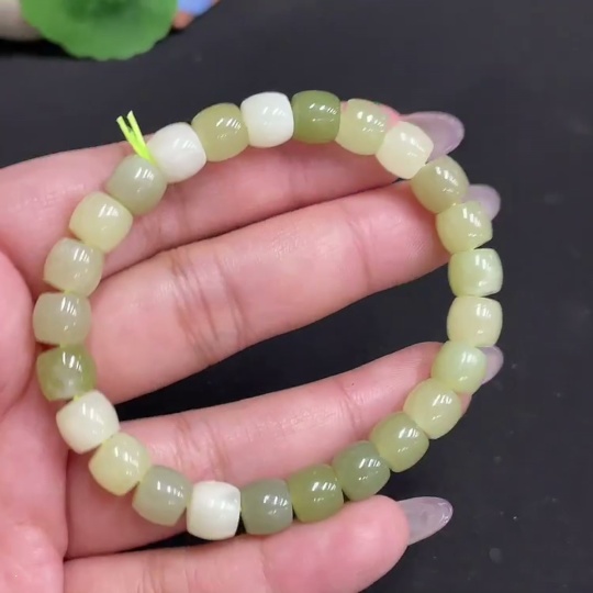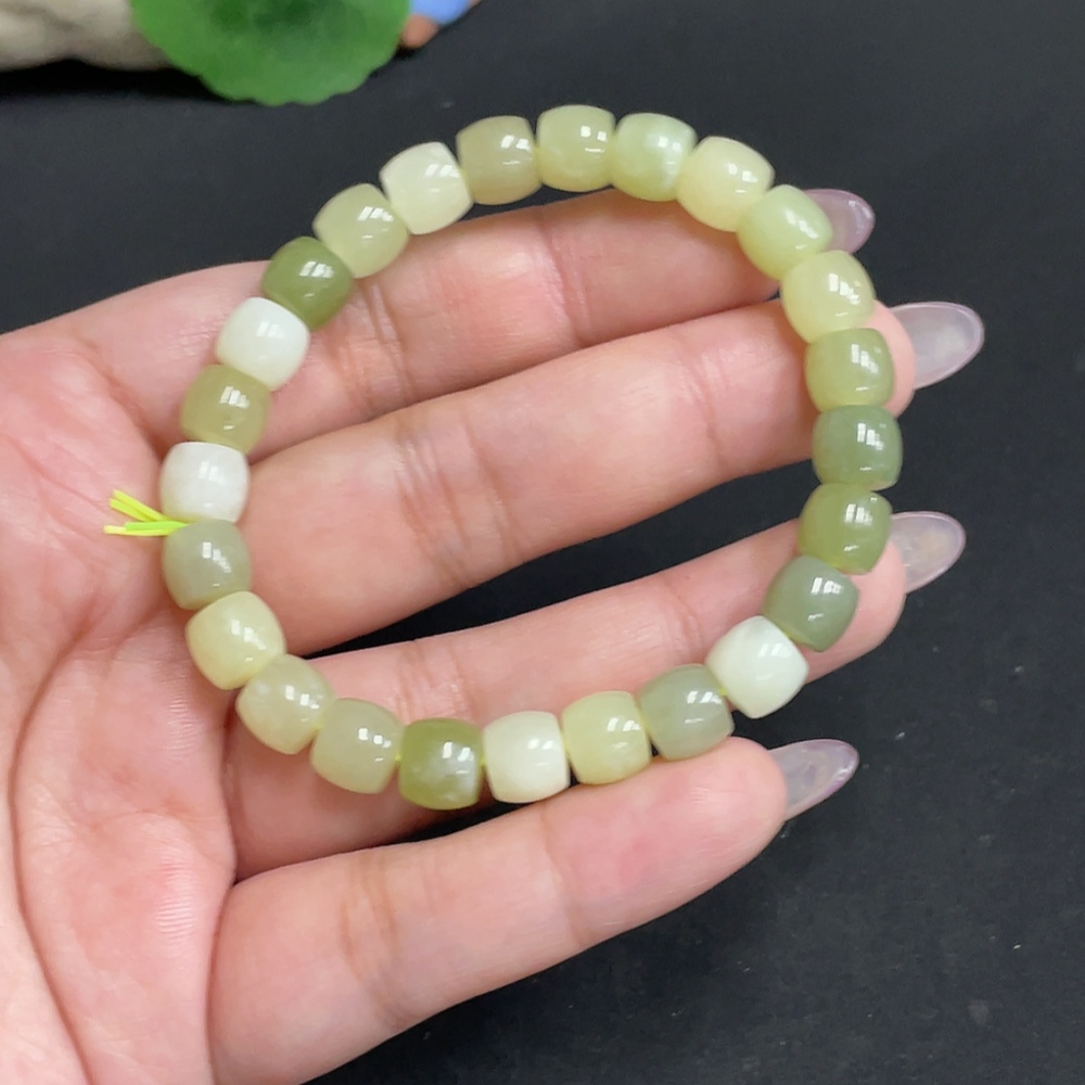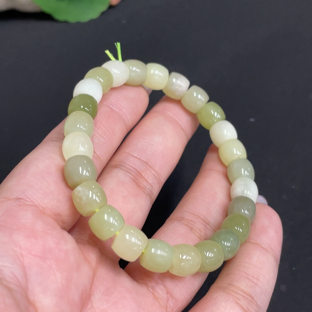 Hetian Jade Bracelet, Approx. 7.9 mm Beads, Total Weight About 22g, Containing Other Mineral Components
