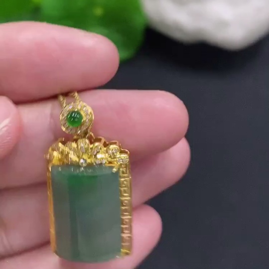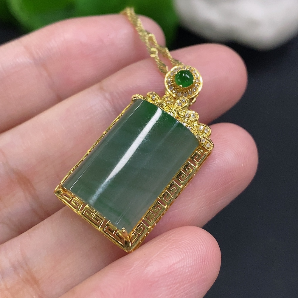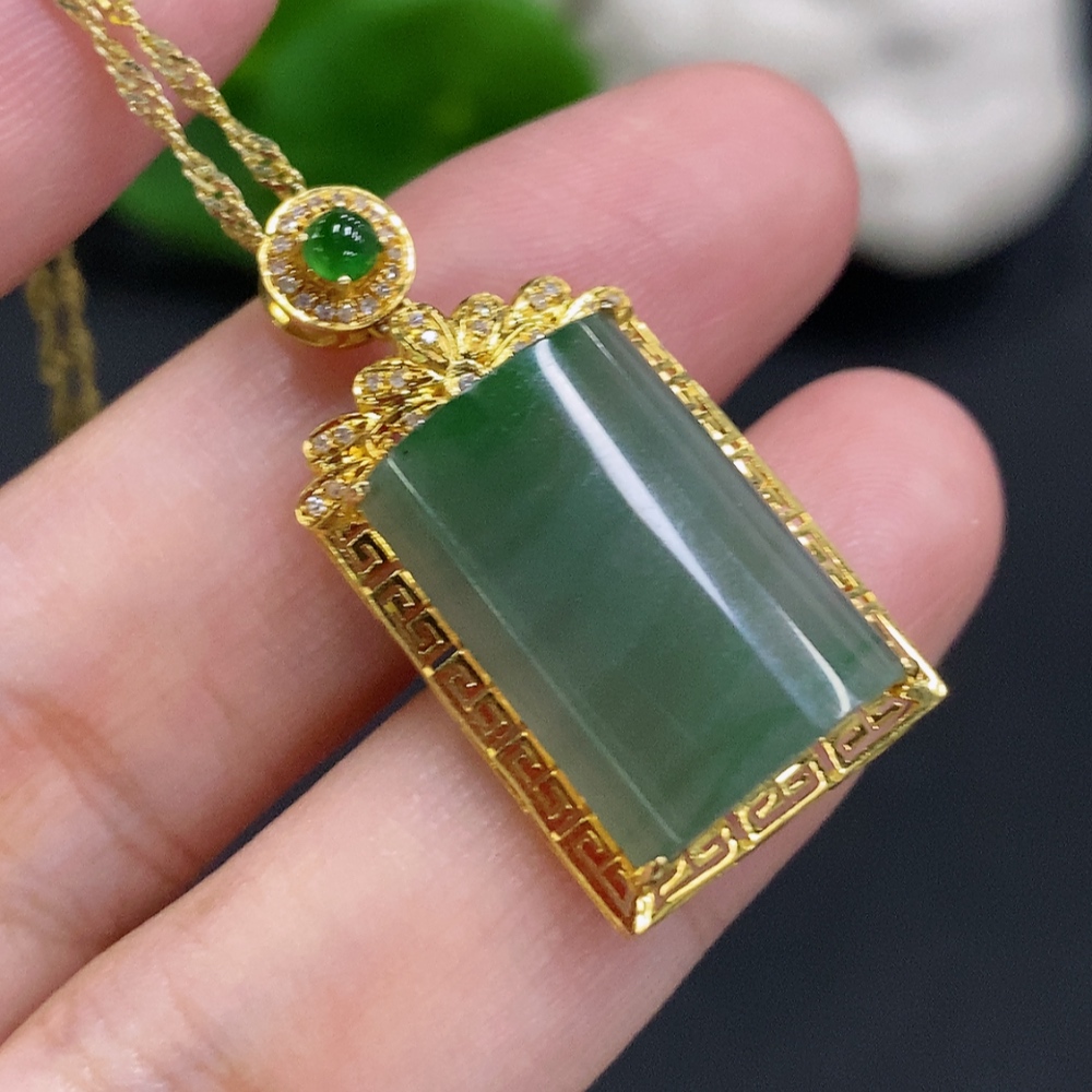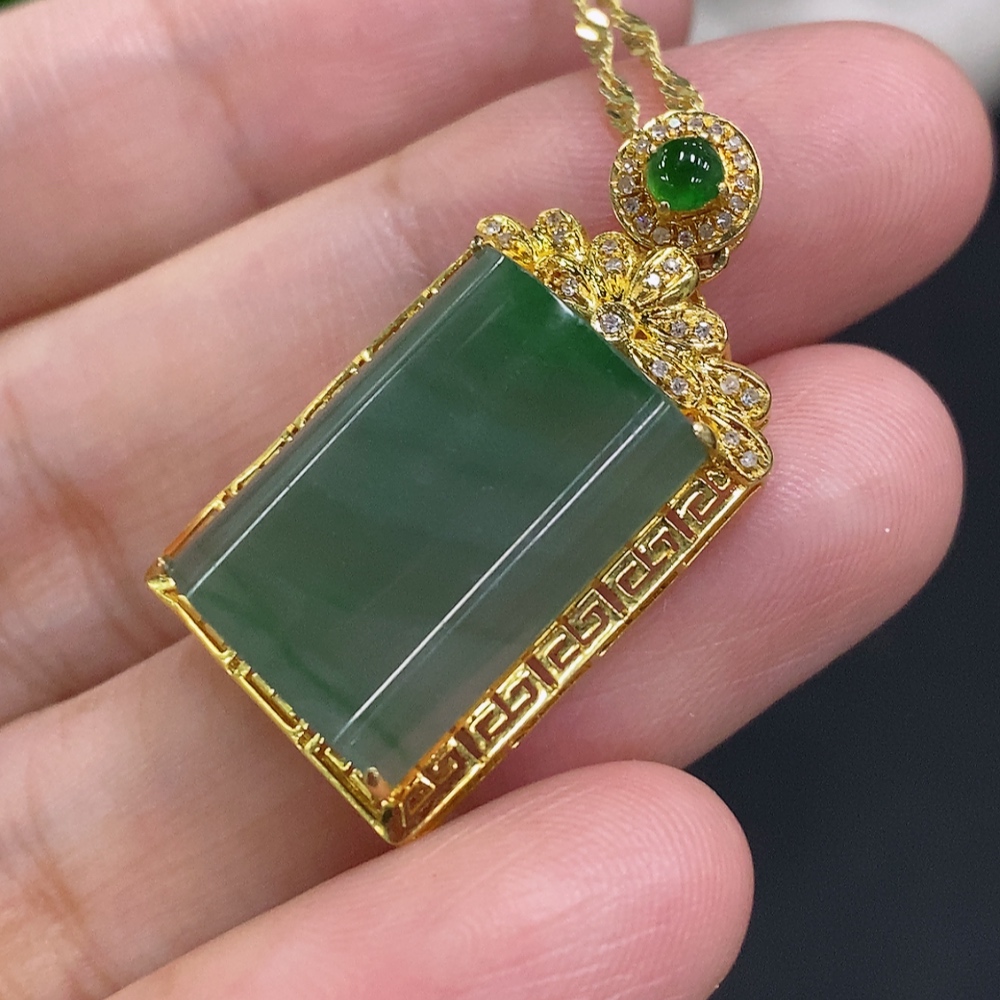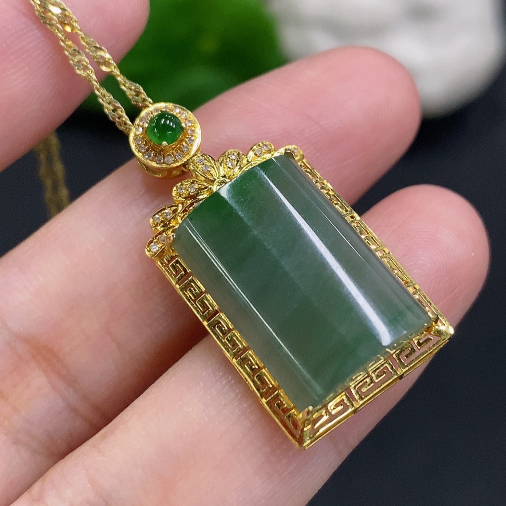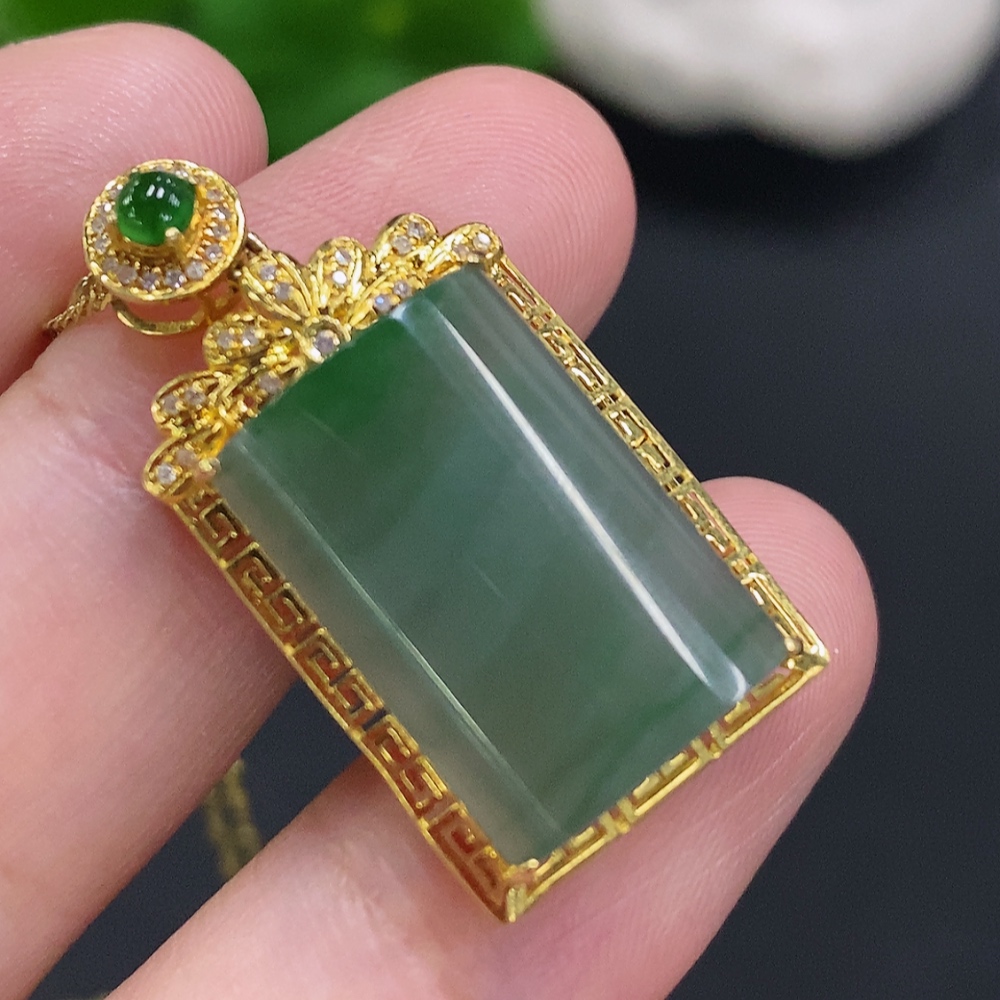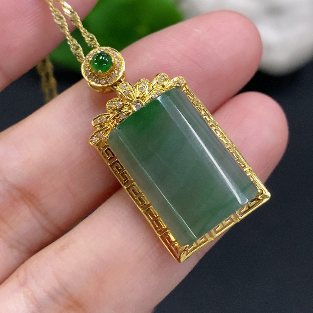 Jadeite Plain Pendant Necklace with 18K Gold Setting Approx. 4g Total Weight (Inlaid with Diamonds) (Non-Gold Chain Included)