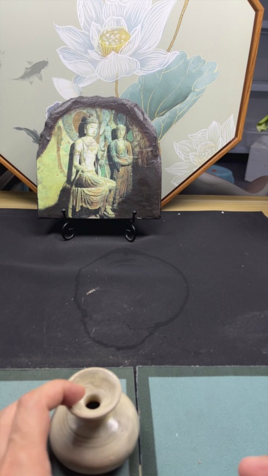 Porcelain, intact, celadon dish-mouth vase (subject to the actual item)