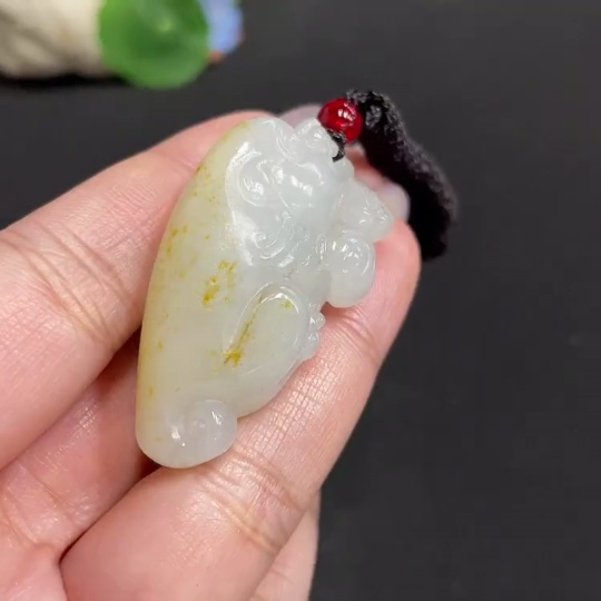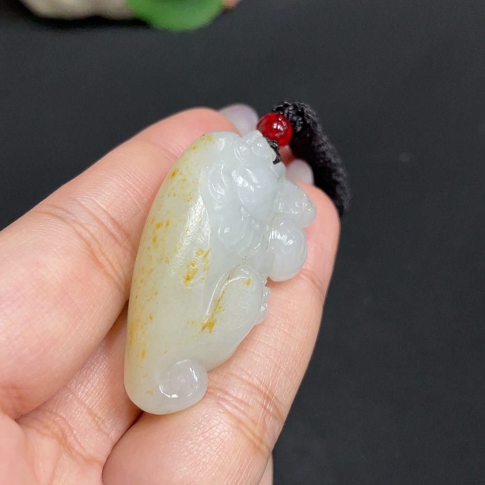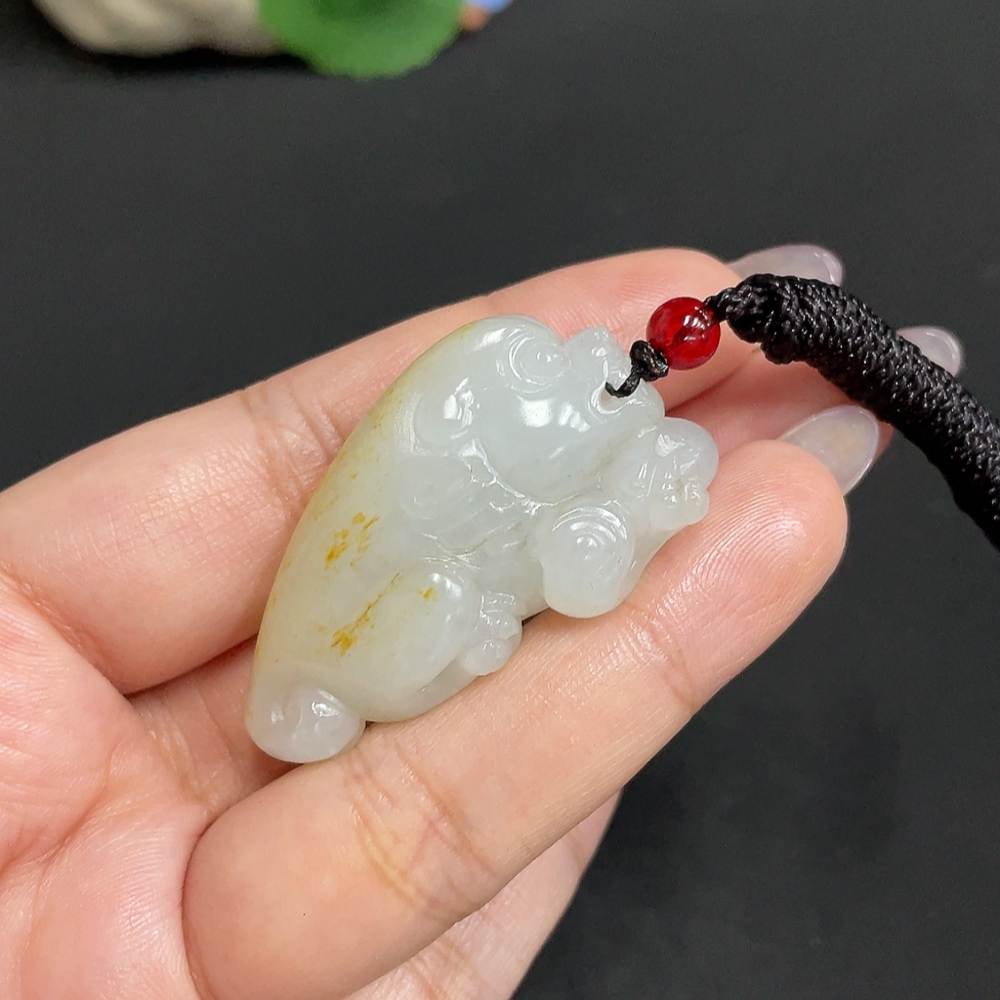 Hetian Jade Pendant, Auspicious Beast, Undetermined Skin Color Formation, Total Weight (including rope): 30.5g
