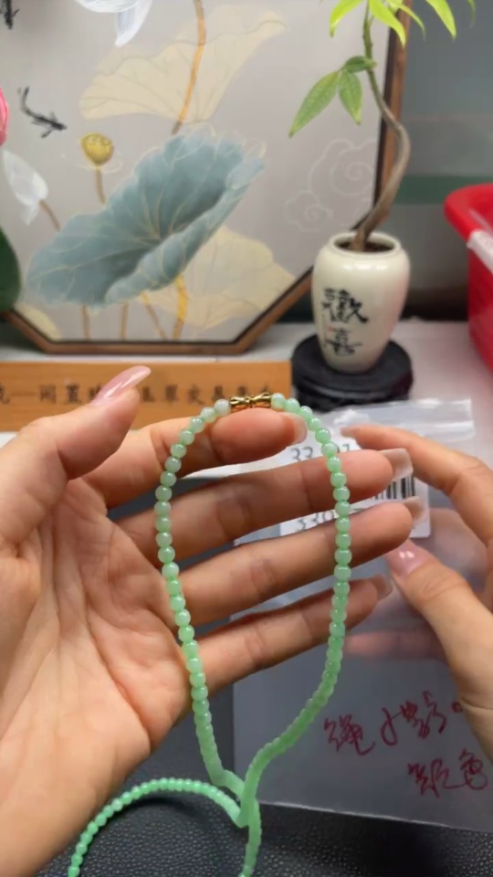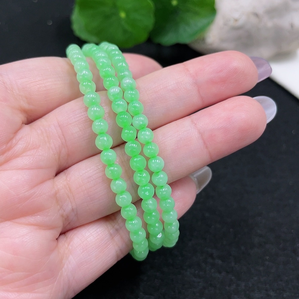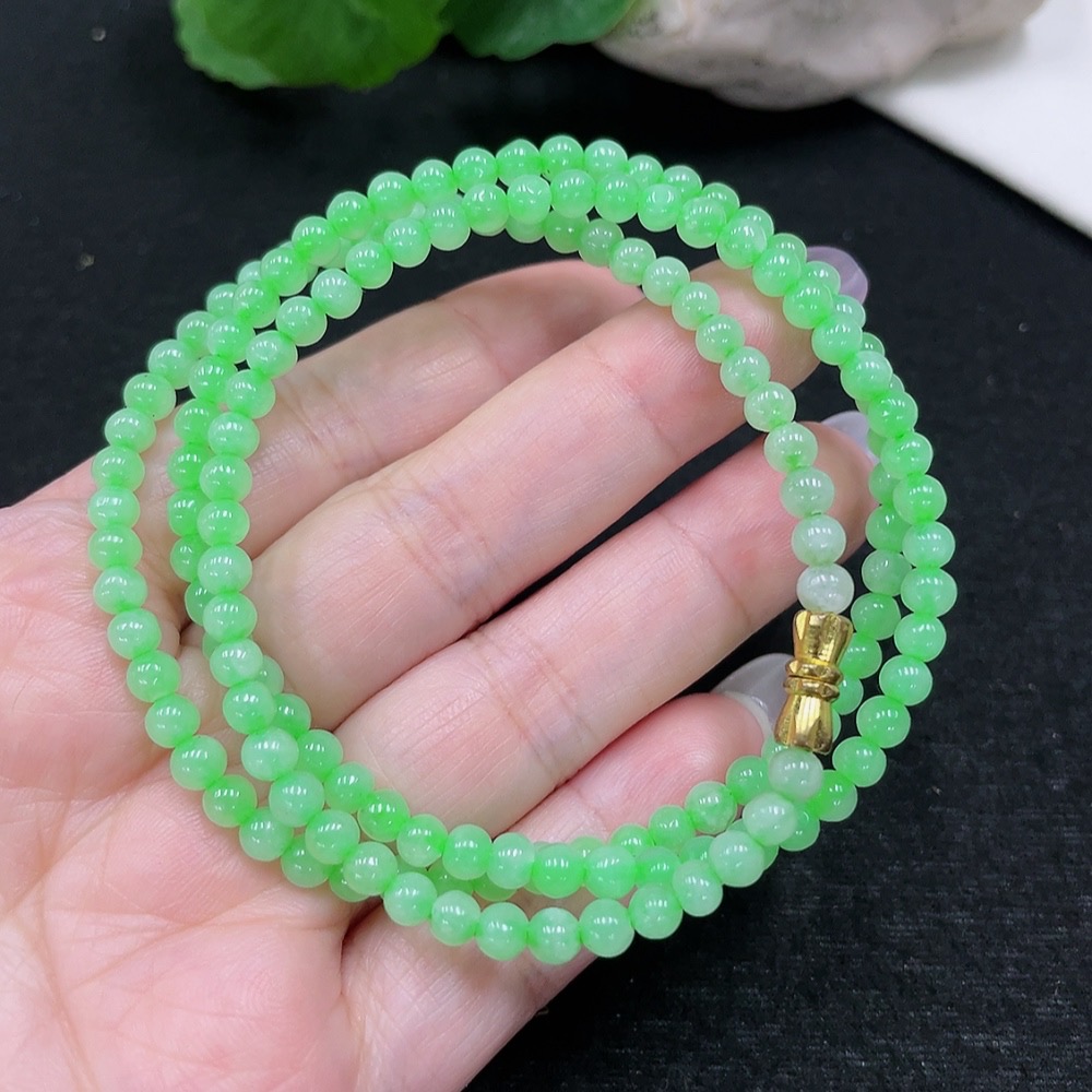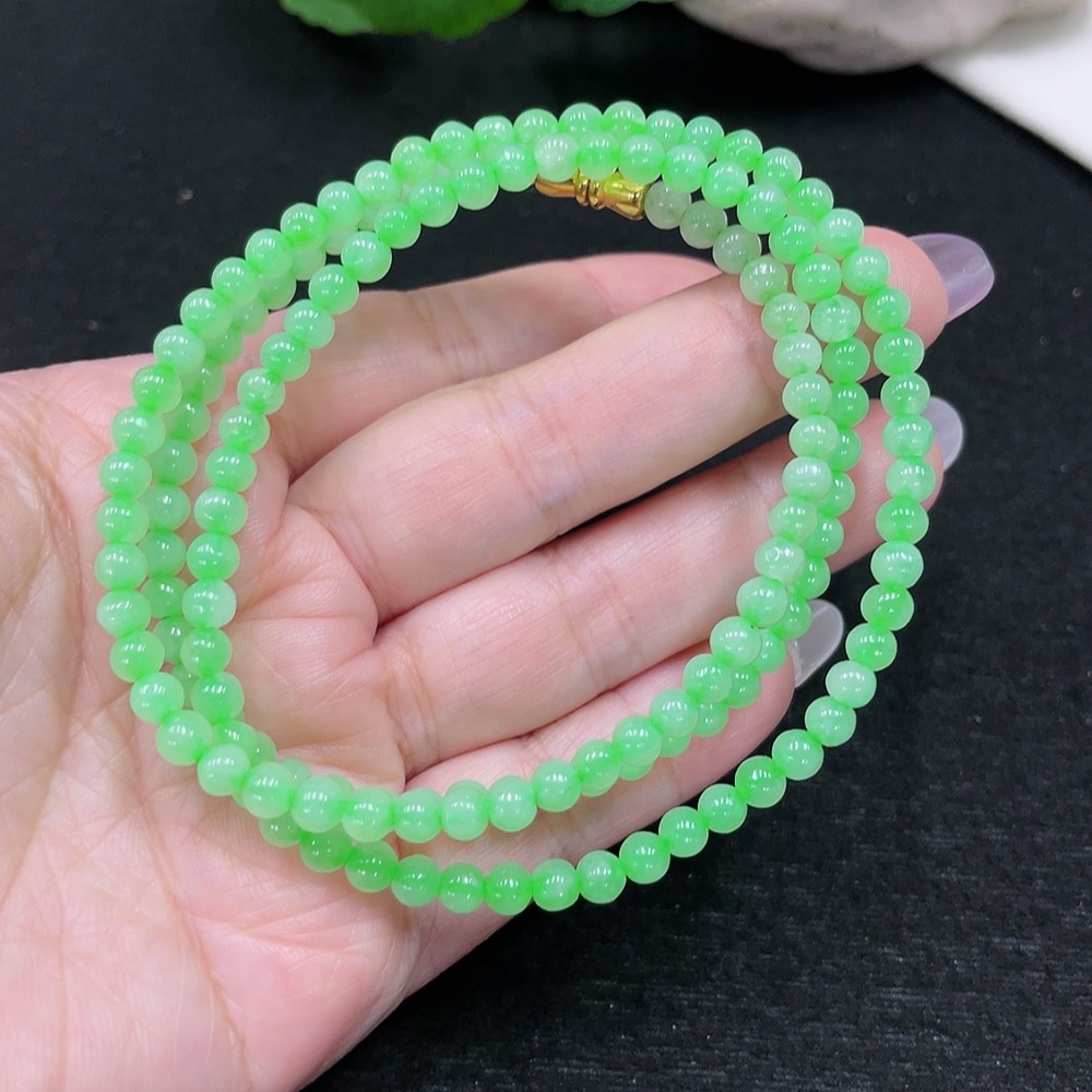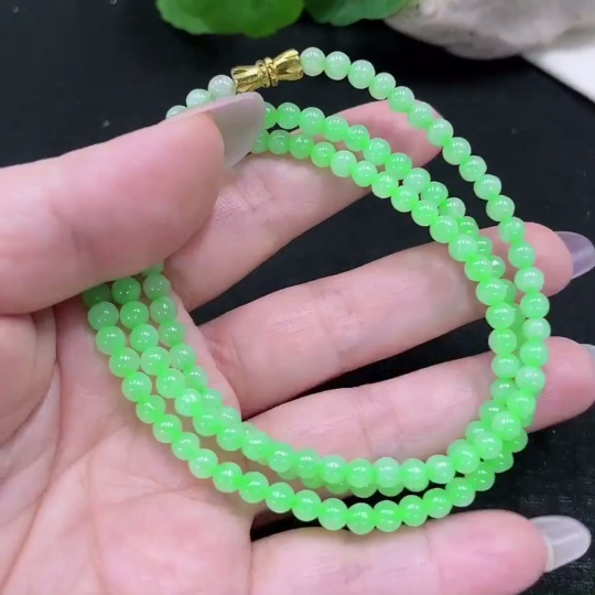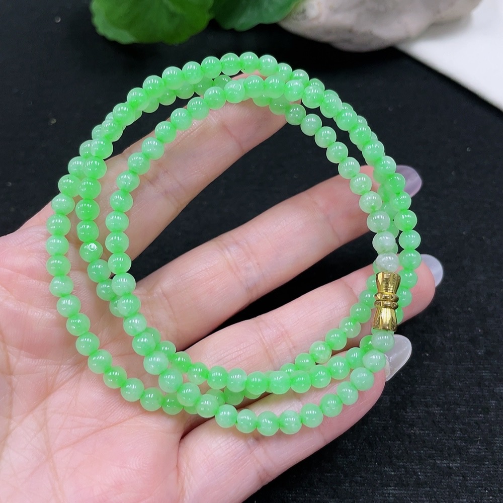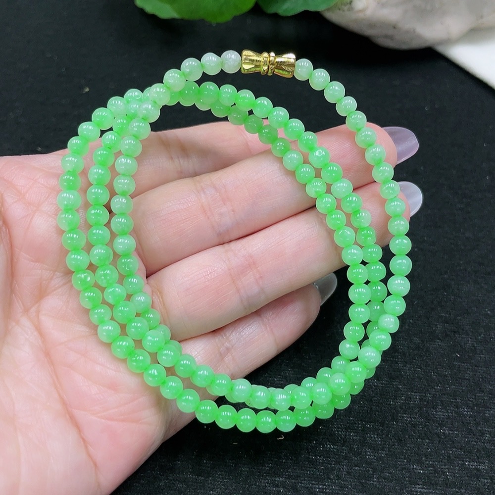 Jadeite Bead Necklace Approx. 4.4mm Total Weight Approx. 19.5g (Non-Gold Inlaid) (Cord Affects Color)