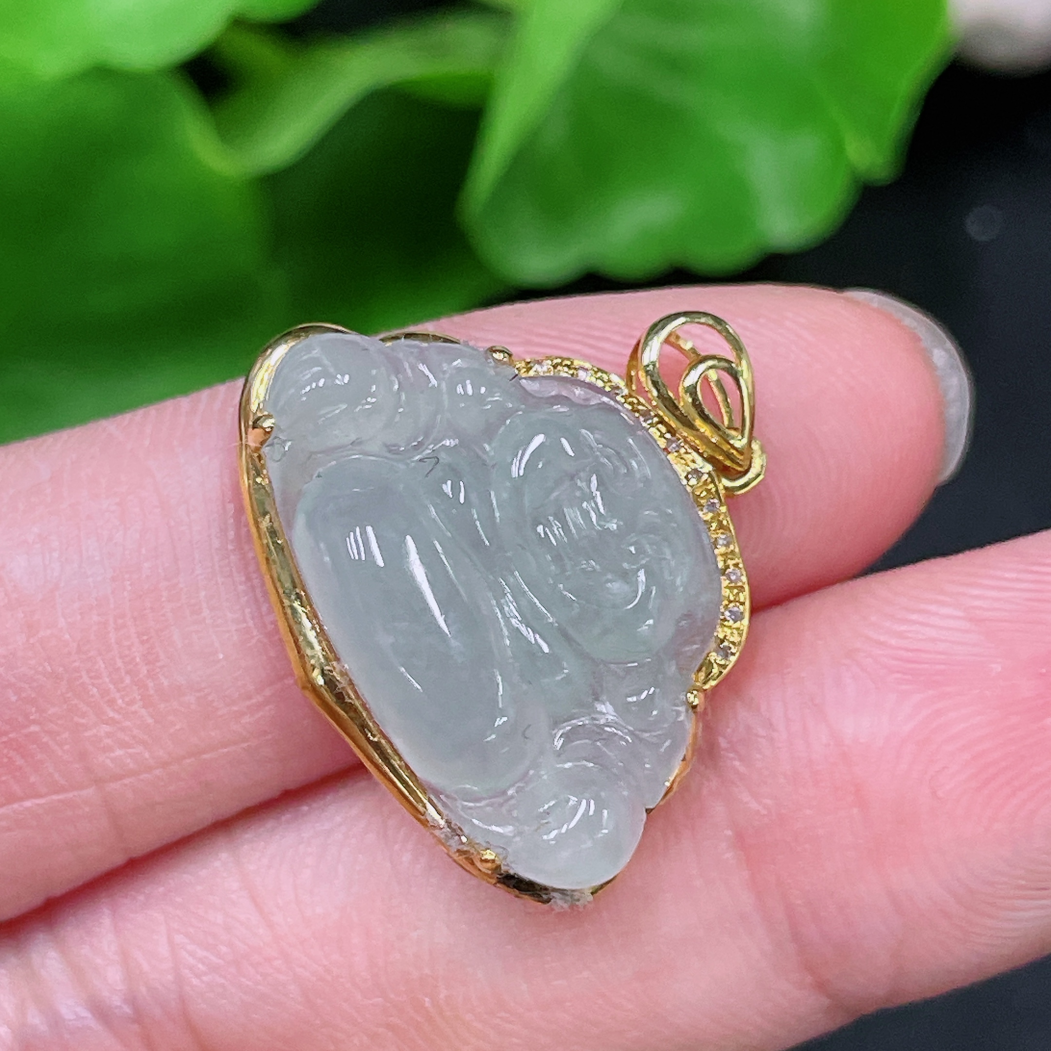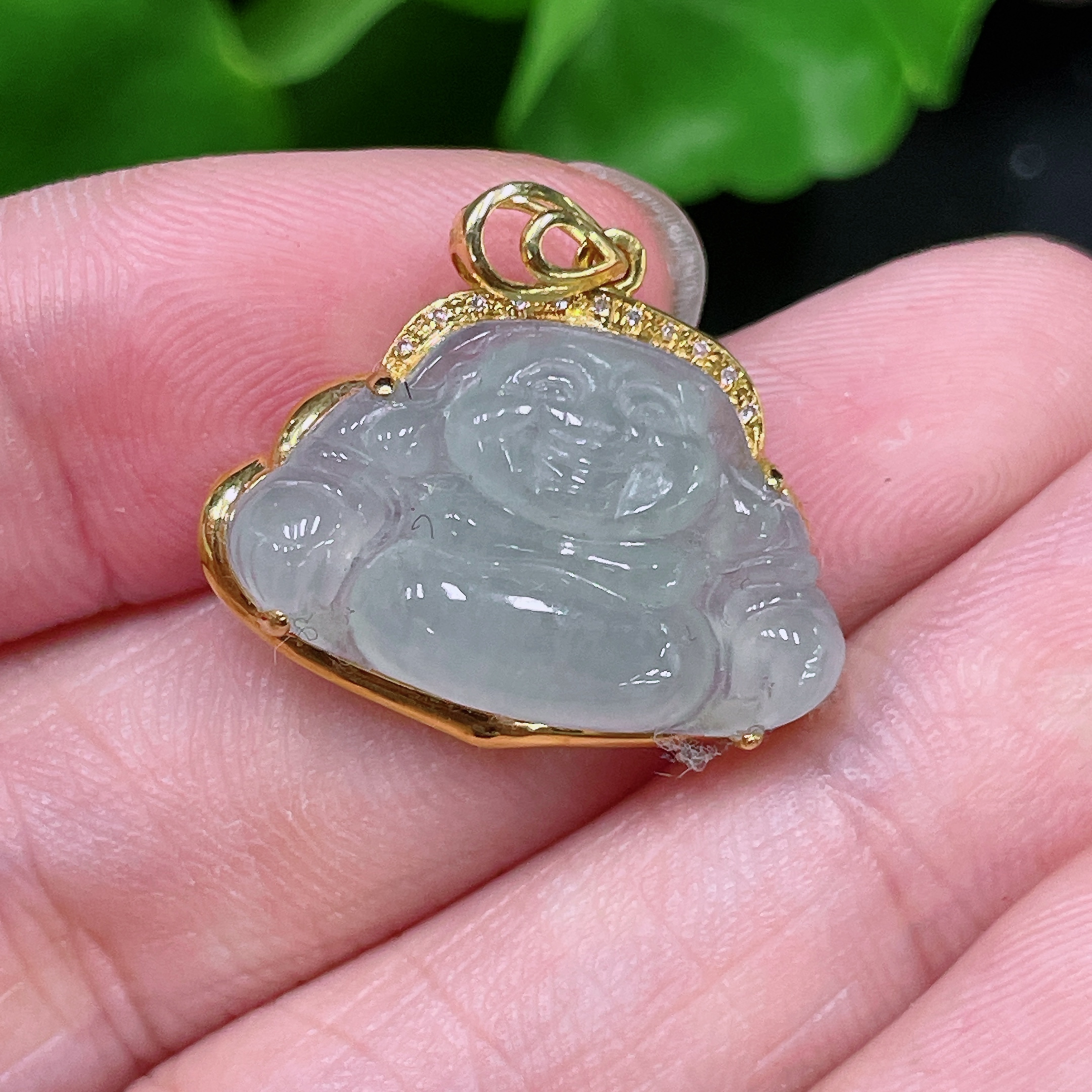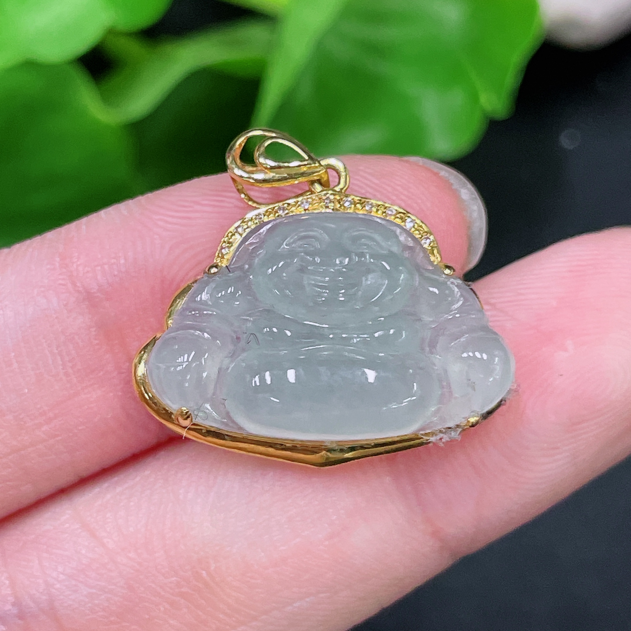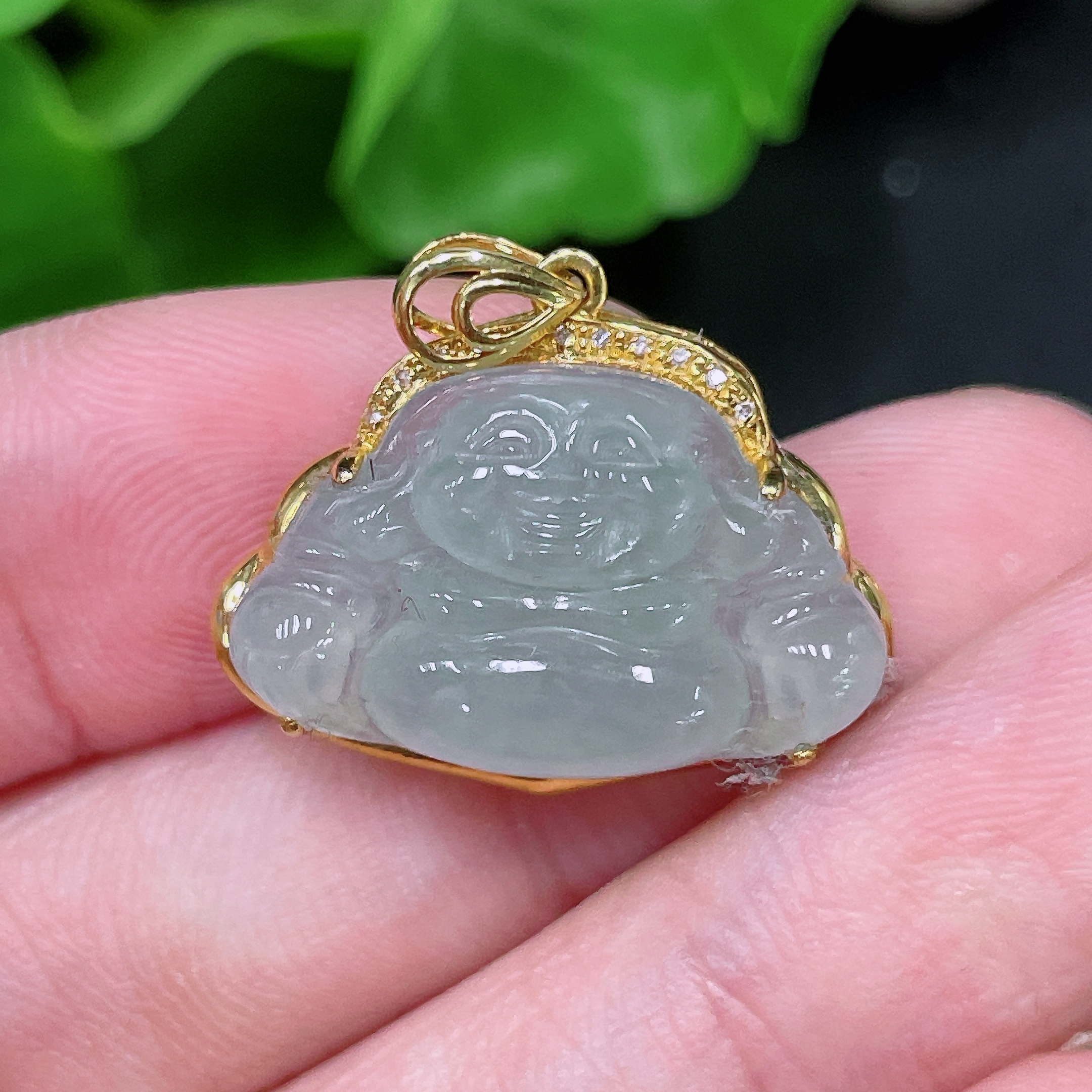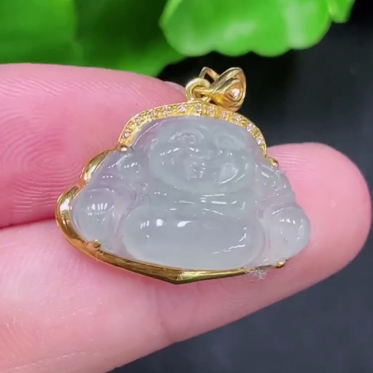 Jadeite Buddha Pendant 18K Gold Total Weight Approx. 2.6g (With Diamond Accents)