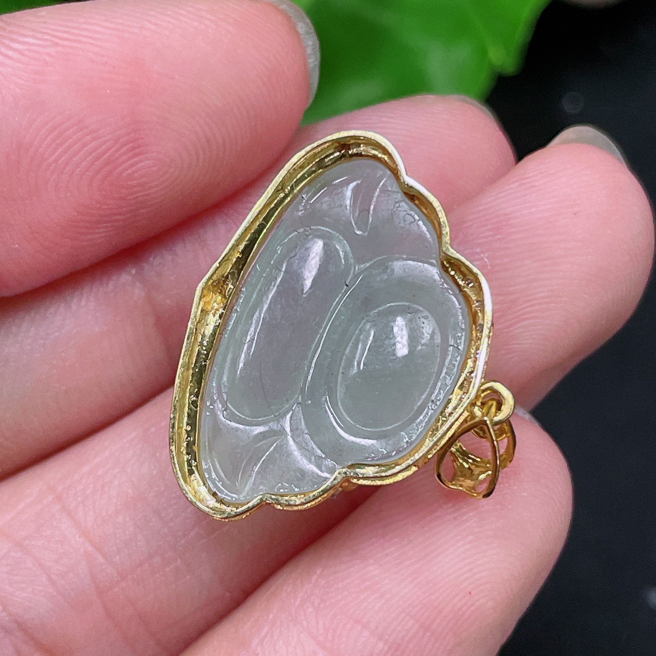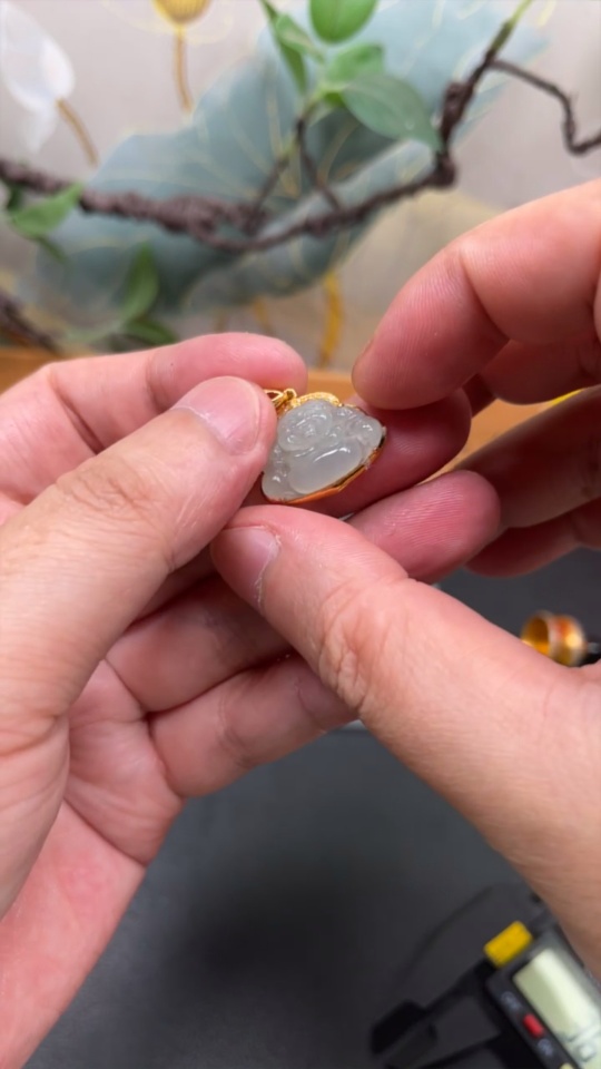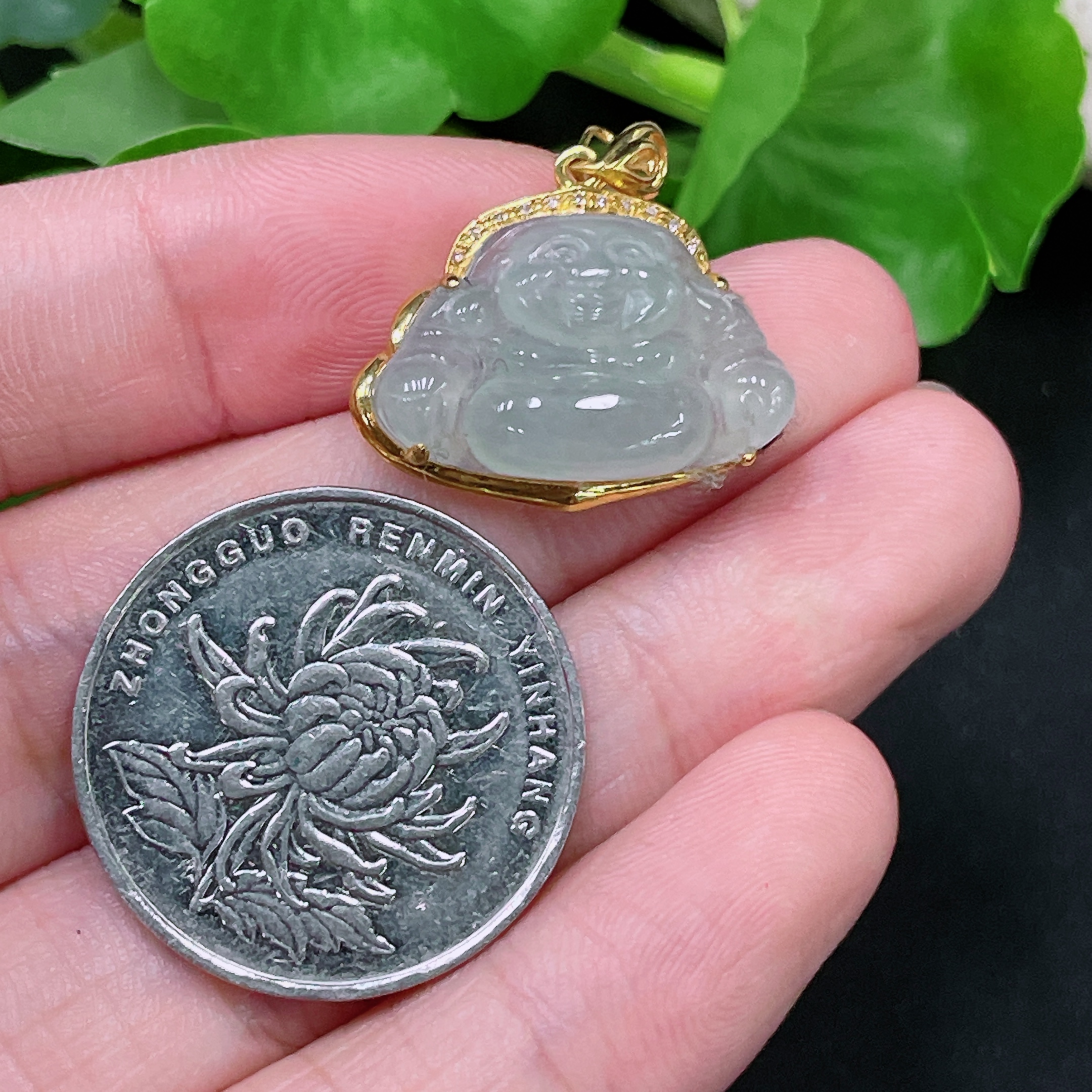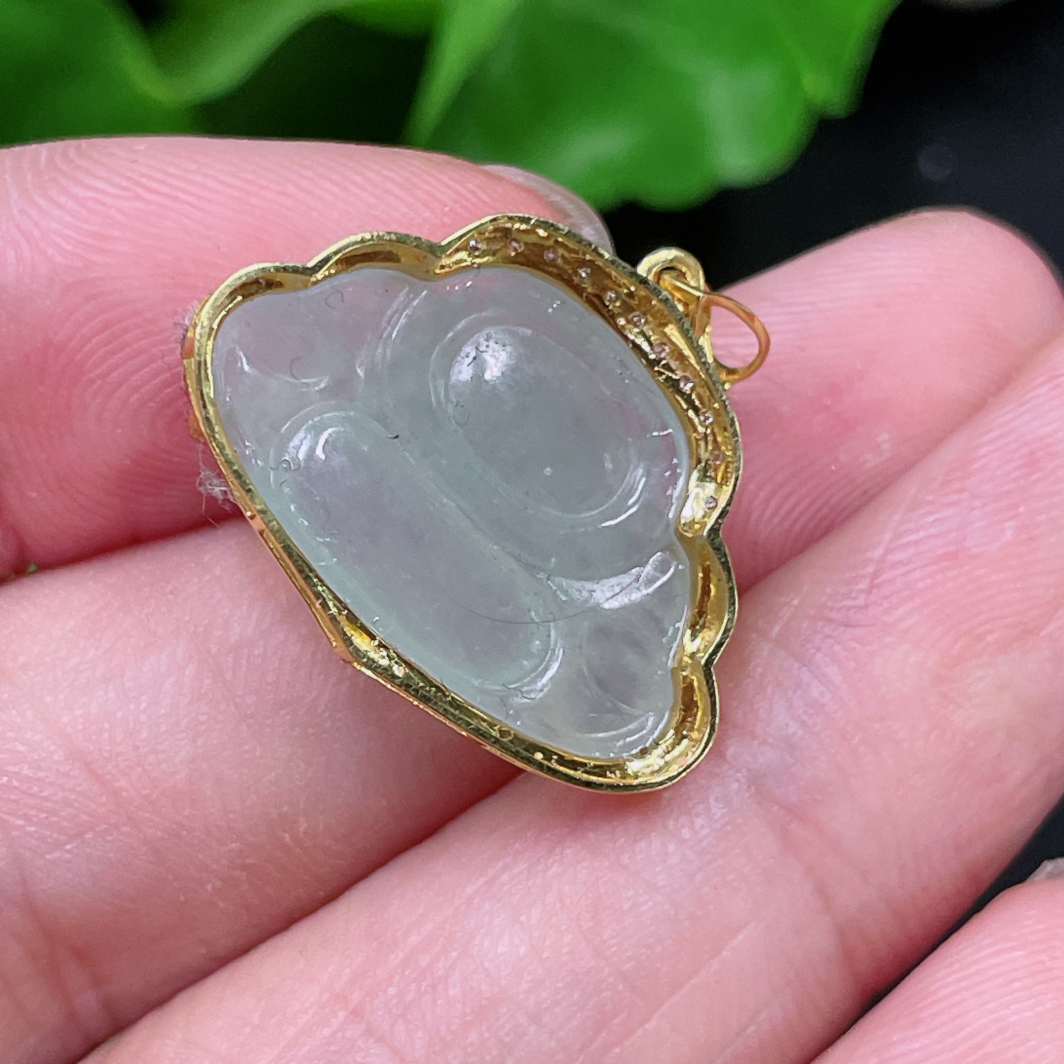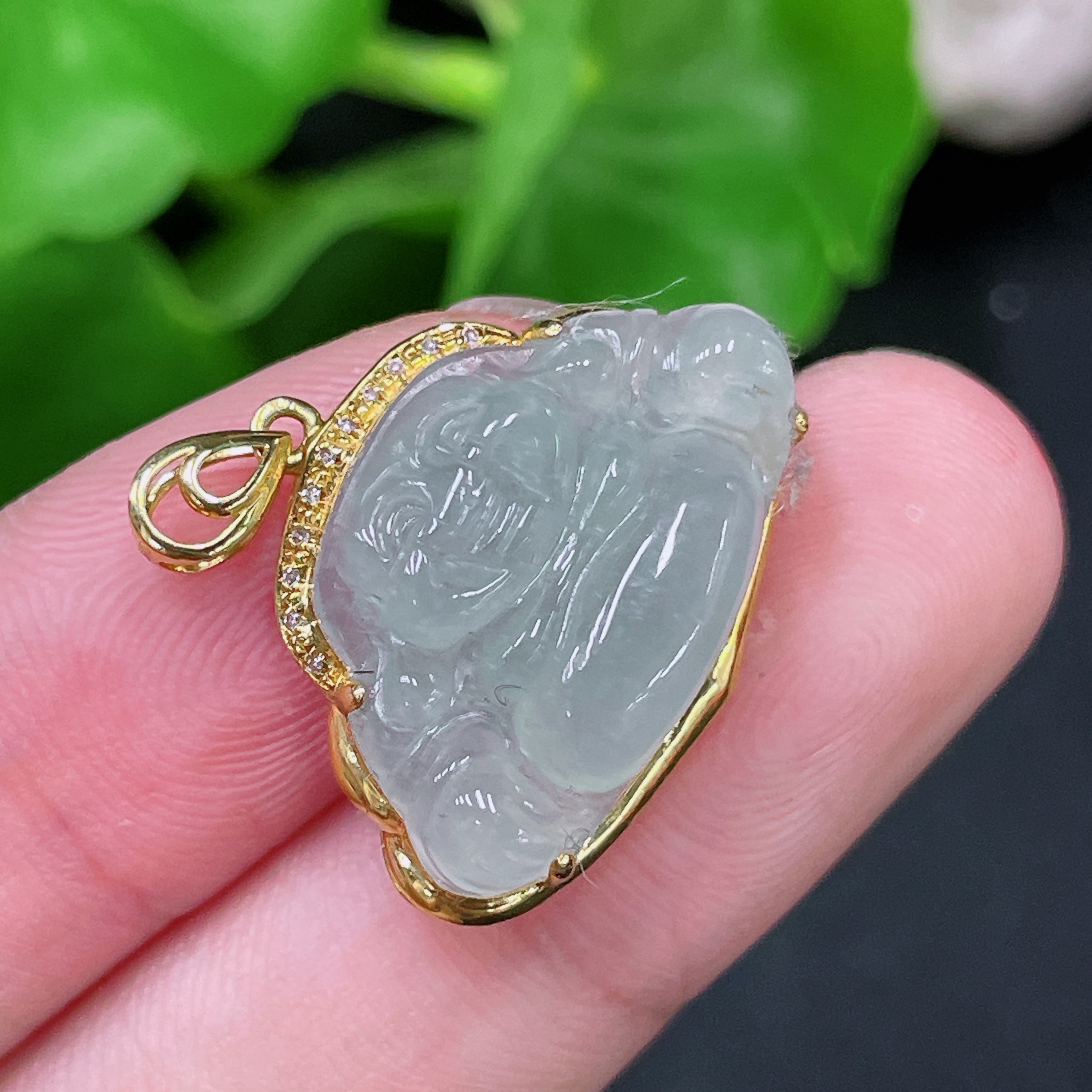 Jadeite Buddha Pendant 18K Gold Total Weight Approx. 2.6g (With Diamond Accents)