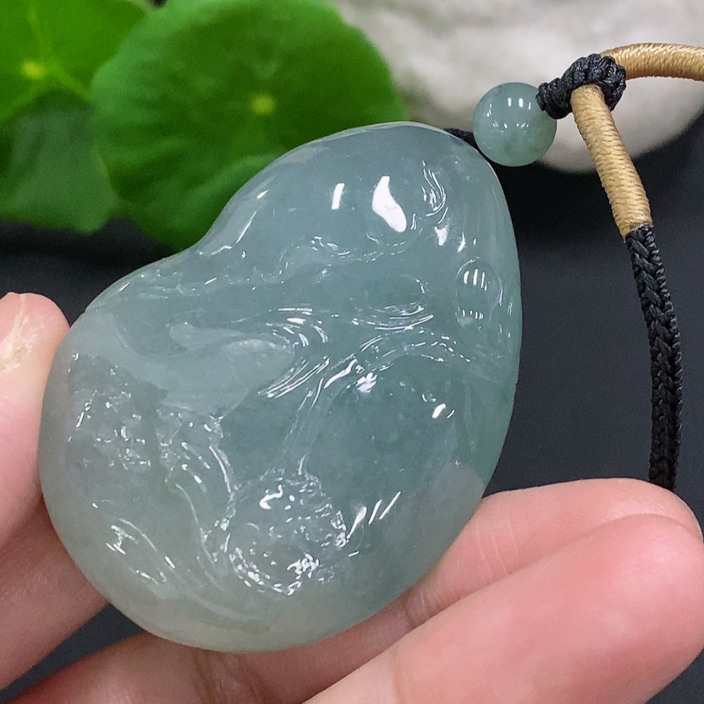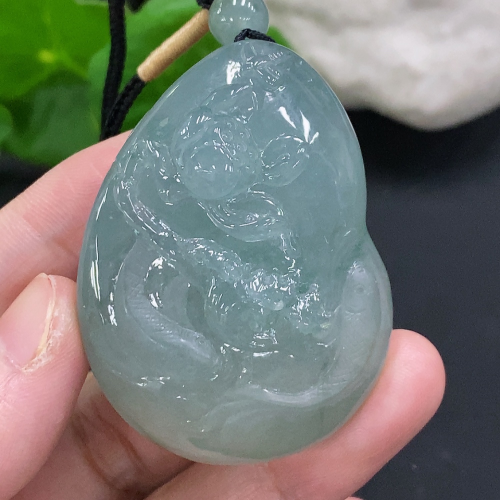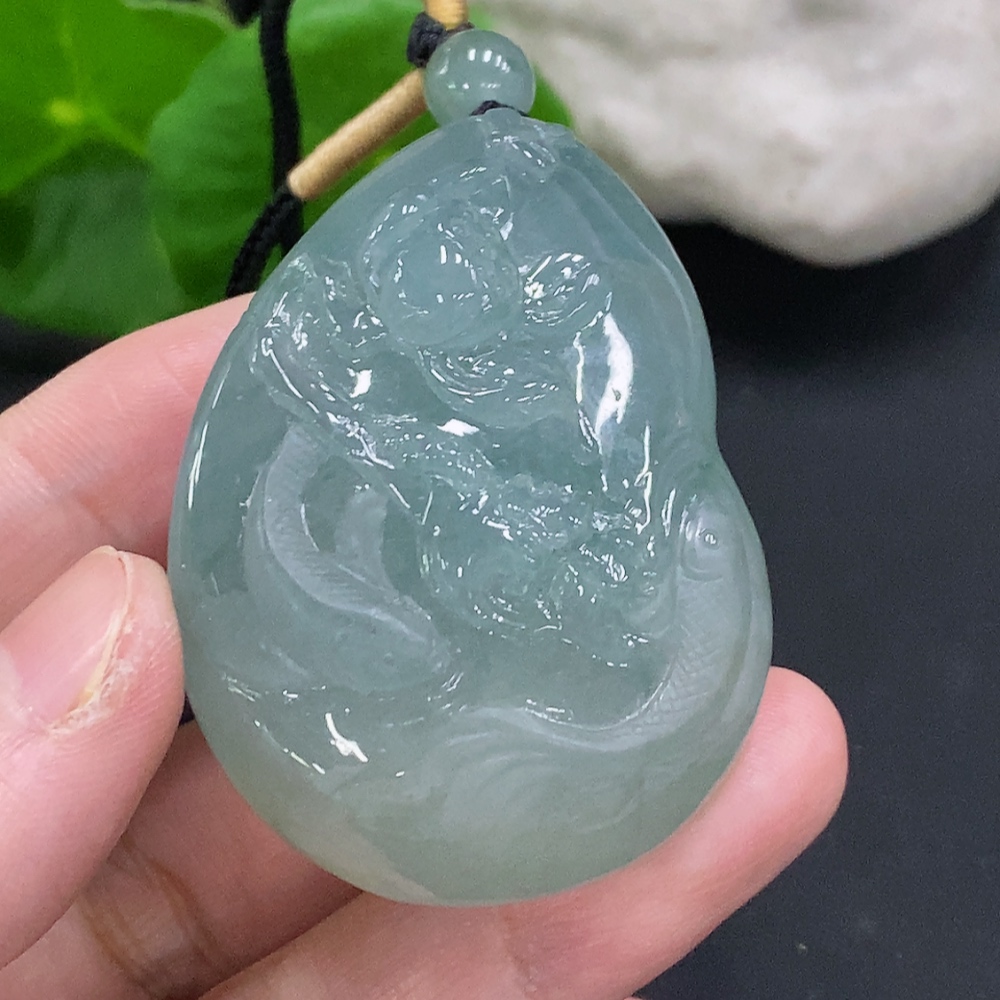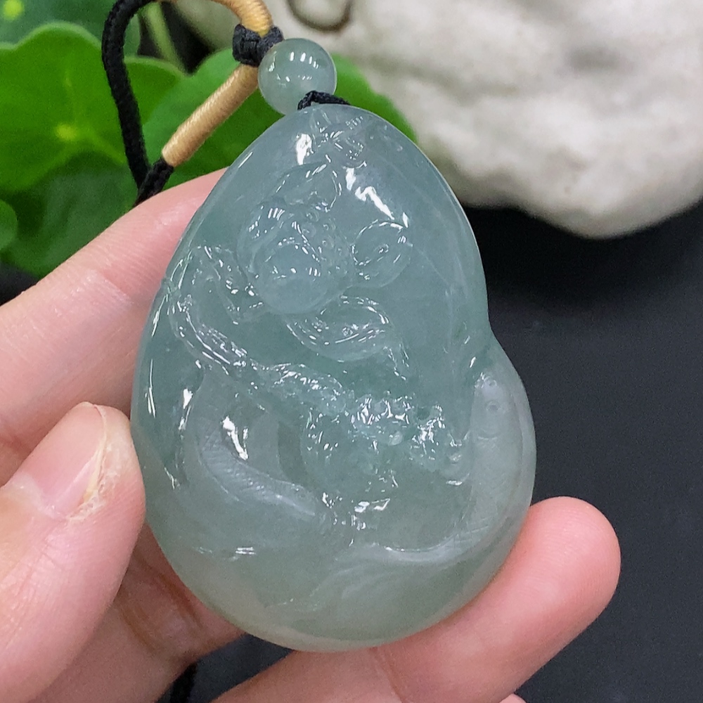 Jadeite Auspicious Fish Pendant, total weight with string approx. 59.2g