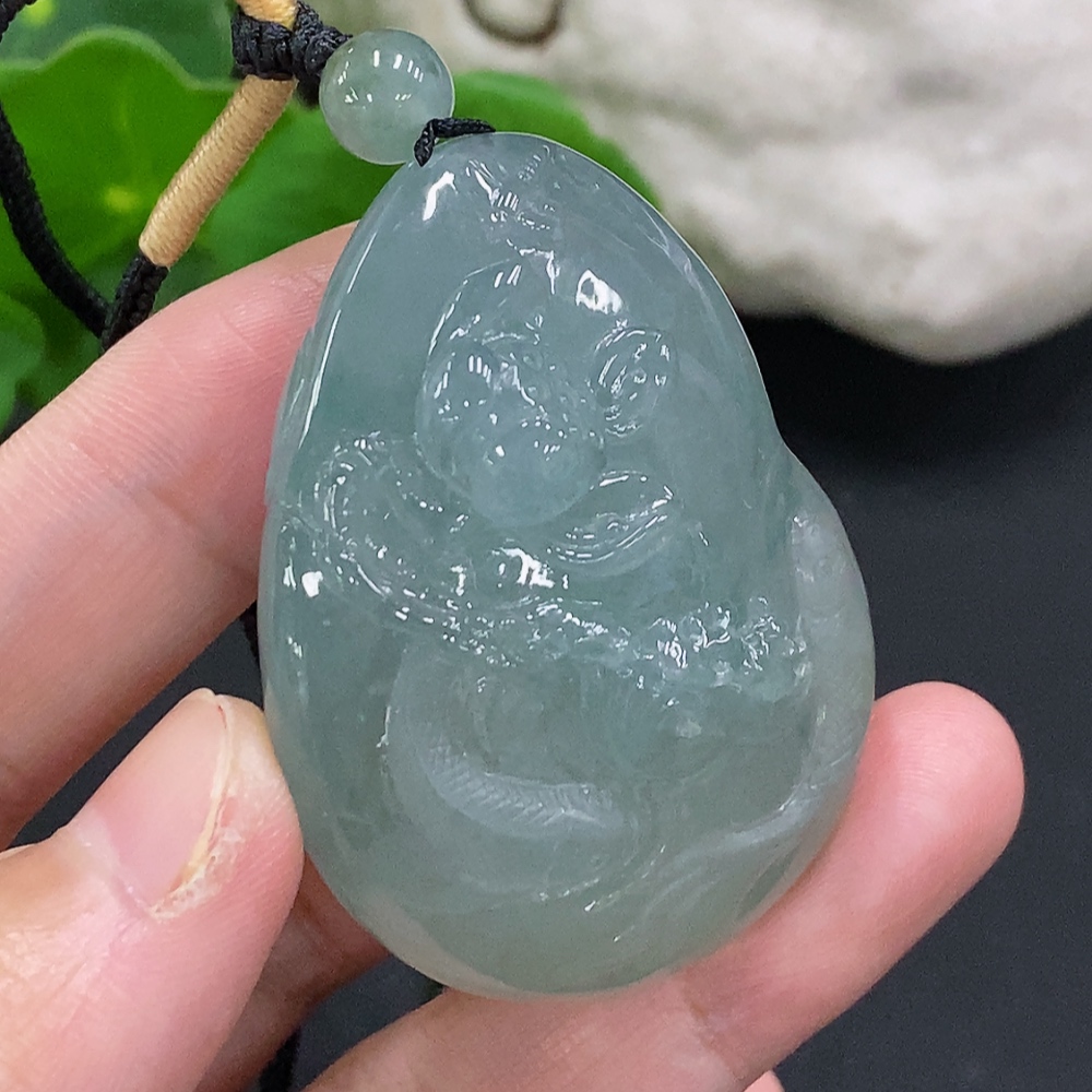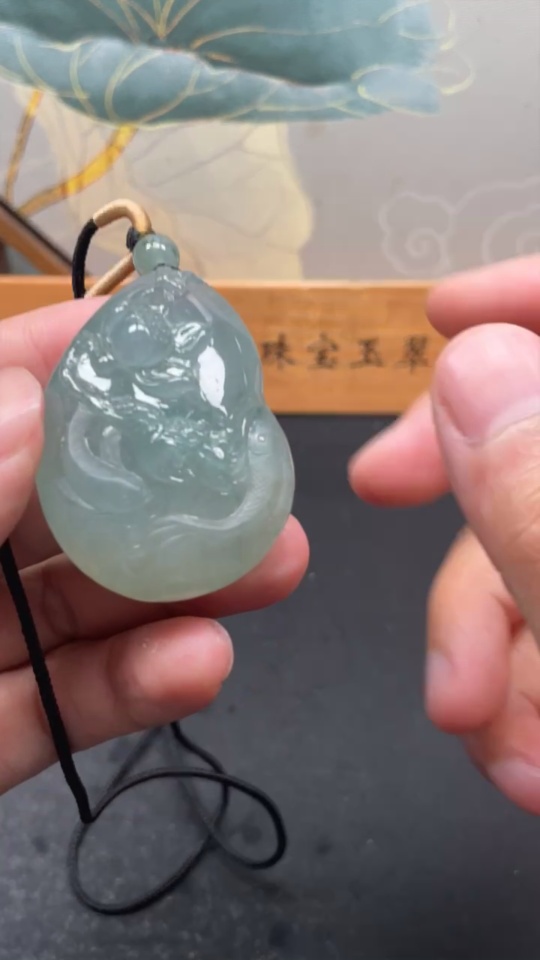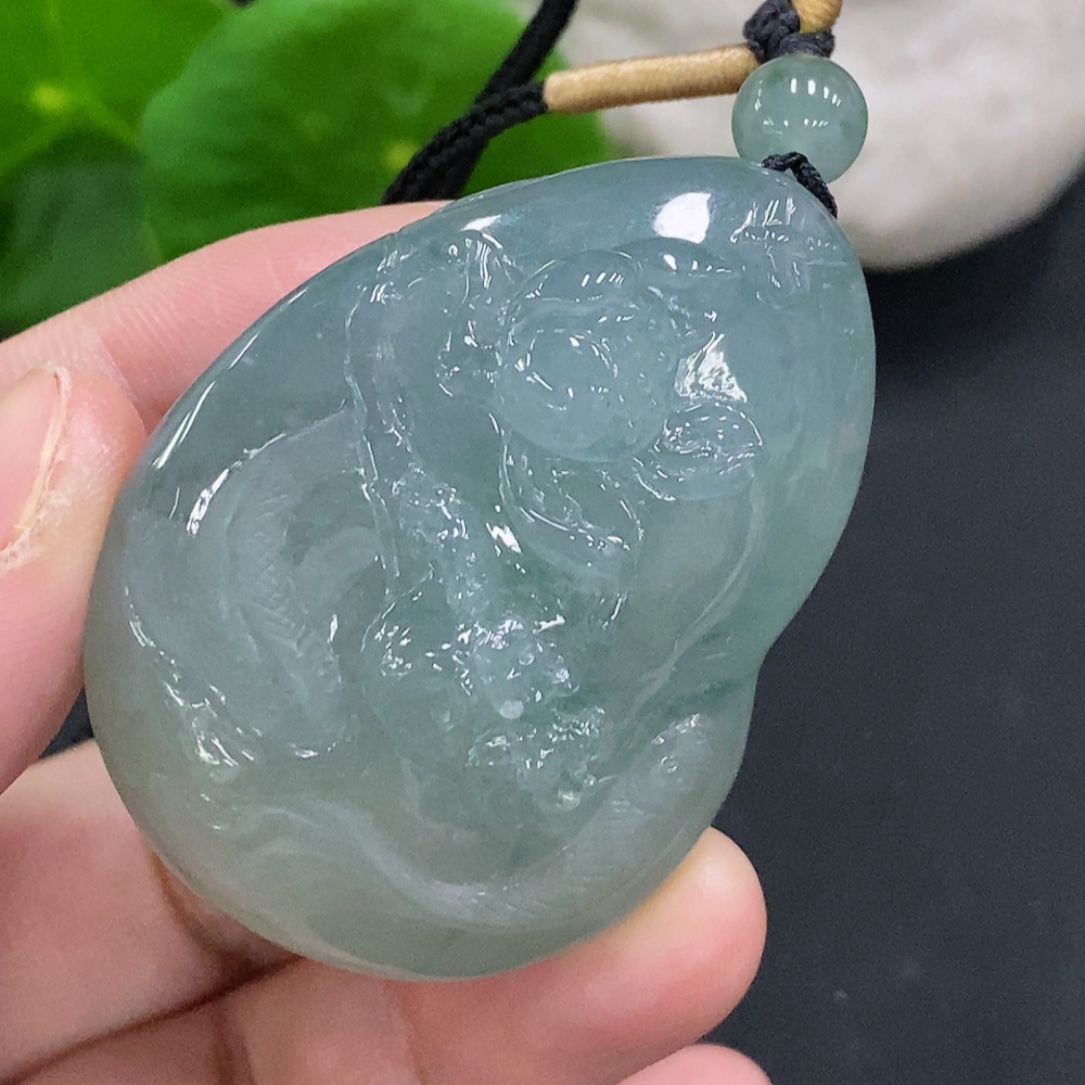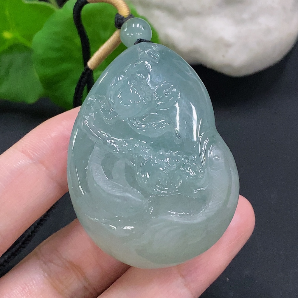 Jadeite Auspicious Fish Pendant, total weight with string approx. 59.2g