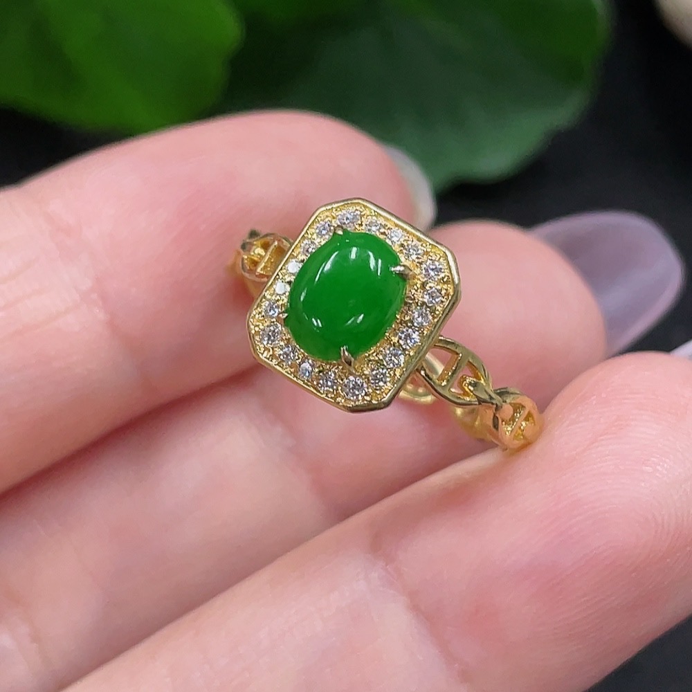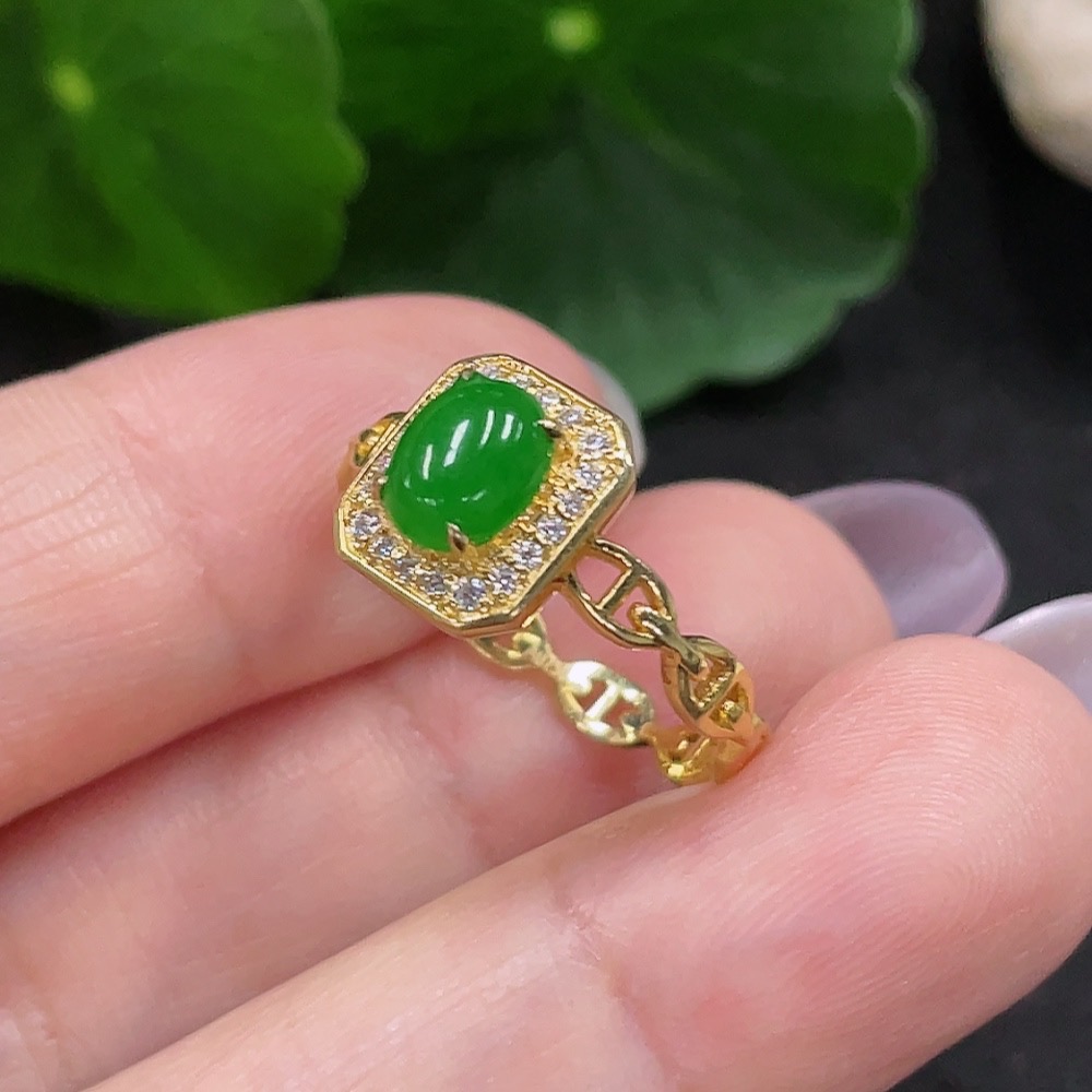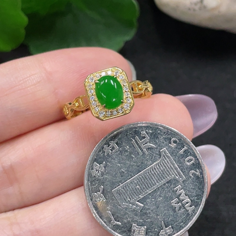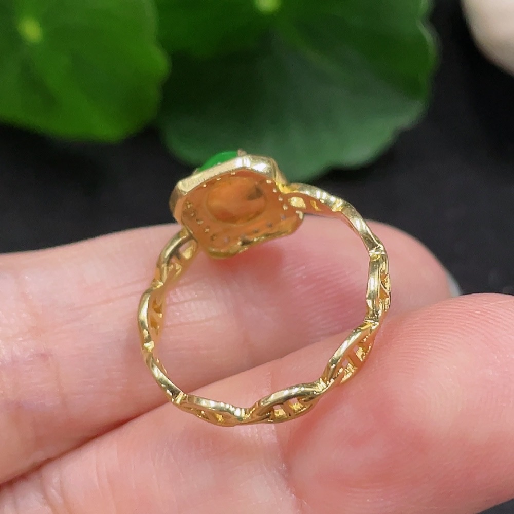 Jadeite Inlaid Ring Size 15 18K Gold Total Weight Approx. 2.2g (Non-Diamond)