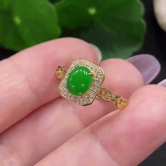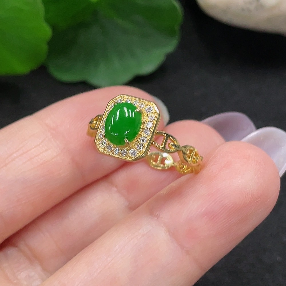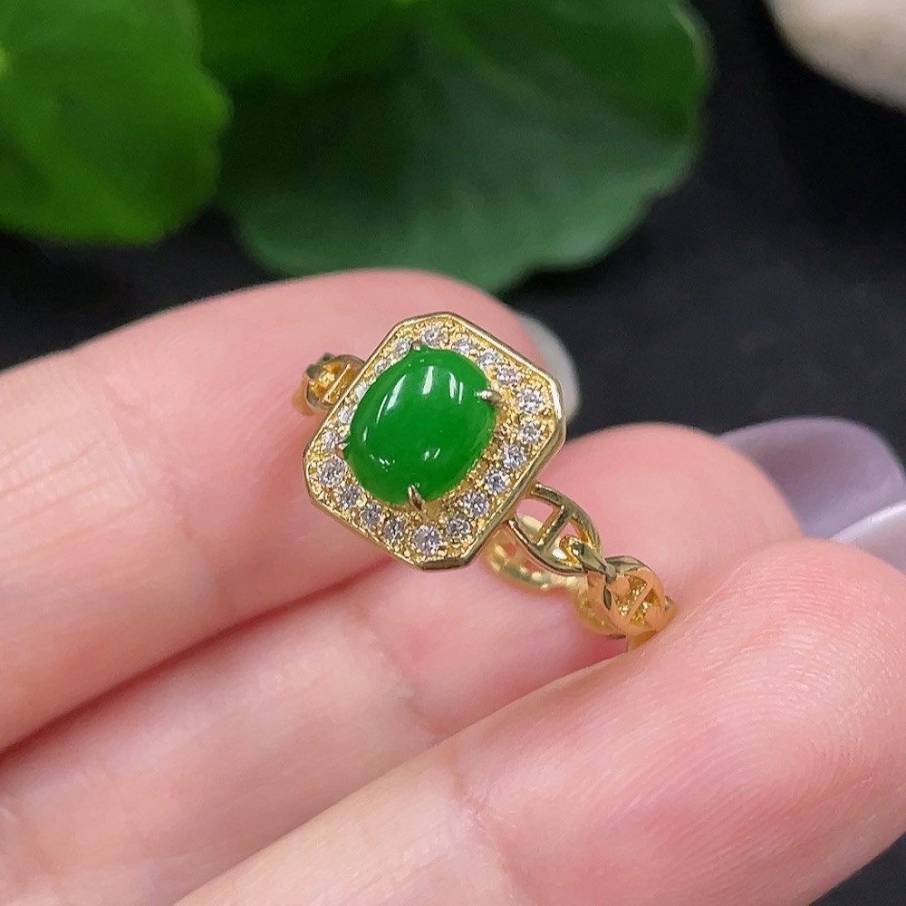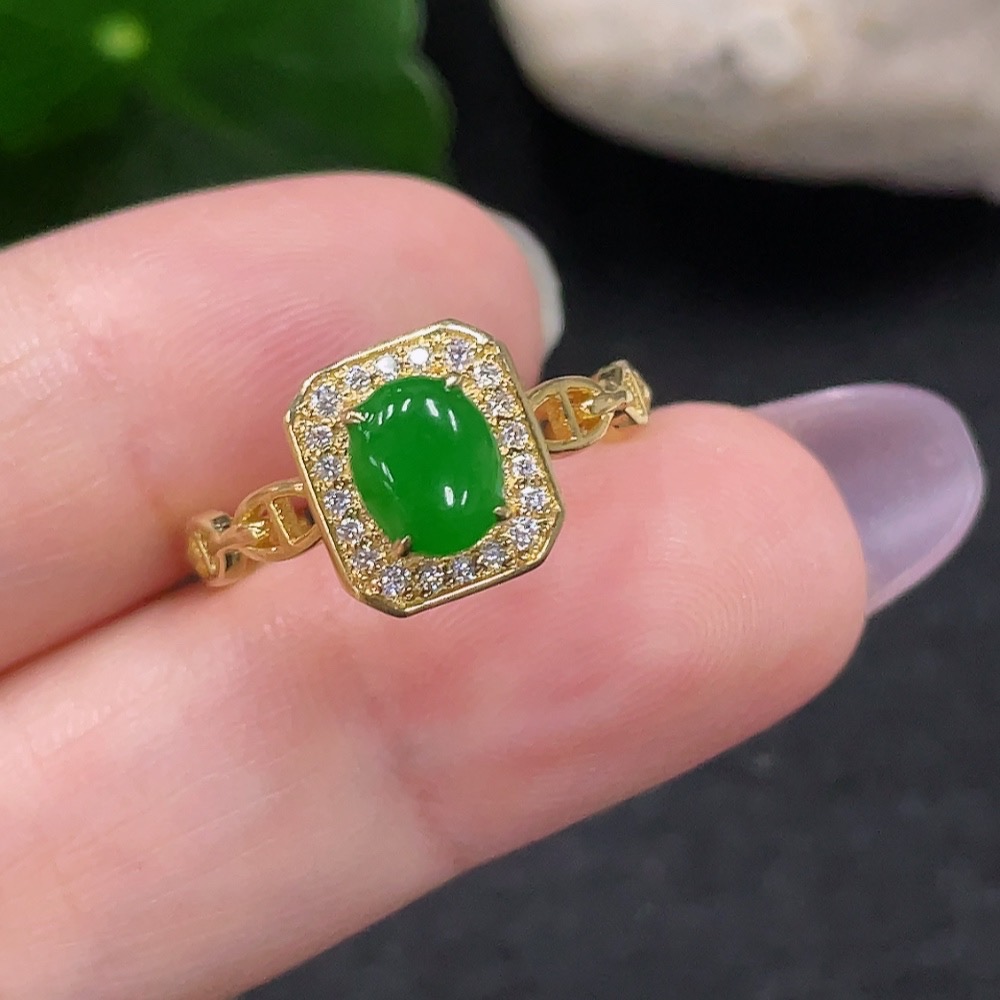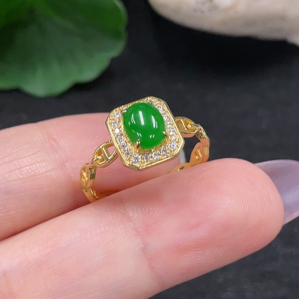 Jadeite Inlaid Ring Size 15 18K Gold Total Weight Approx. 2.2g (Non-Diamond)