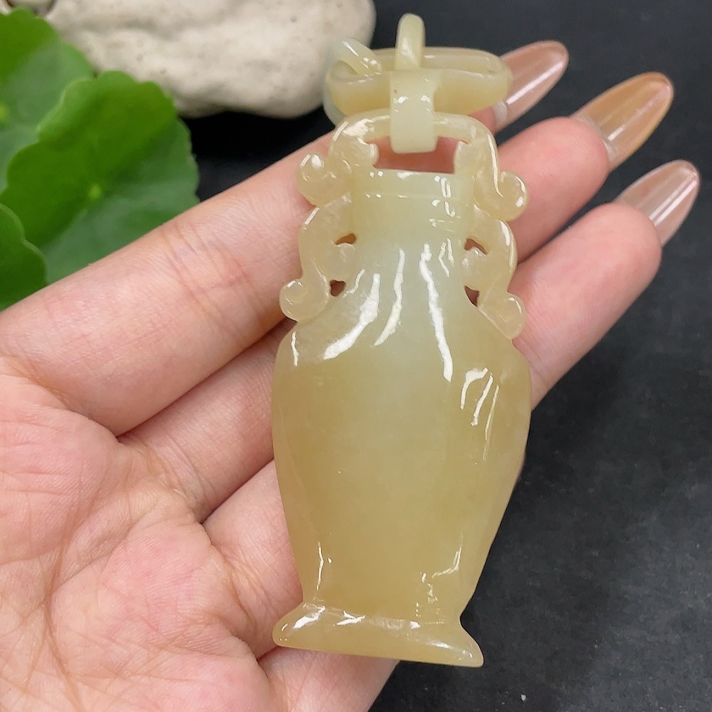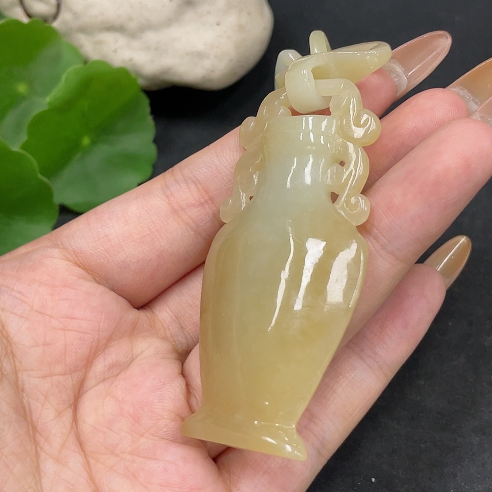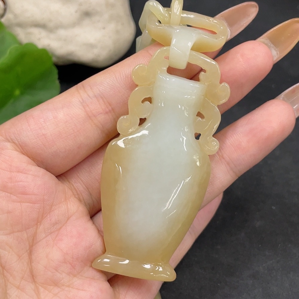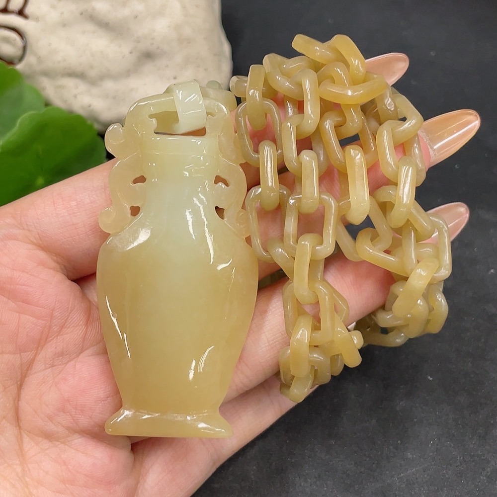 Hetian Jade Pendant Treasure Vase Visible Splicing Craft Total Weight Approx. (Incl. Chain) 73.9g