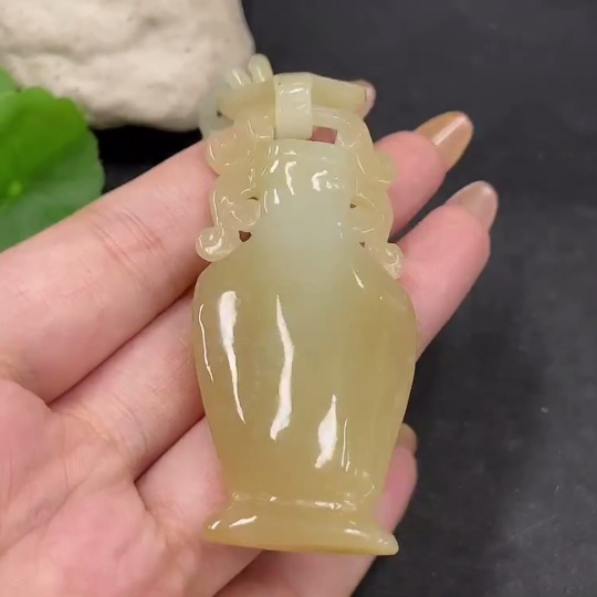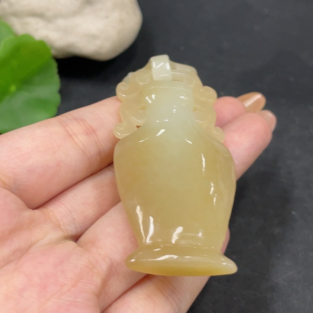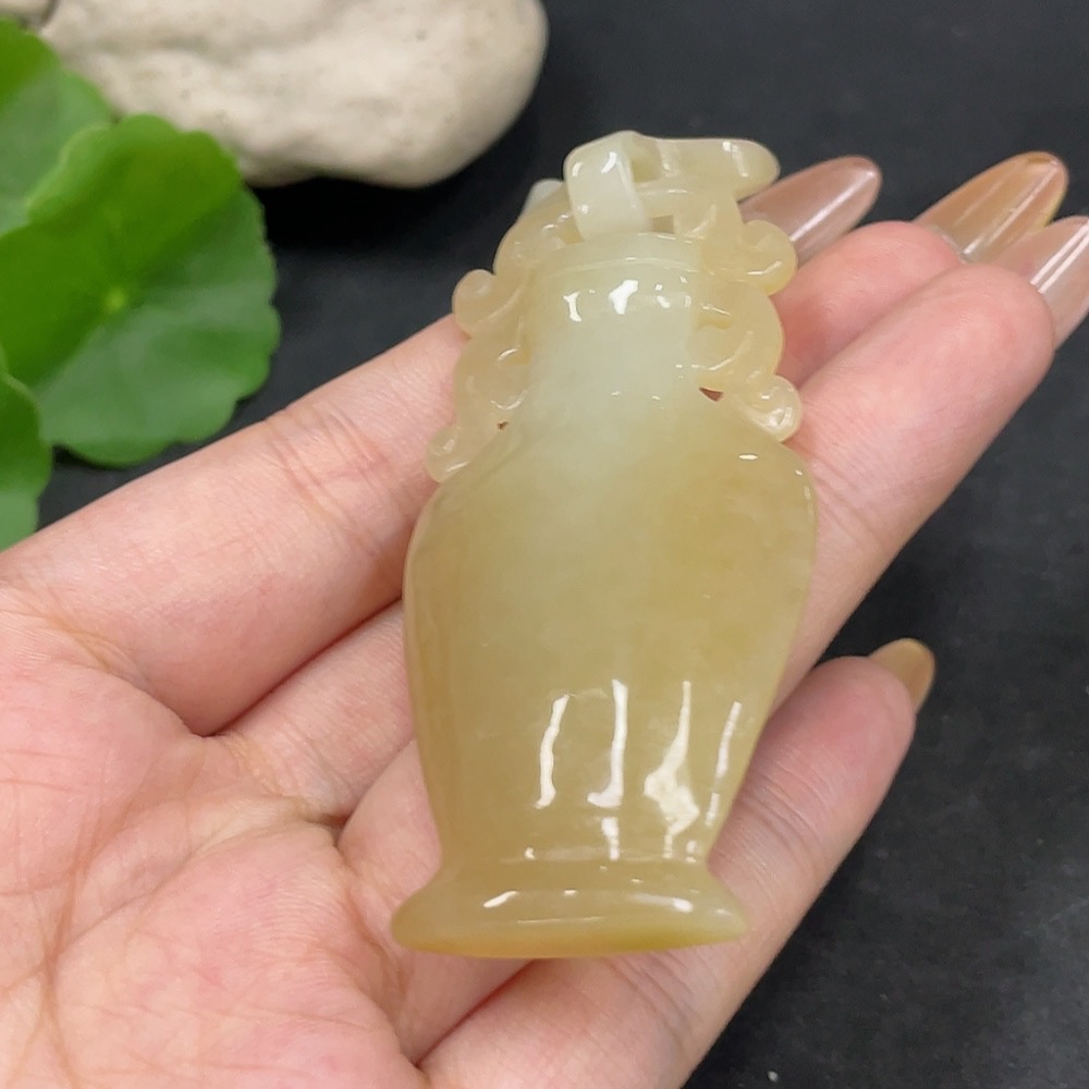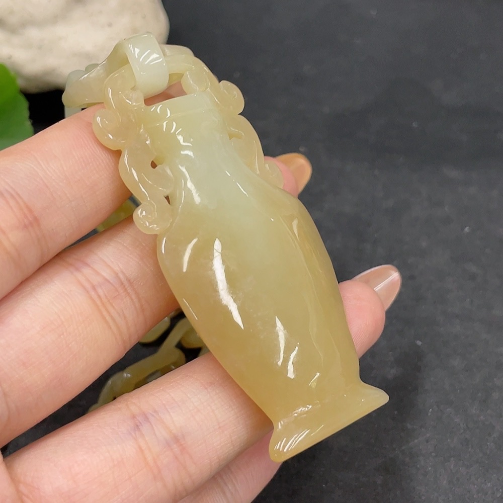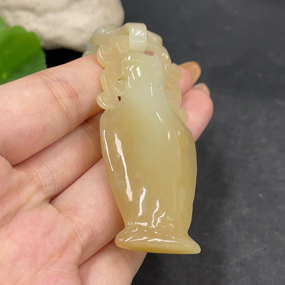 Hetian Jade Pendant Treasure Vase Visible Splicing Craft Total Weight Approx. (Incl. Chain) 73.9g