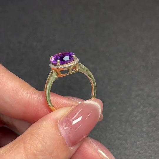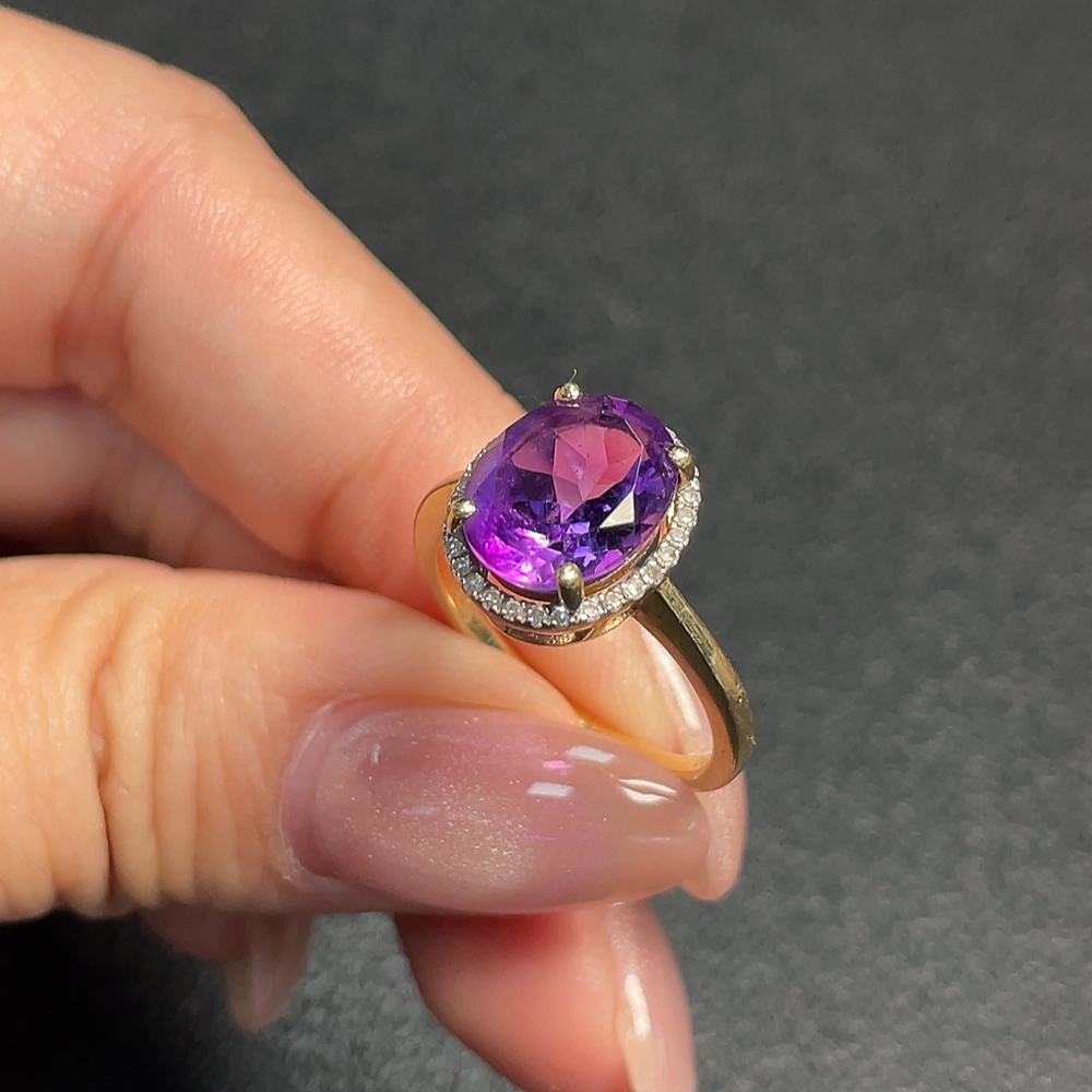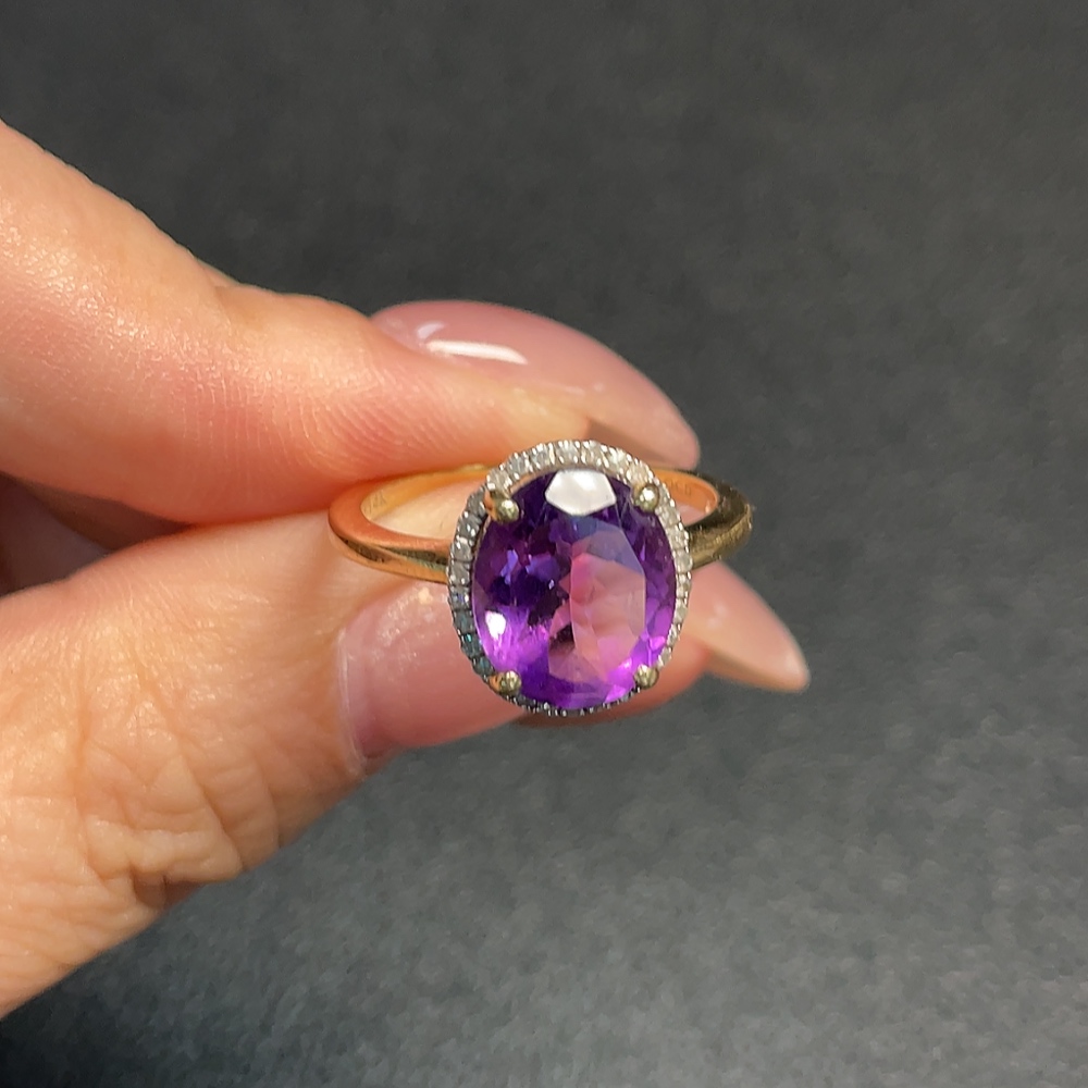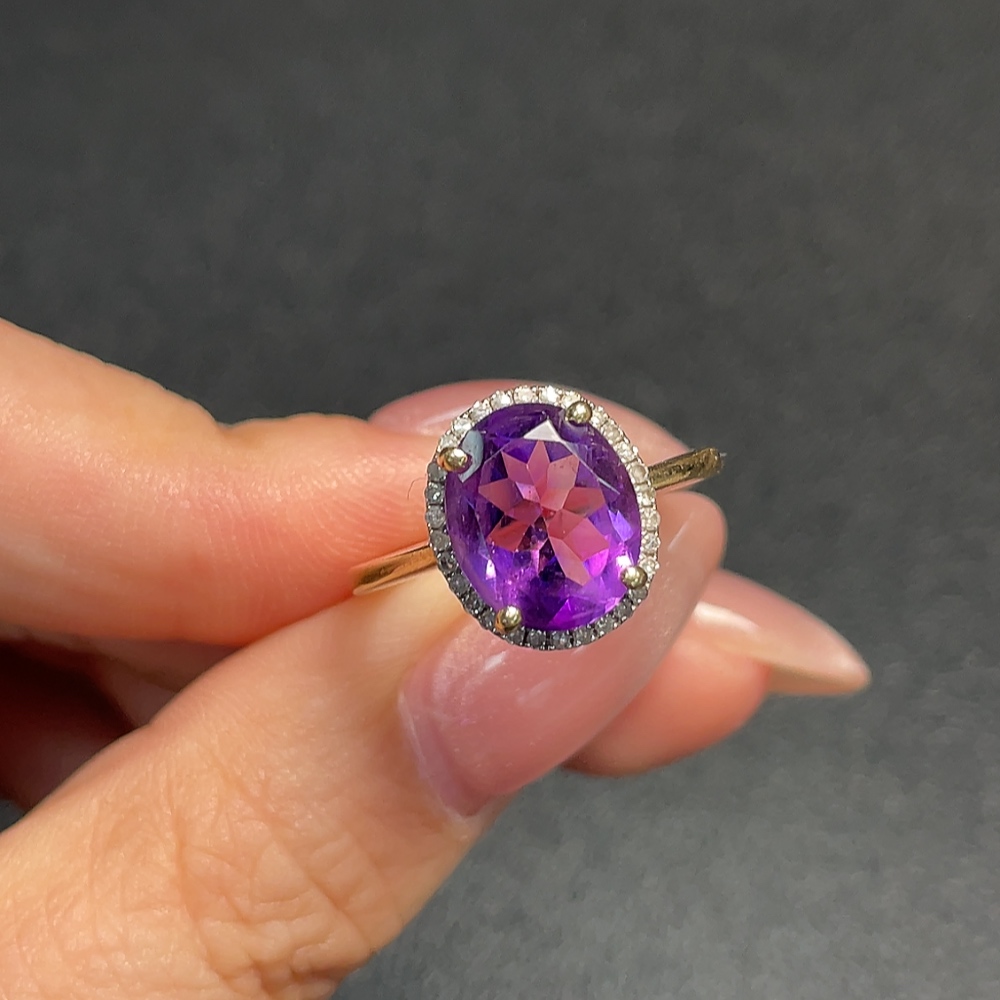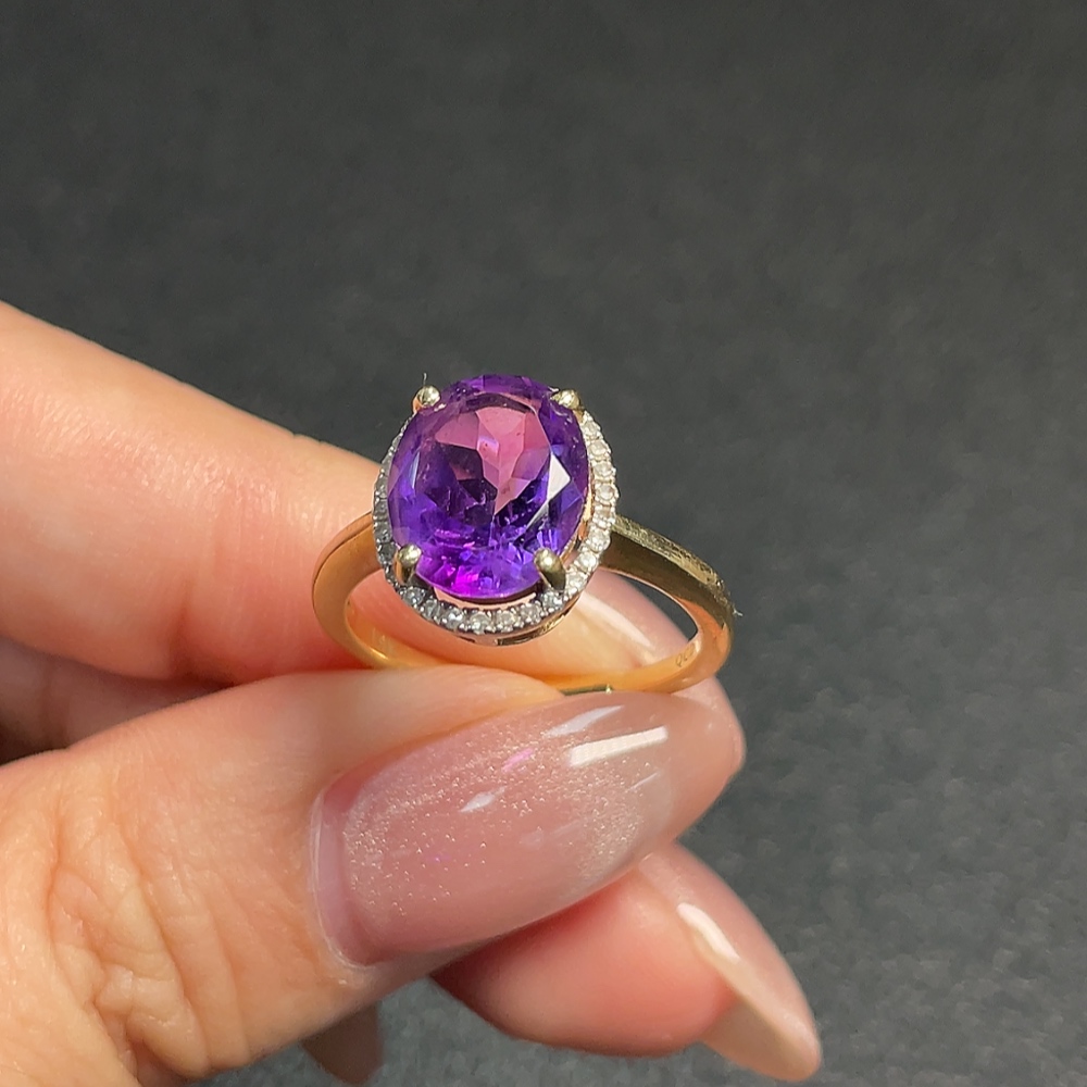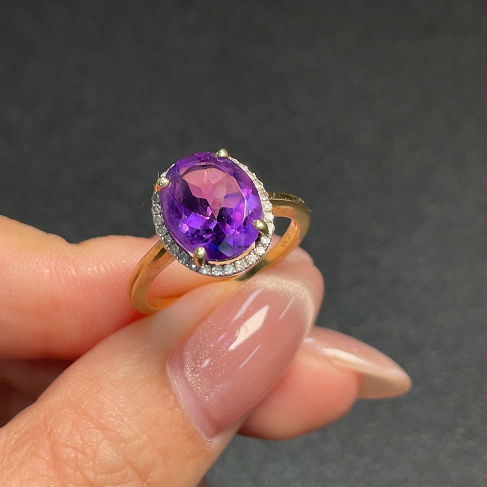 Crystal Ring with Diamond Accents, 58% Gold Content, Total Weight Approx. 3.48g, Size 16