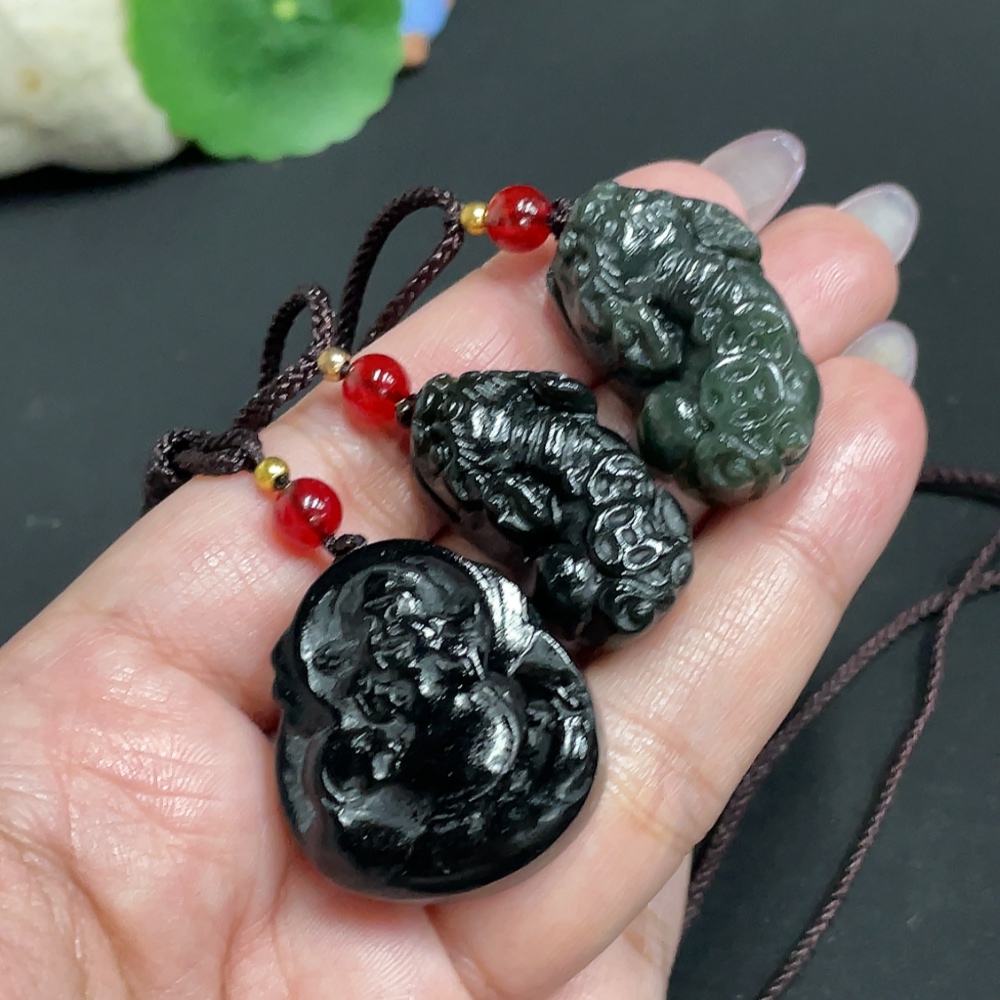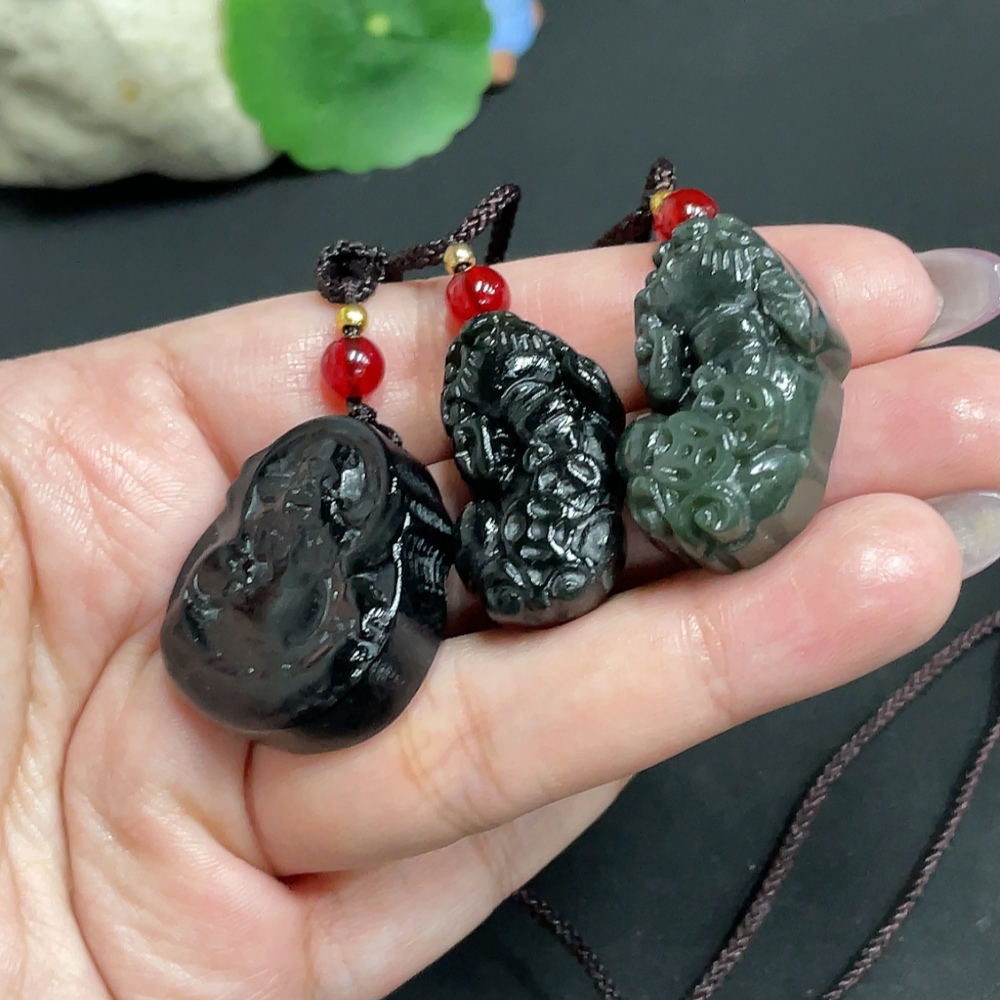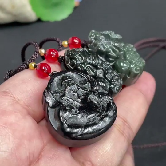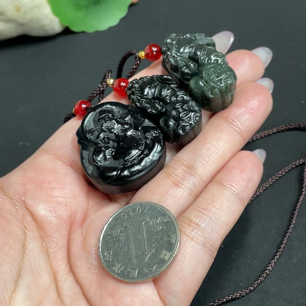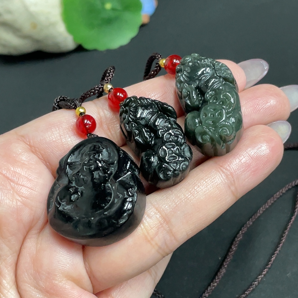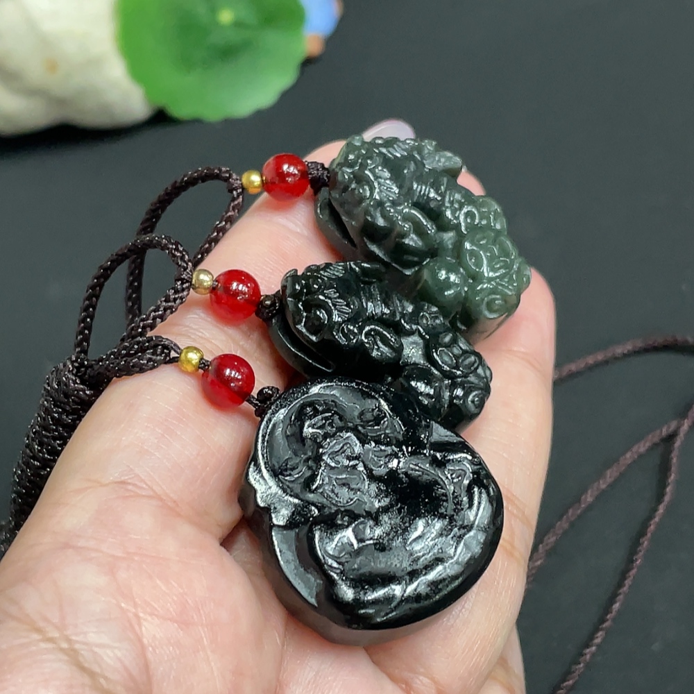Hetian Jade Pendant God of Wealth Pixiu Total weight (including rope): approx. 42.4g Color origin undetermined Contains other mineral components