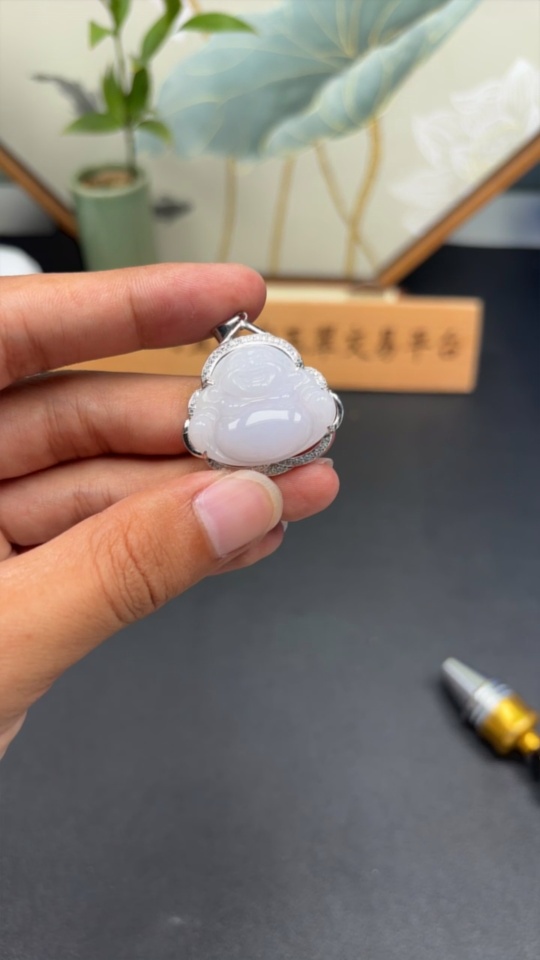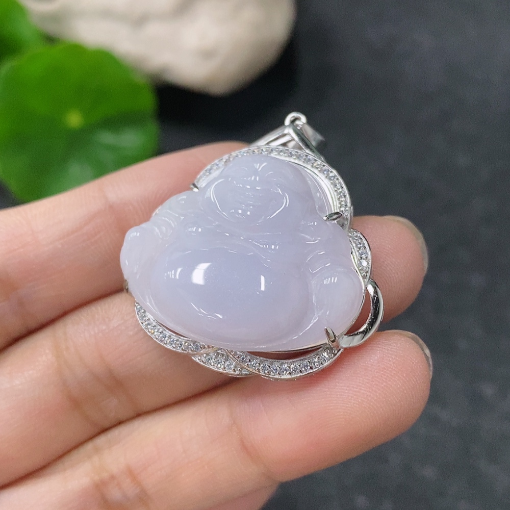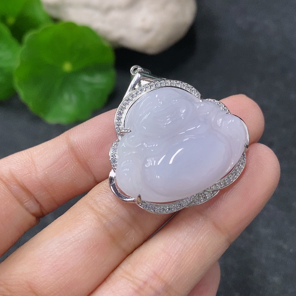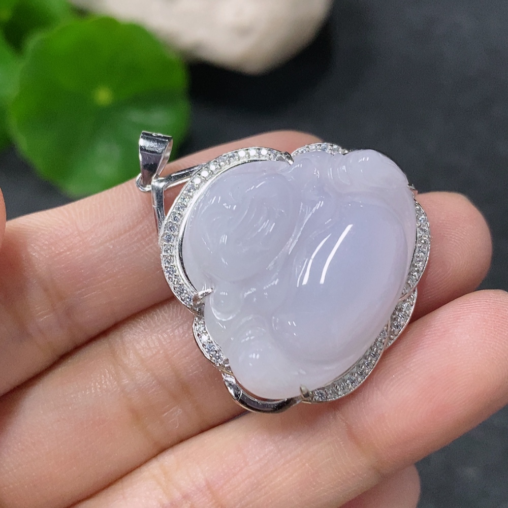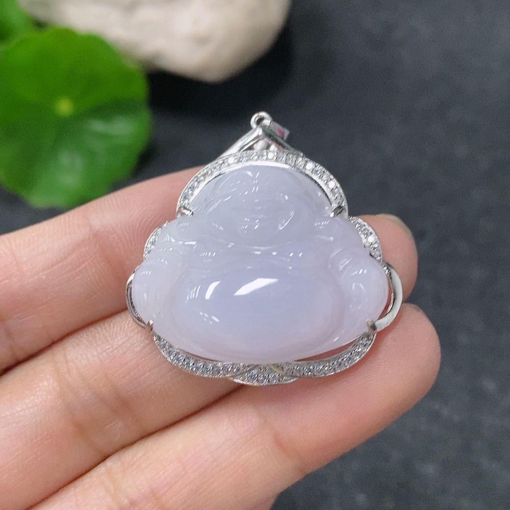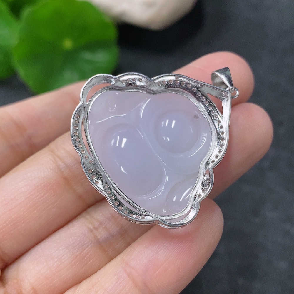 Jadeite Inlaid Buddha Pendant Non-Gold Total Weight Approx. 6.87g