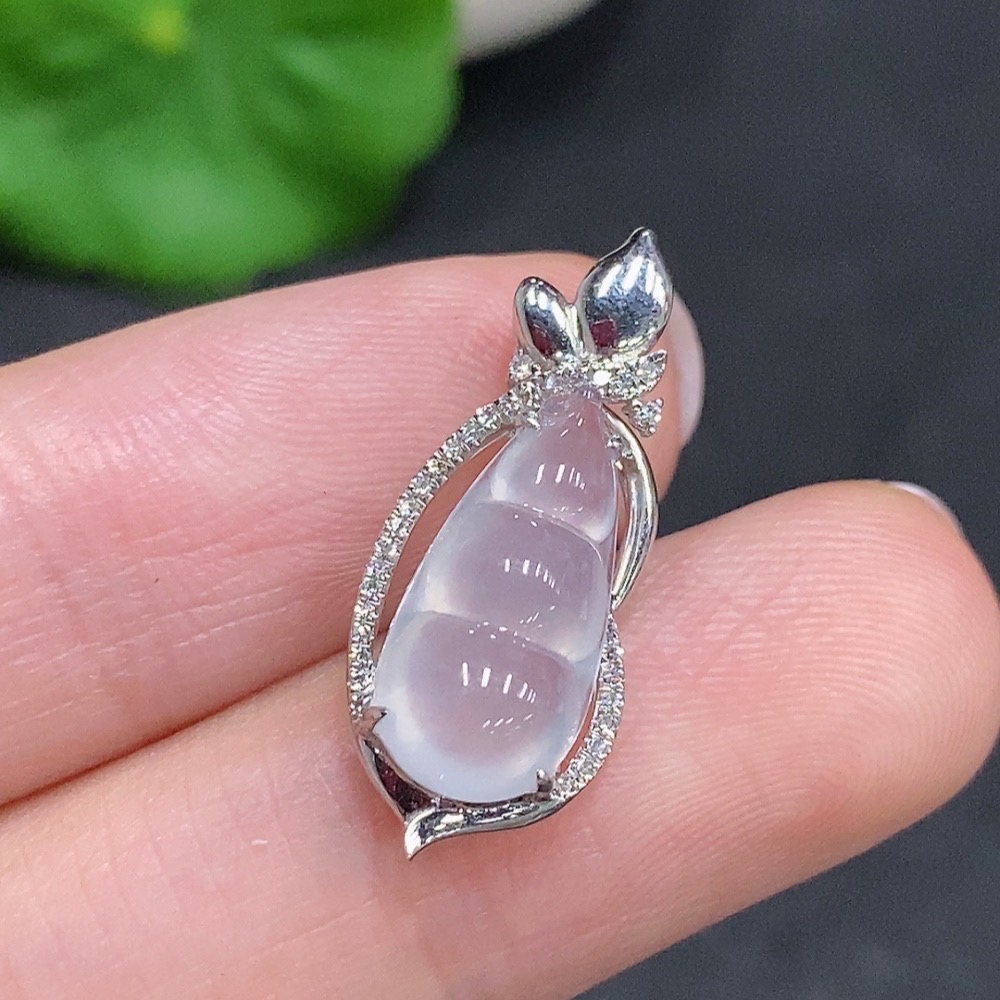 Jadeite Bean Inlay Pendant 18k Gold Total Weight Approx.1.6g With Diamond Accents