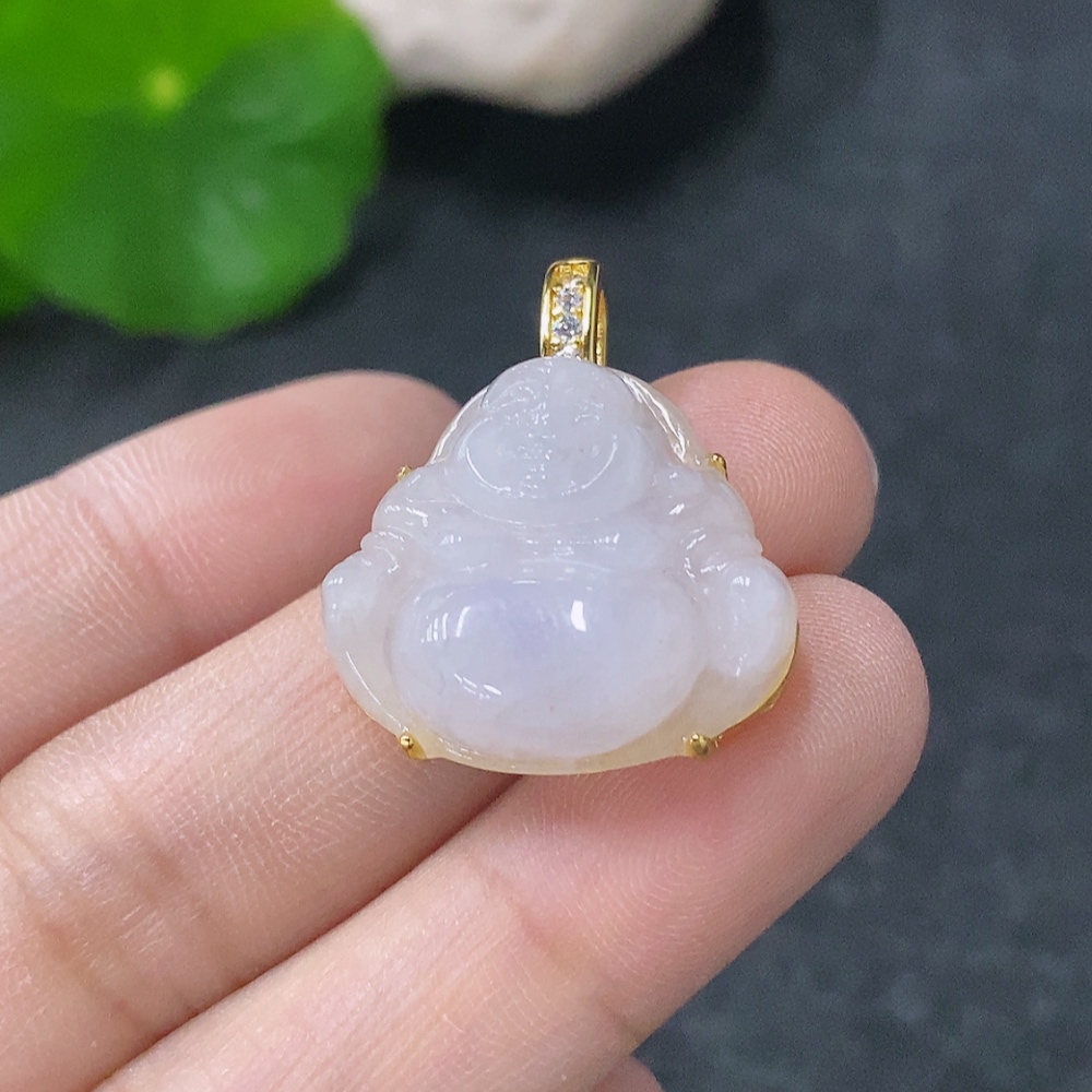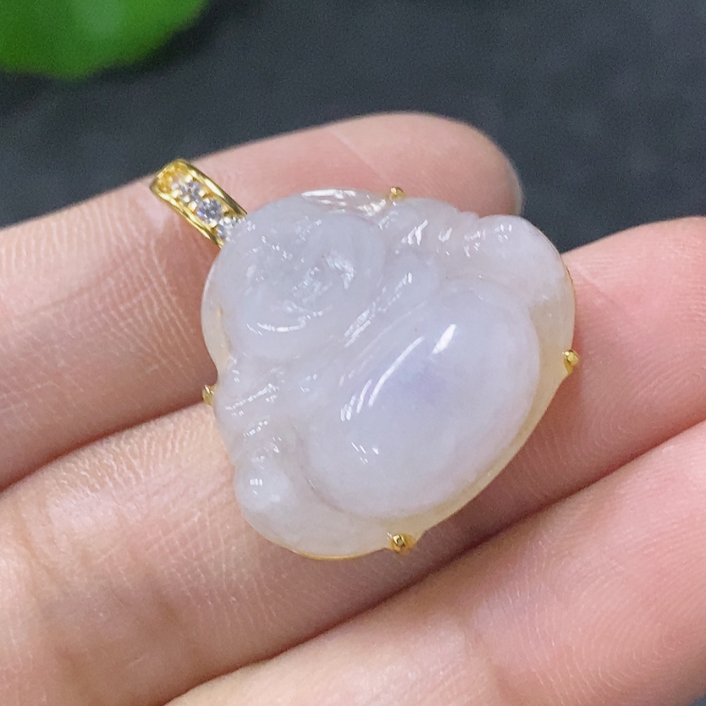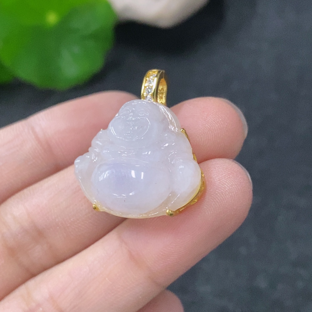 Jadeite Inlaid Buddha Pendant Non-Gold Total Weight Approx. 4.85g