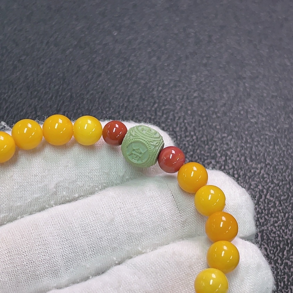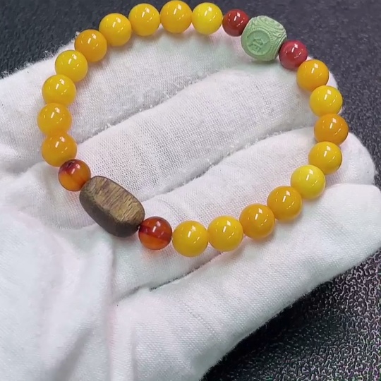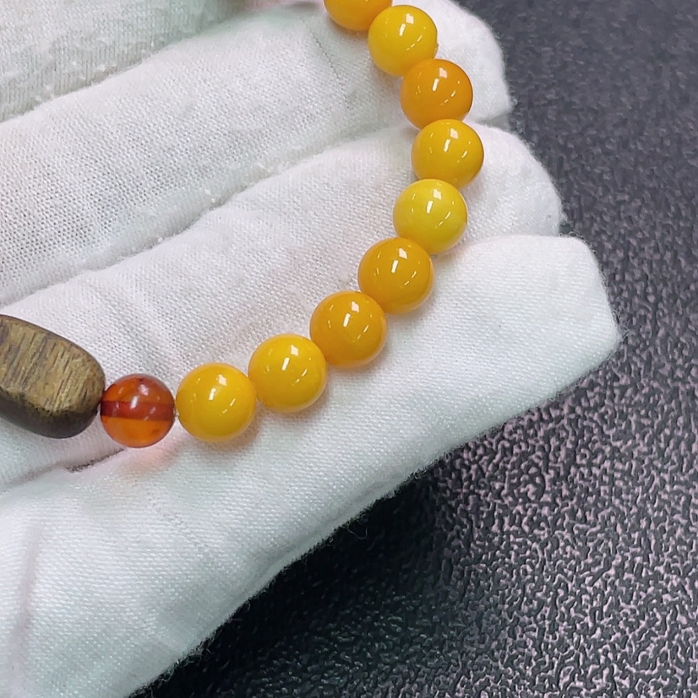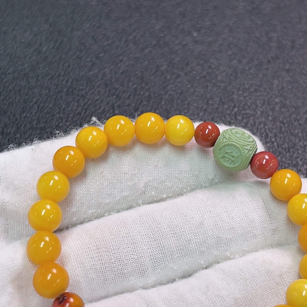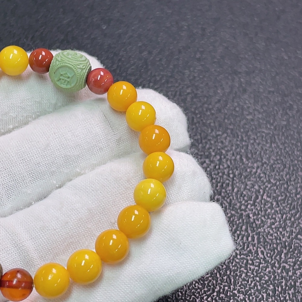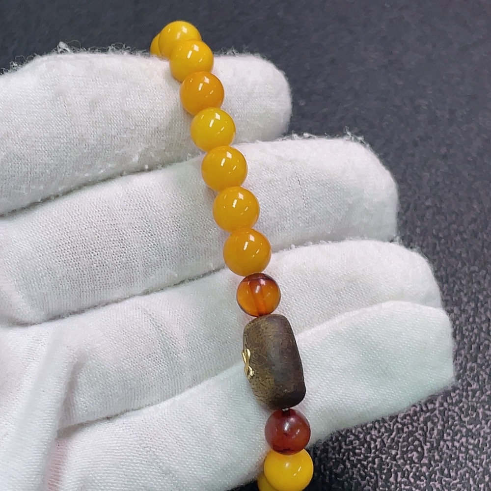Amber Beeswax Bracelet with Non-Natural Accent Stones, Total Weight Approx. 6.15g, Sizeiors About 6.8mm