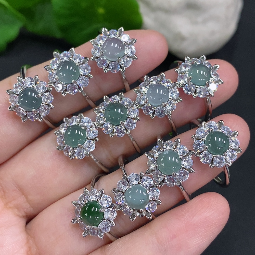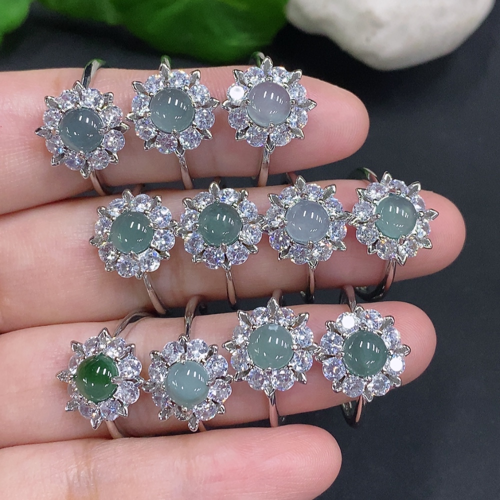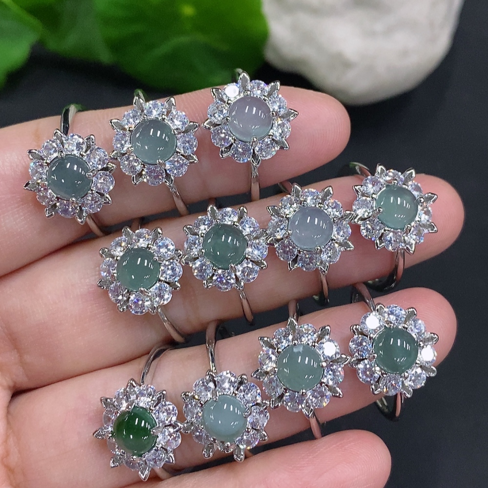 Jadeite Cabochon Inlaid Ring Sell as a Lot Adjustable Size Non-Gold Setting