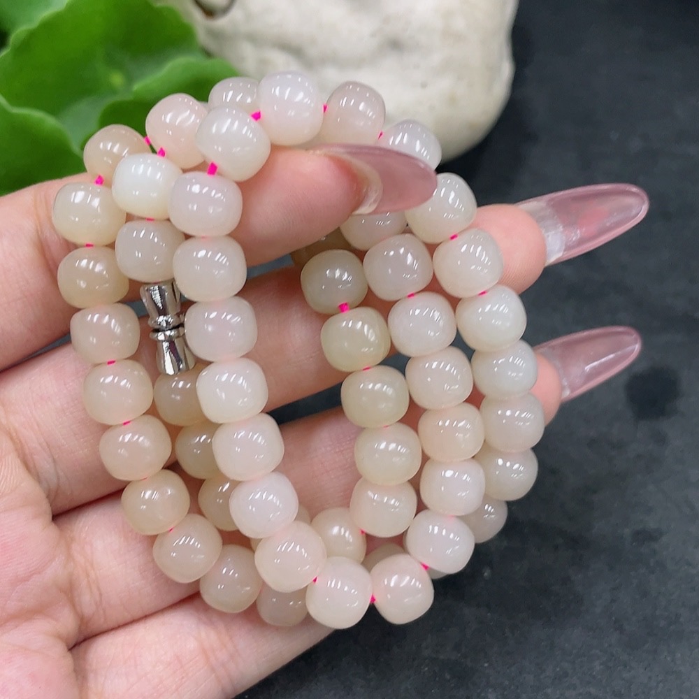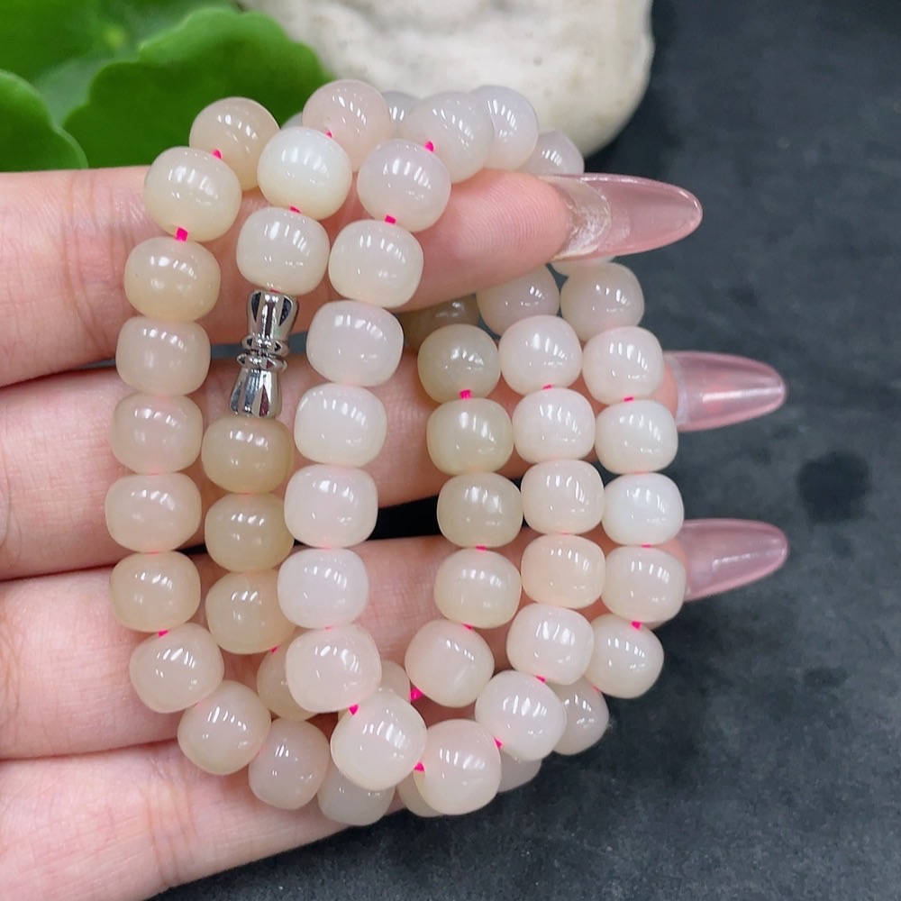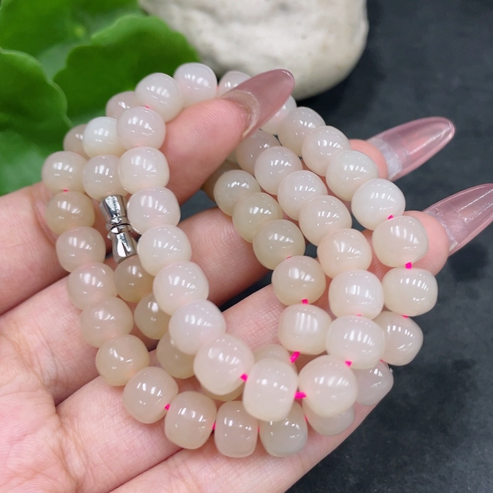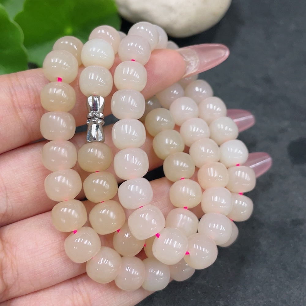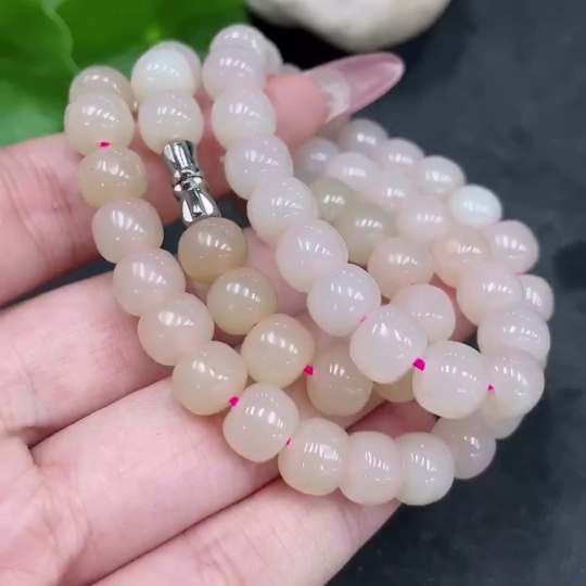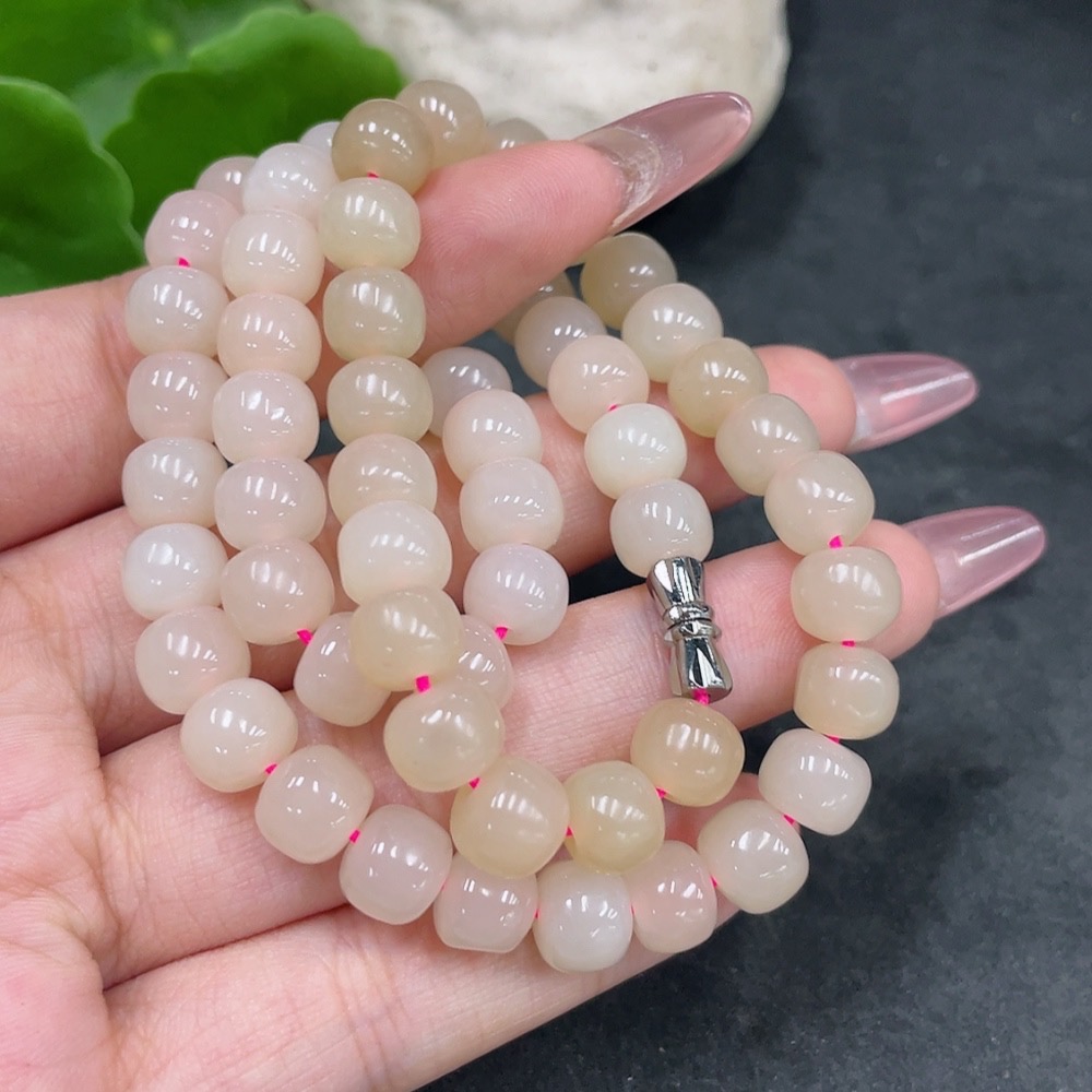 Hetian Jade Bead Necklace, Approx. 7.8mm, Total Weight Approx. 49.9g, Non-Gold