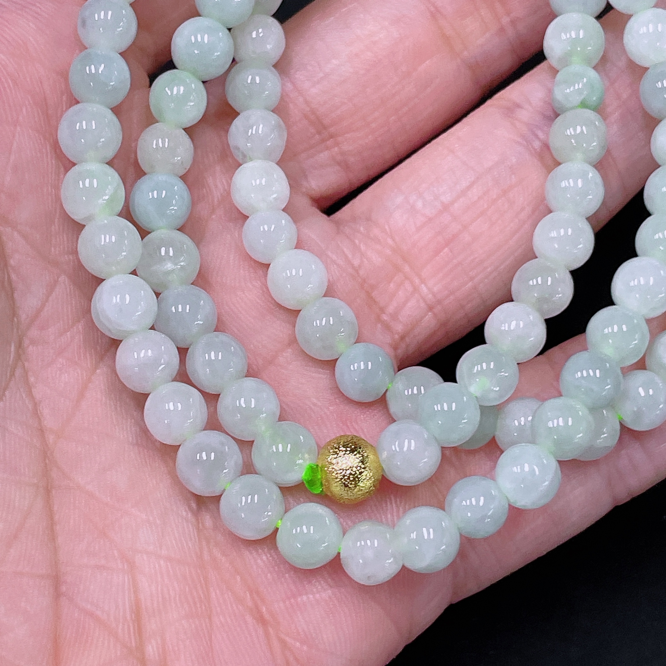 Jadeite Bead Necklace Approximately 5.7mm Total Weight About 33.6g Non-Gold Inlaid