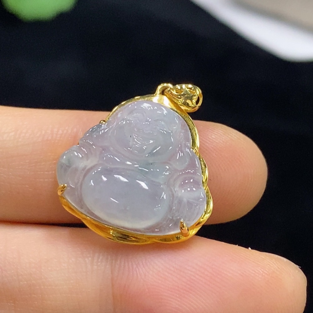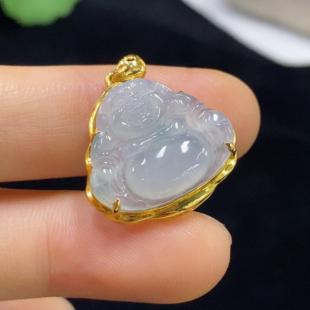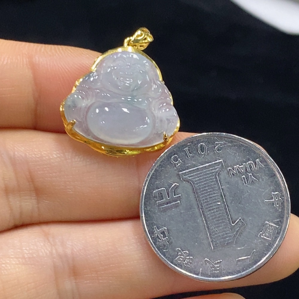 Jadeite Buddha Pendant with 18k Gold Mounting, Total Weight Approximately 2.85g