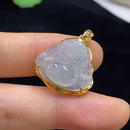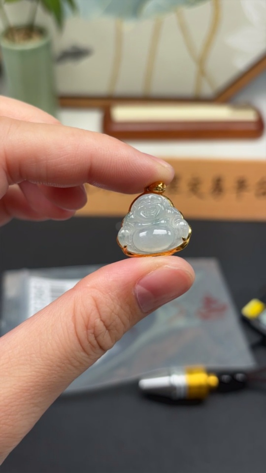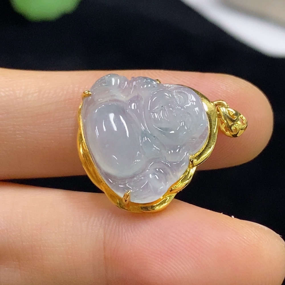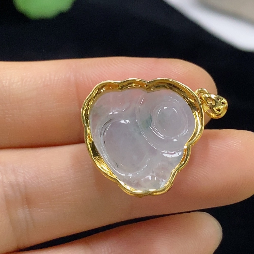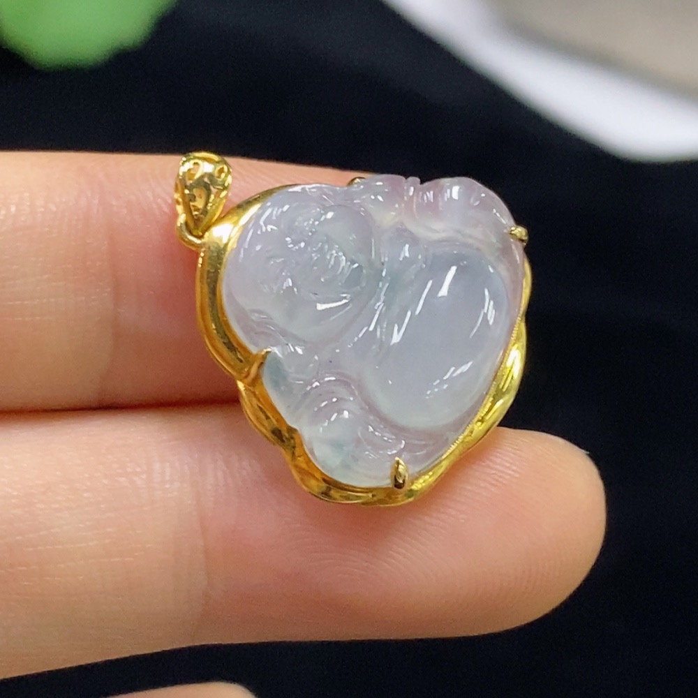 Jadeite Buddha Pendant with 18k Gold Mounting, Total Weight Approximately 2.85g