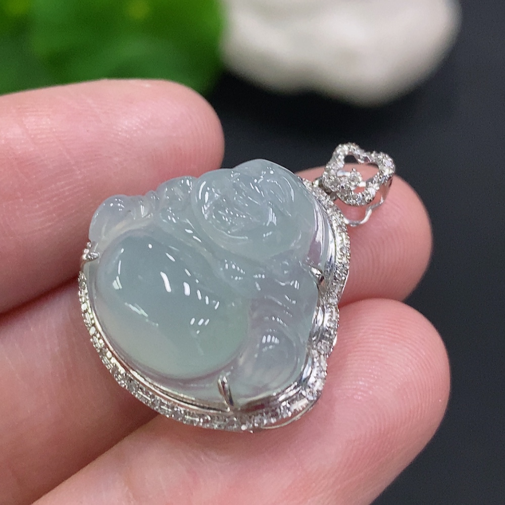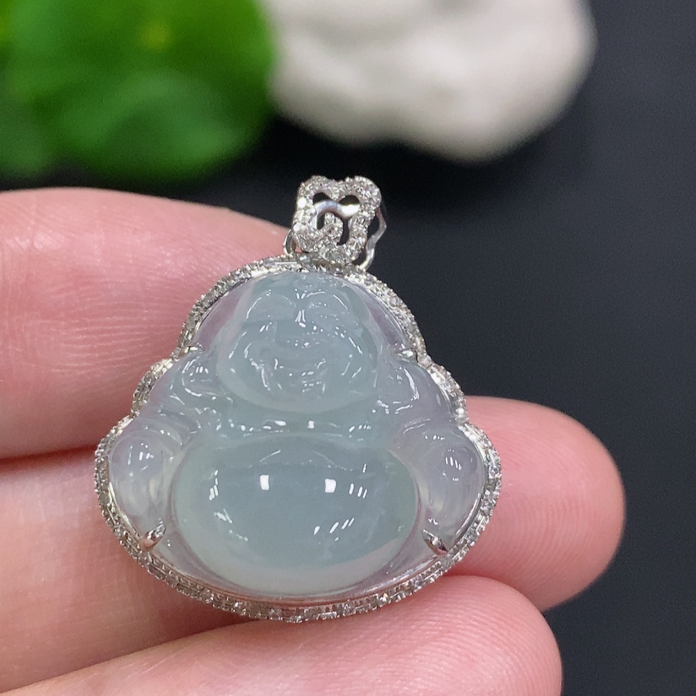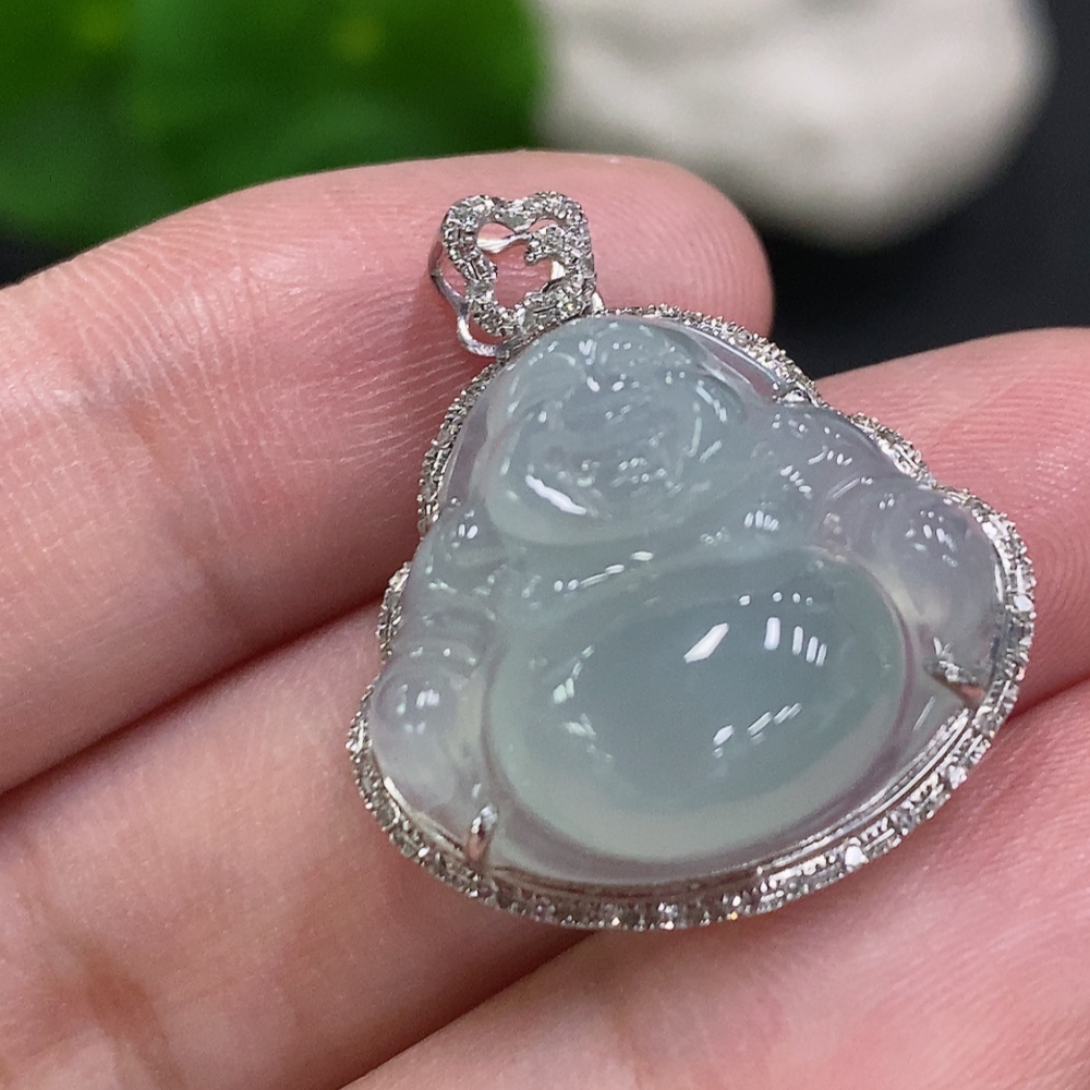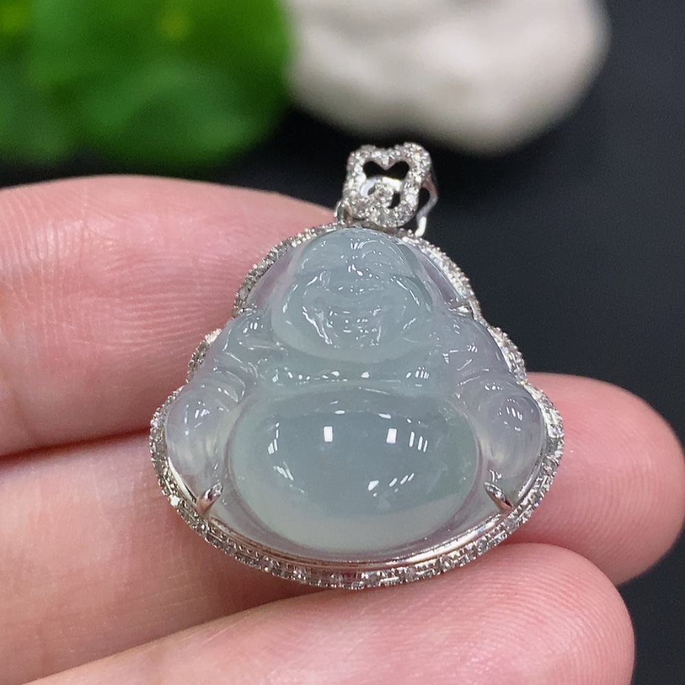 Jadeite Buddha Pendant with 18K Gold Setting Total Weight Approx. 3.8g (Diamond Accents)