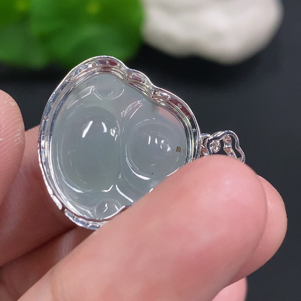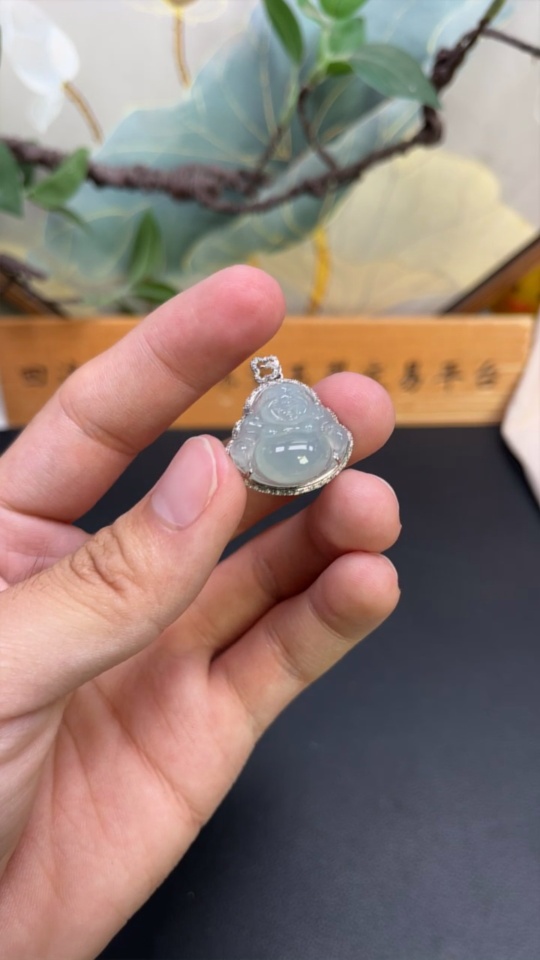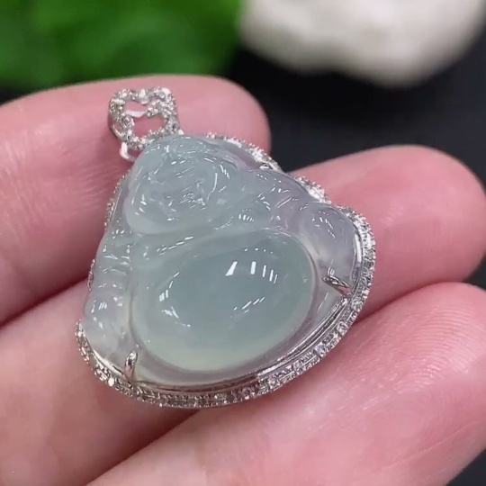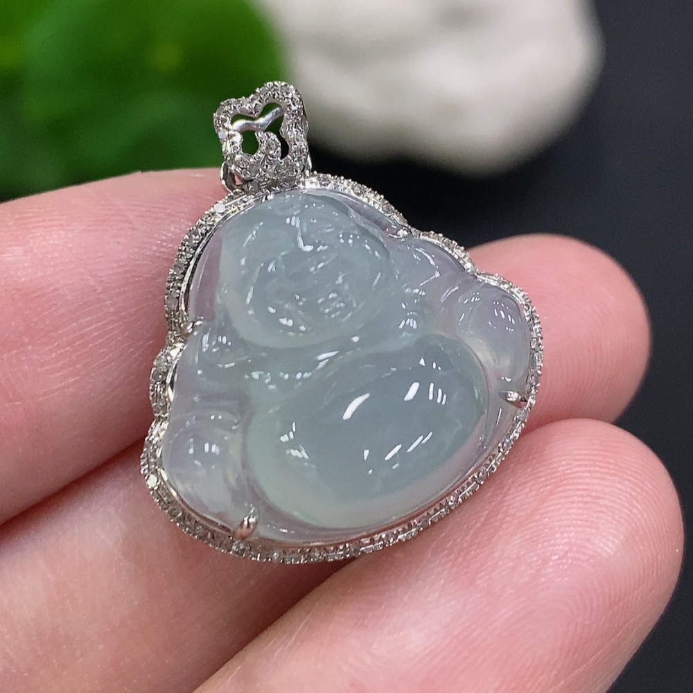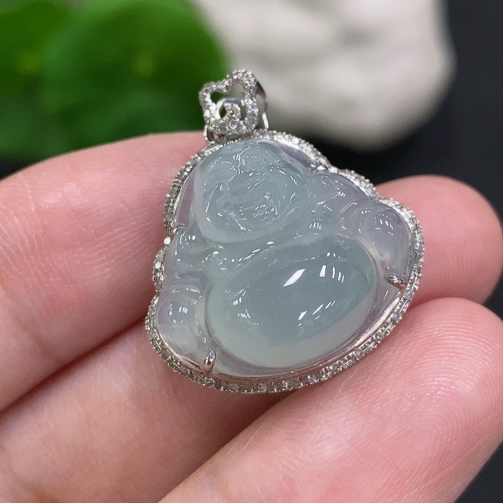 Jadeite Buddha Pendant with 18K Gold Setting Total Weight Approx. 3.8g (Diamond Accents)