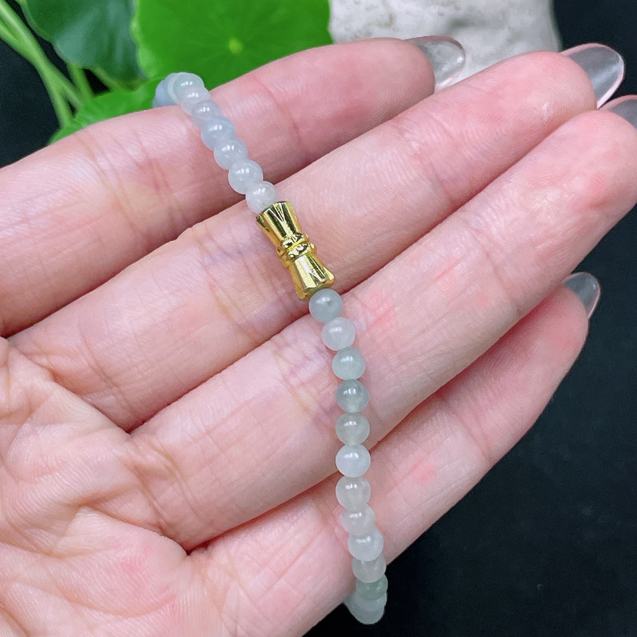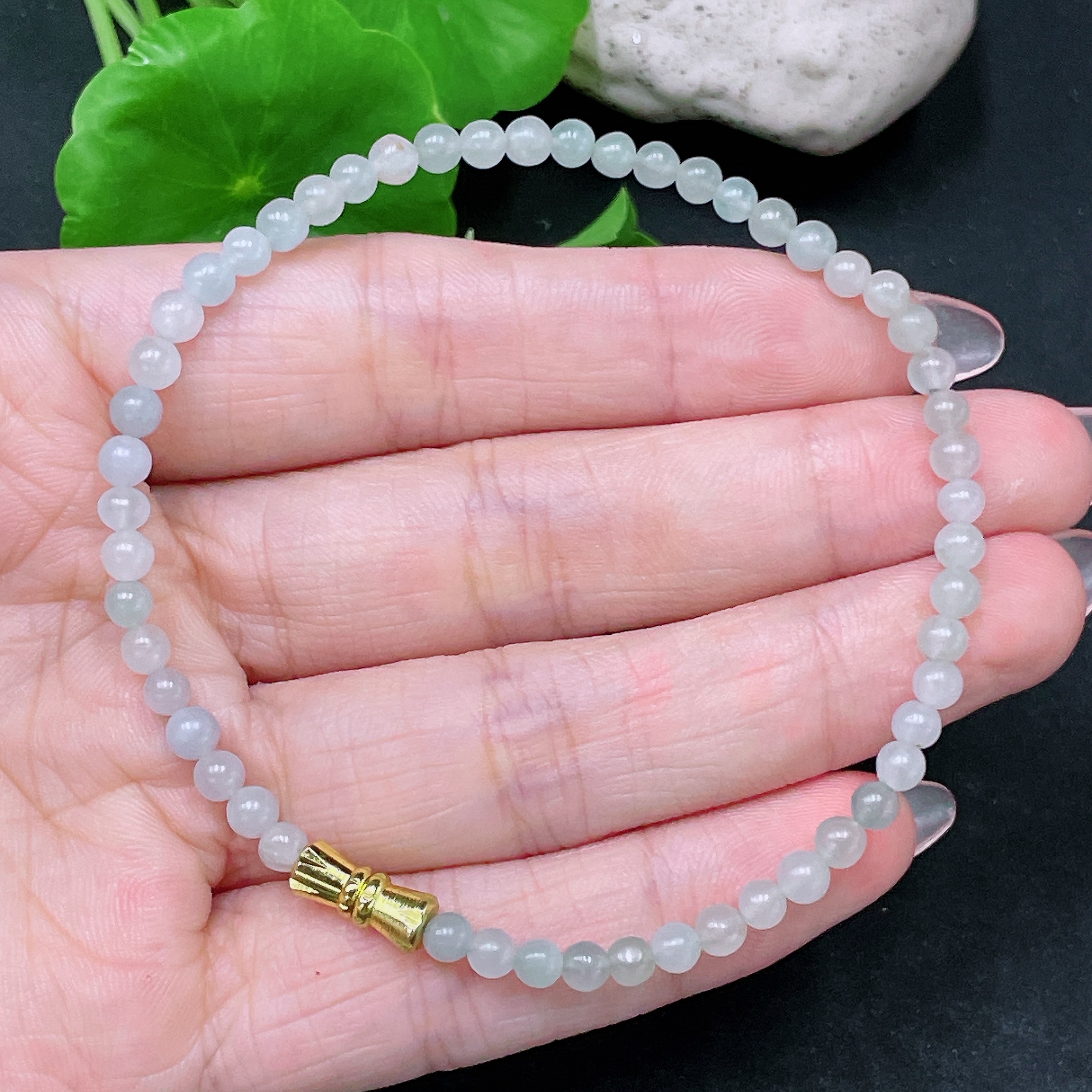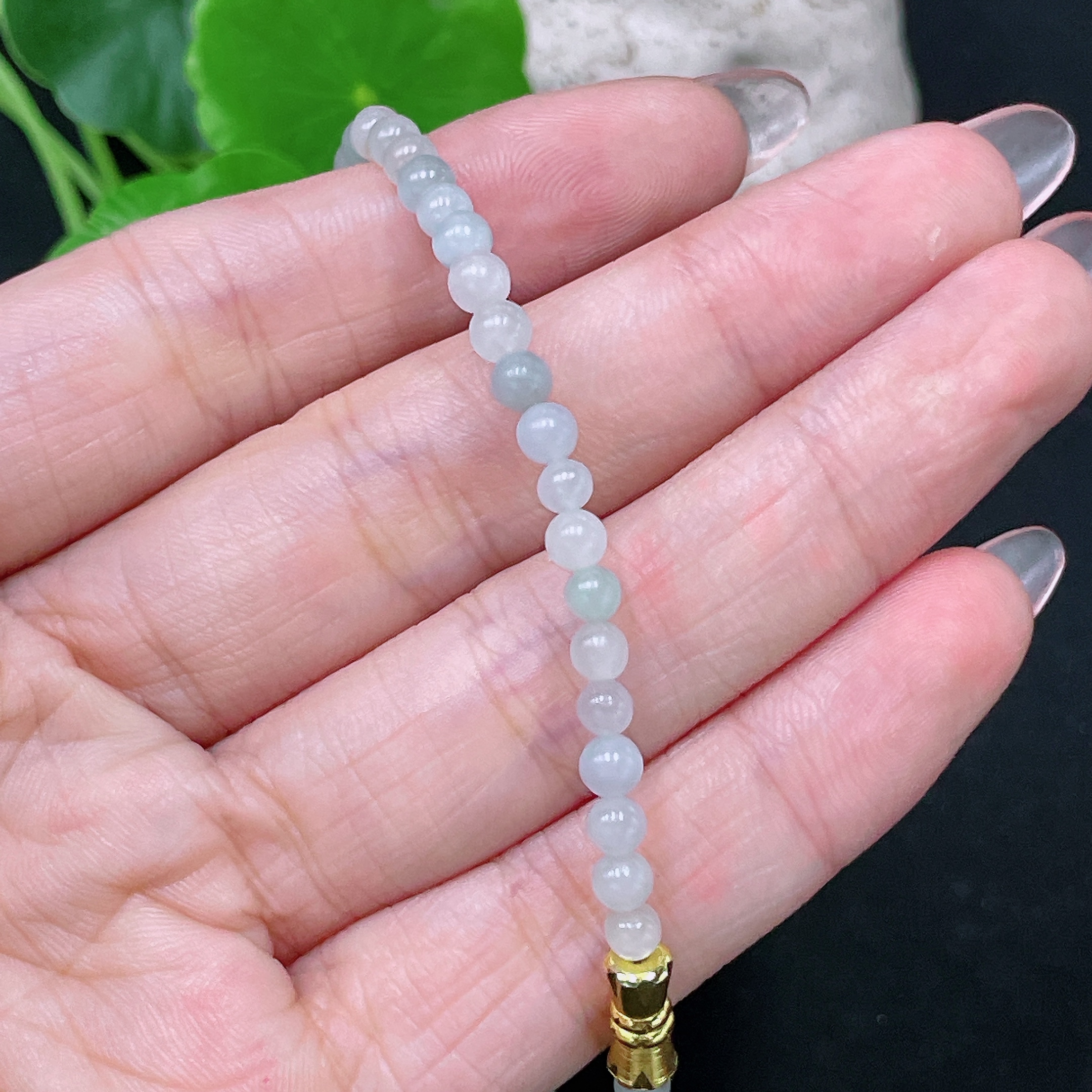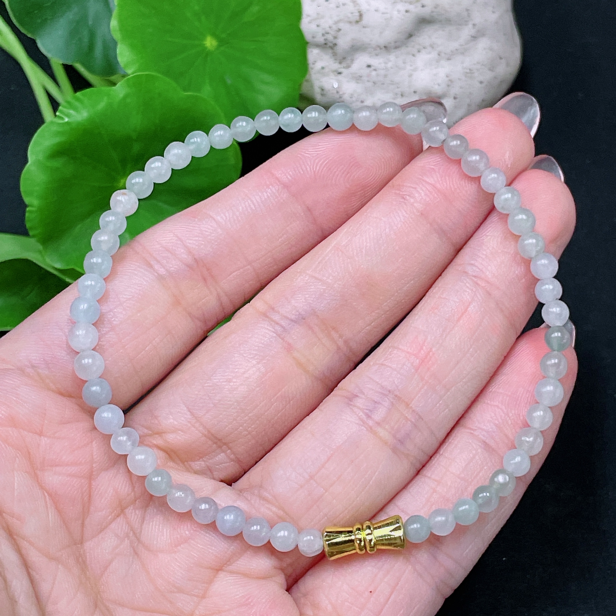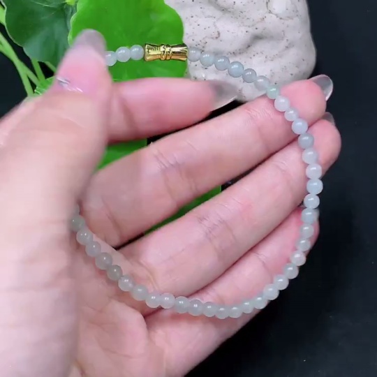 Jadeite Beaded Necklace Approx. 3.5mm Non-Gold Total Weight Approx. 6g
