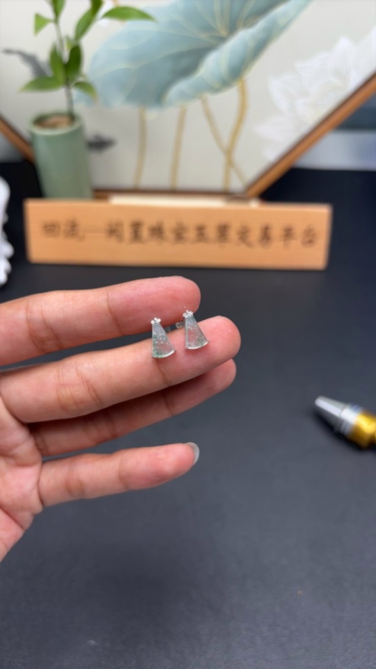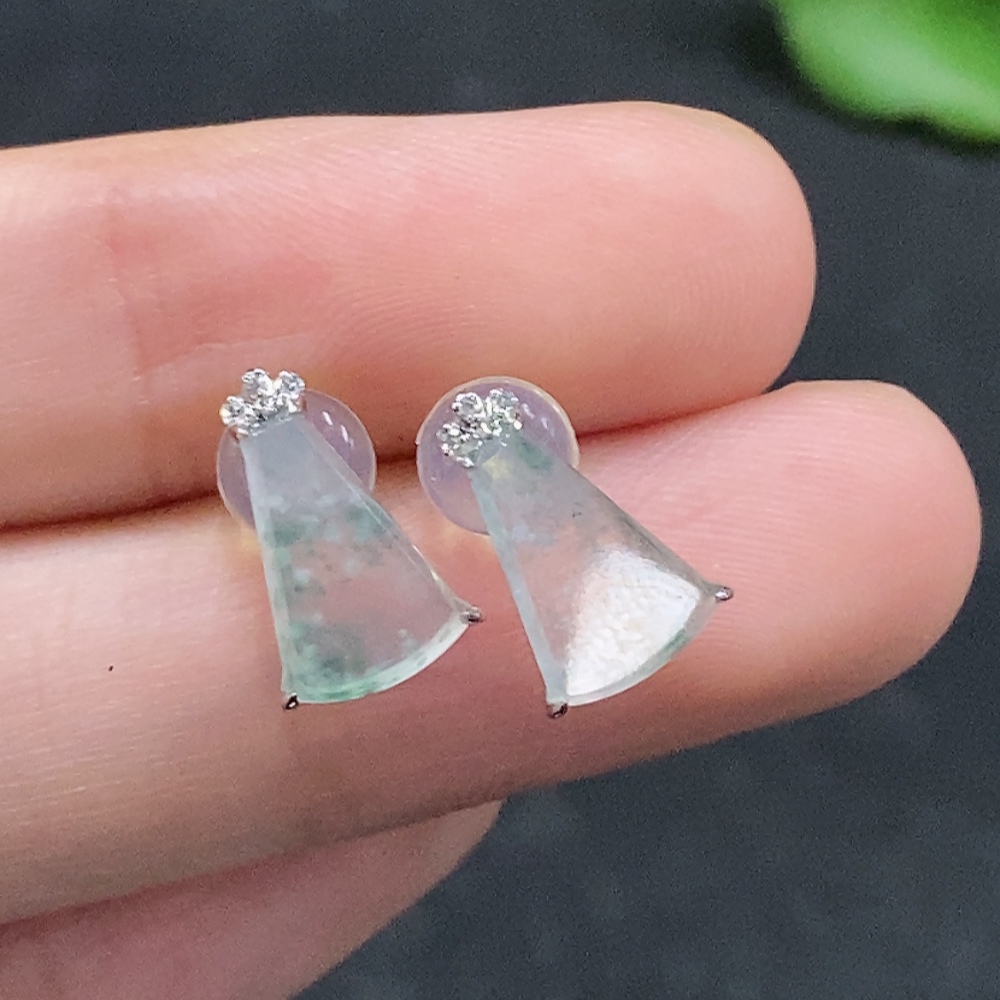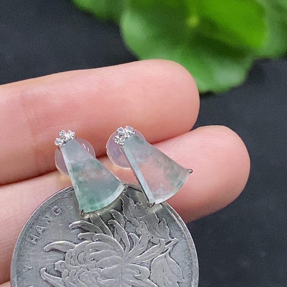 Jadeite inlaid earrings pair 18k gold inlaid non-diamond total weight about 1.19g