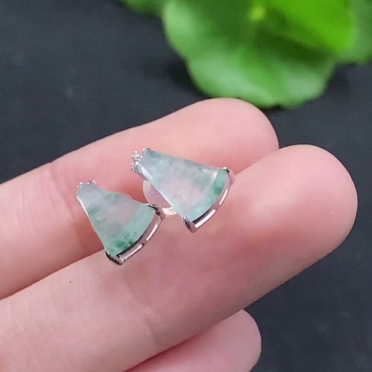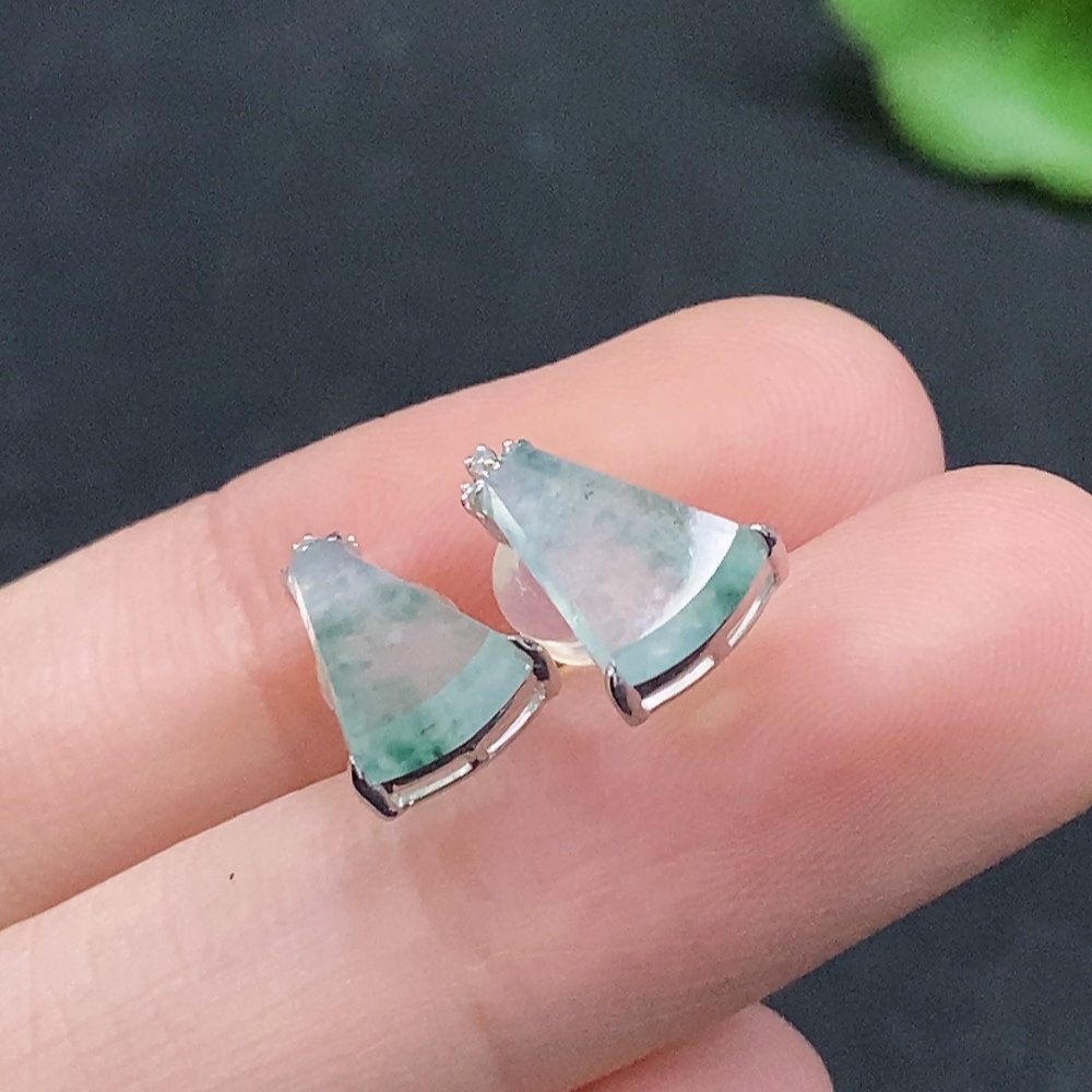 Trezaar - Jadeite inlaid earrings pair 18k gold inlaid non-diamond total weight about 1.19g