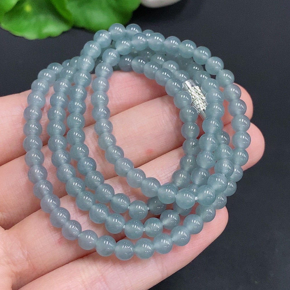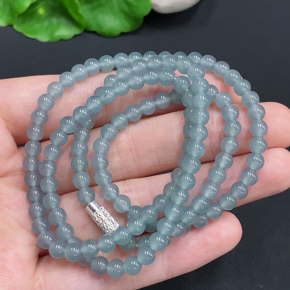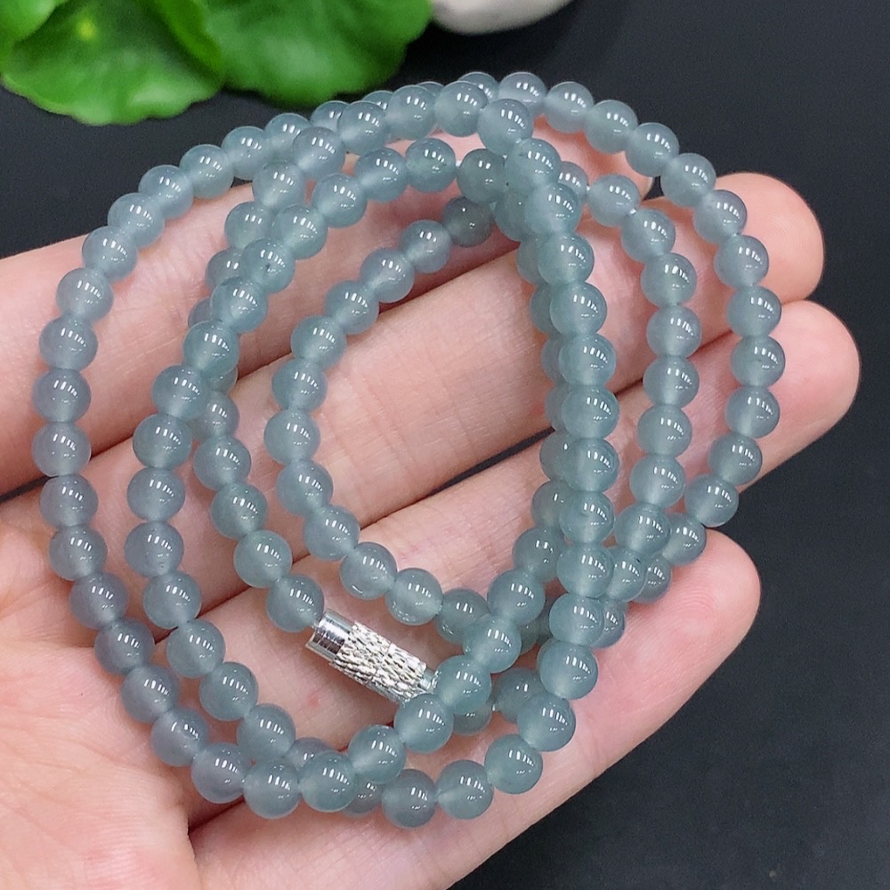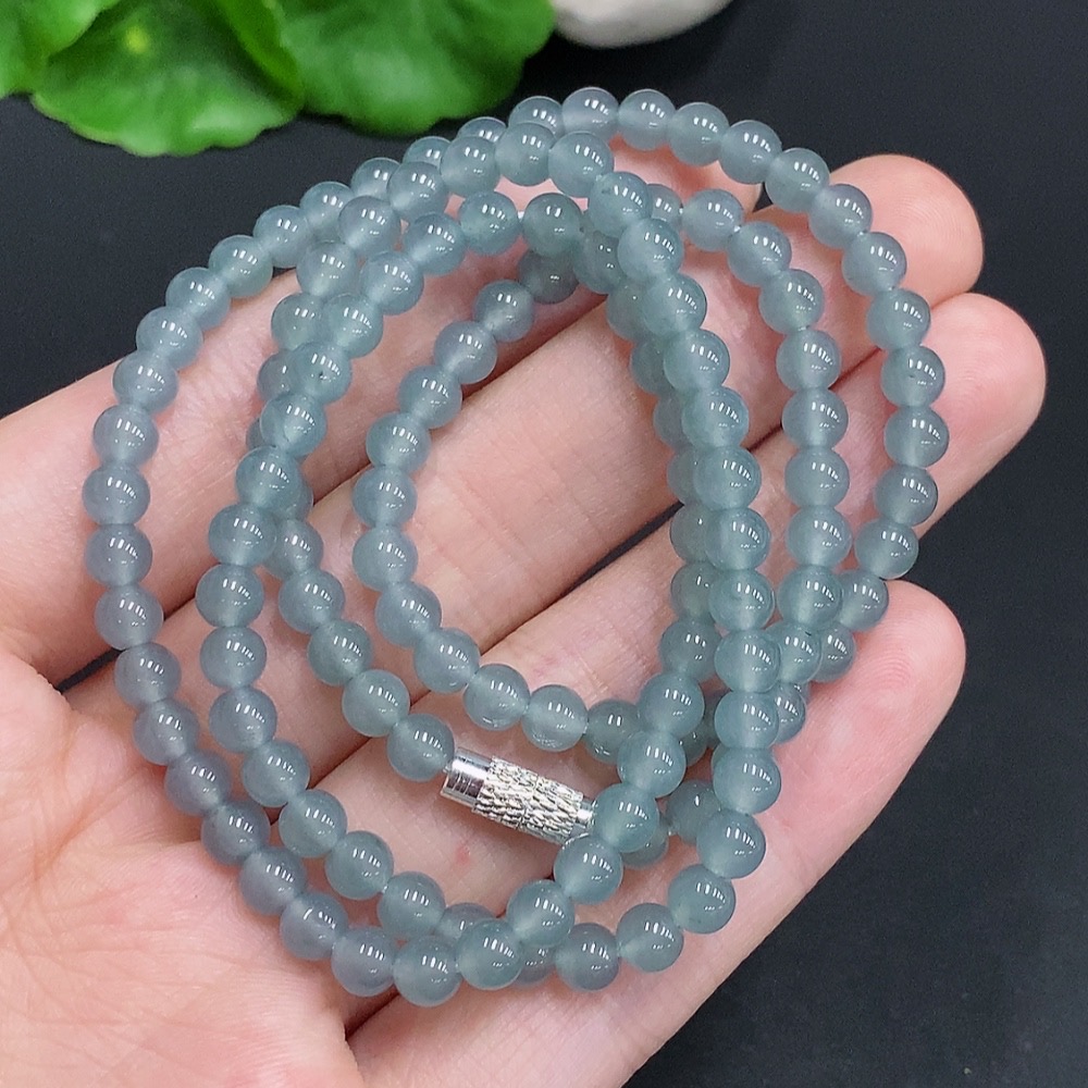 Jadeite Bead Necklace Non-Gold Inlaid Total Weight Approx.24g Size About4.7mm