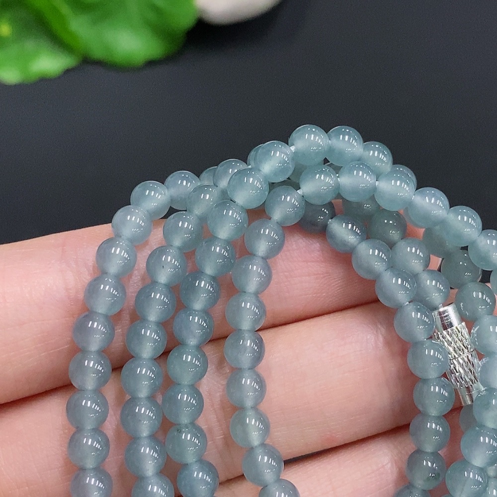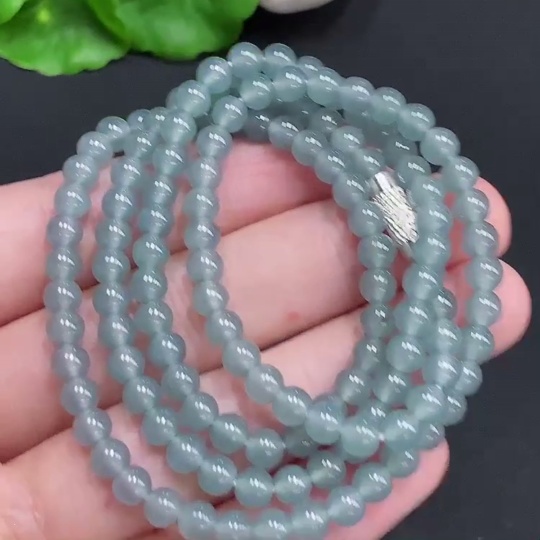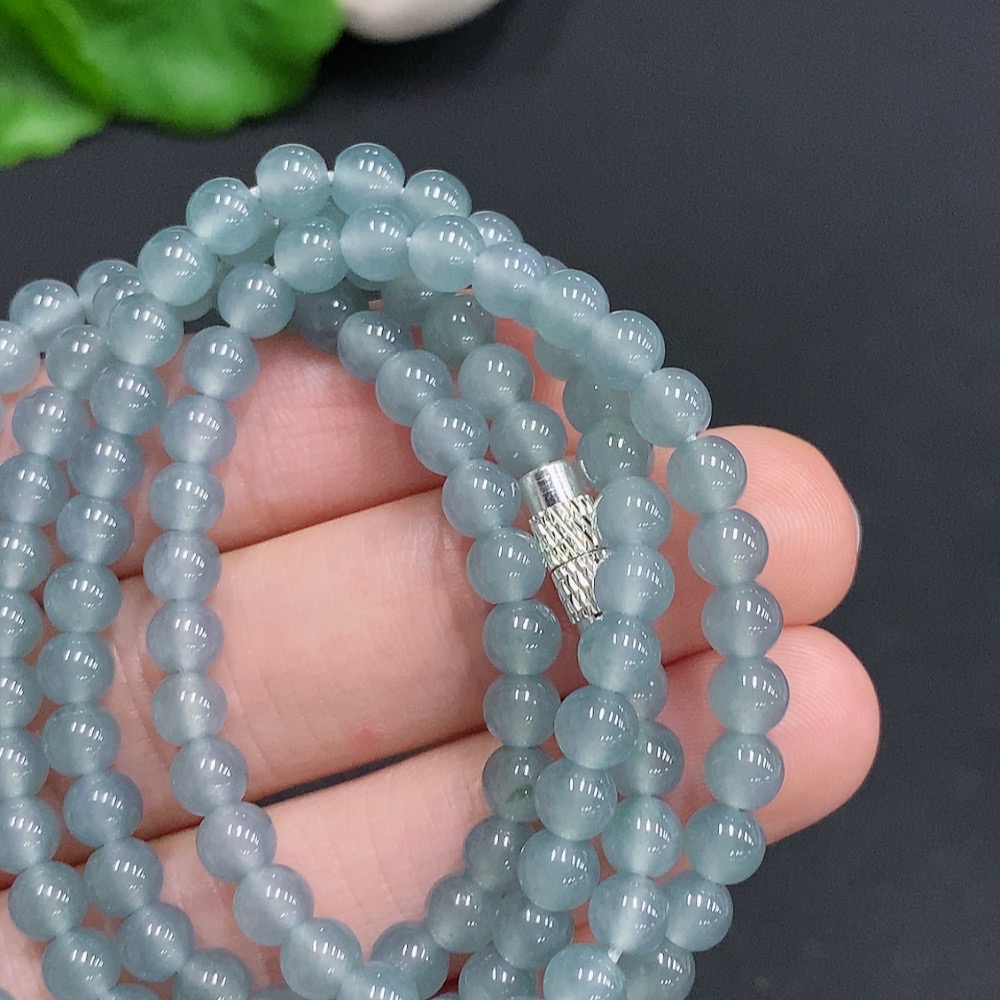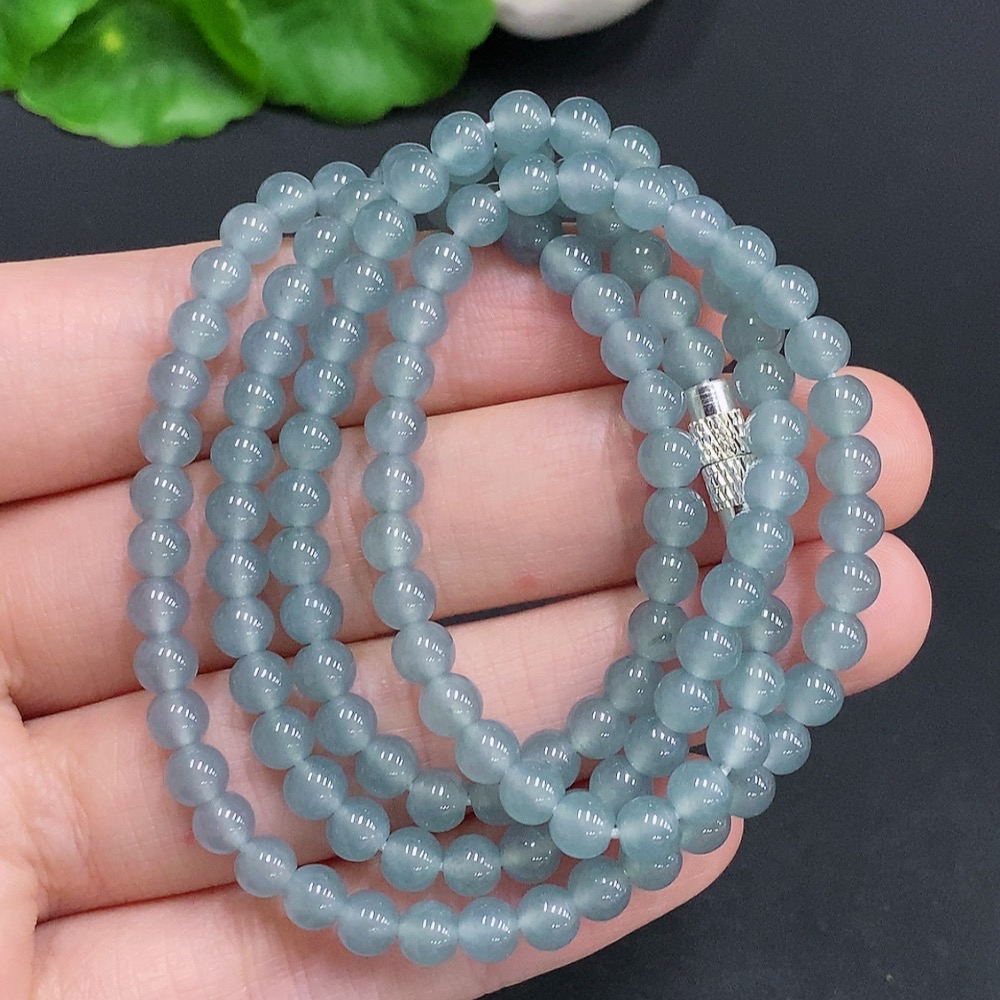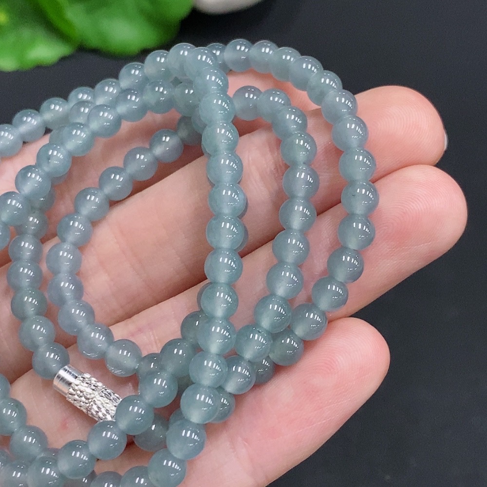 Jadeite Bead Necklace Non-Gold Inlaid Total Weight Approx.24g Size About4.7mm