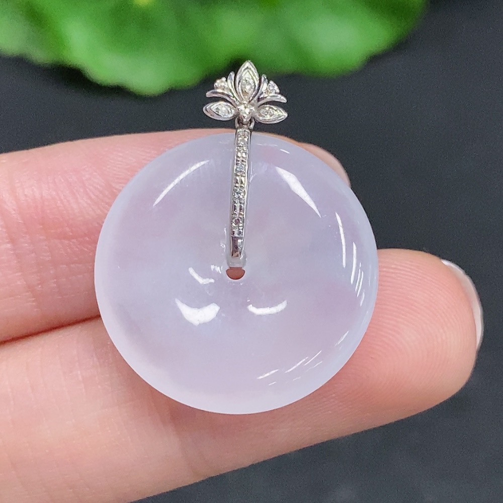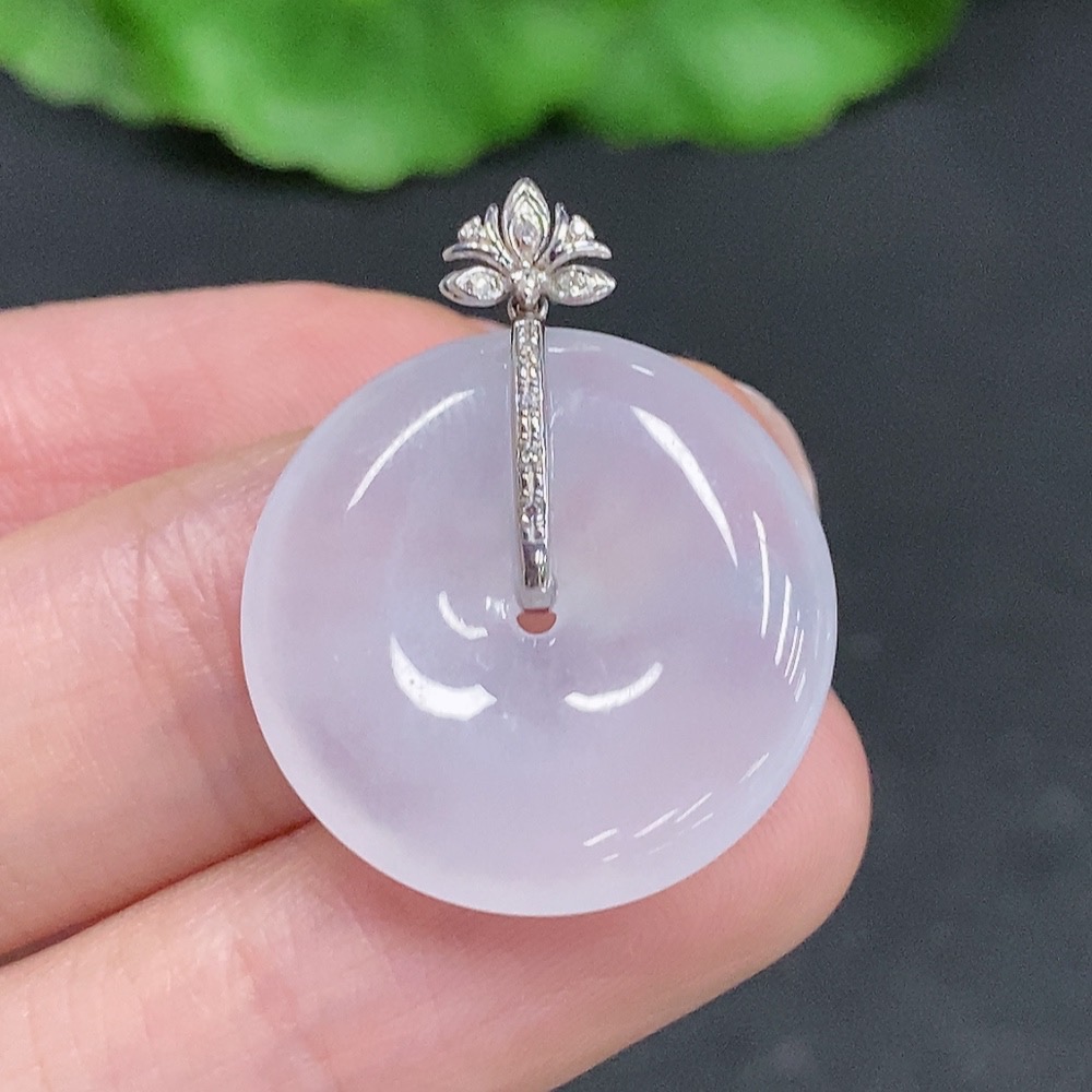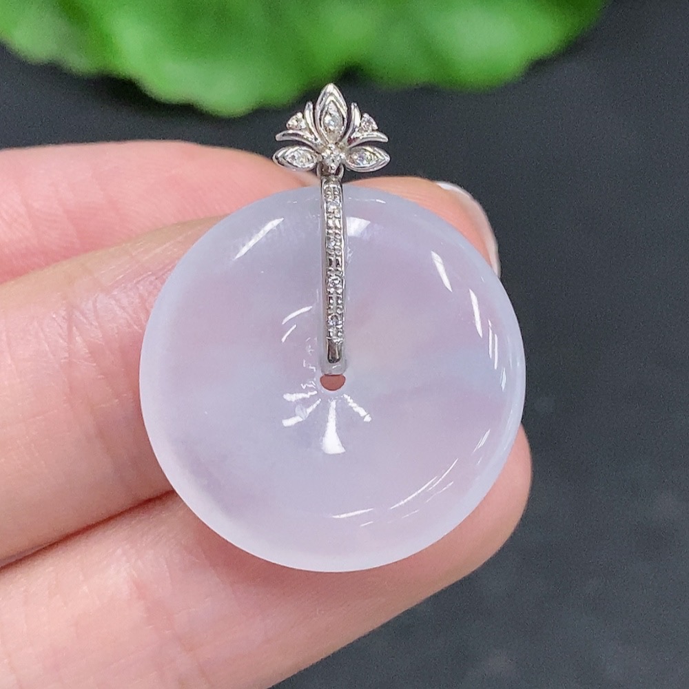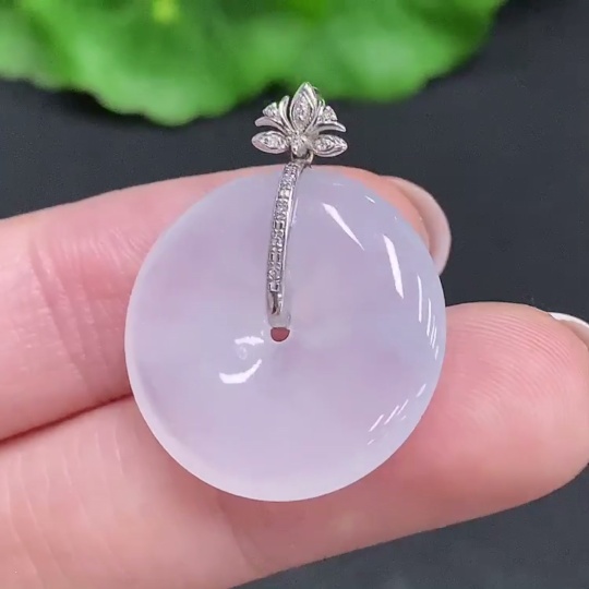Jadeite Safety Pendant with 18K Gold Clasp, Total Weight Approx. 4.3g, Set with Diamonds