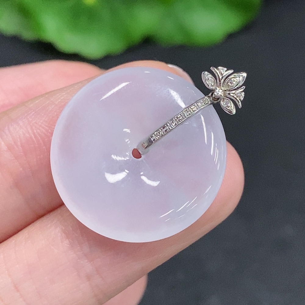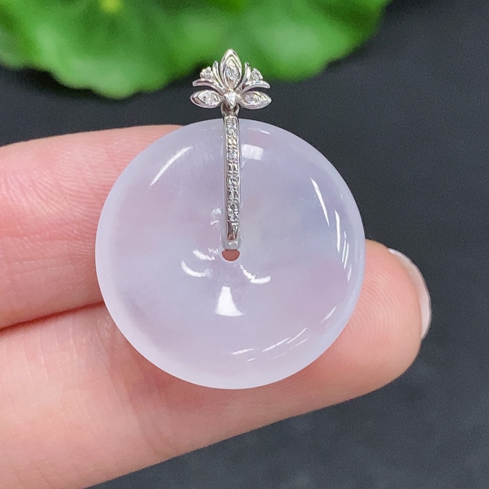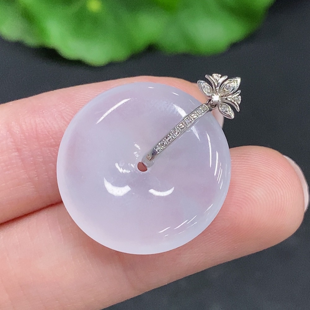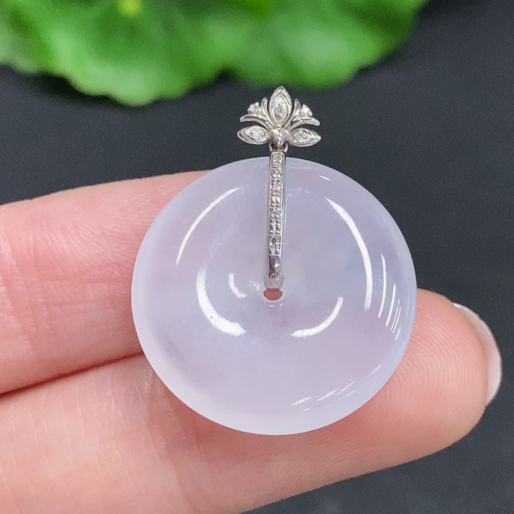 Jadeite Safety Pendant with 18K Gold Clasp, Total Weight Approx. 4.3g, Set with Diamonds