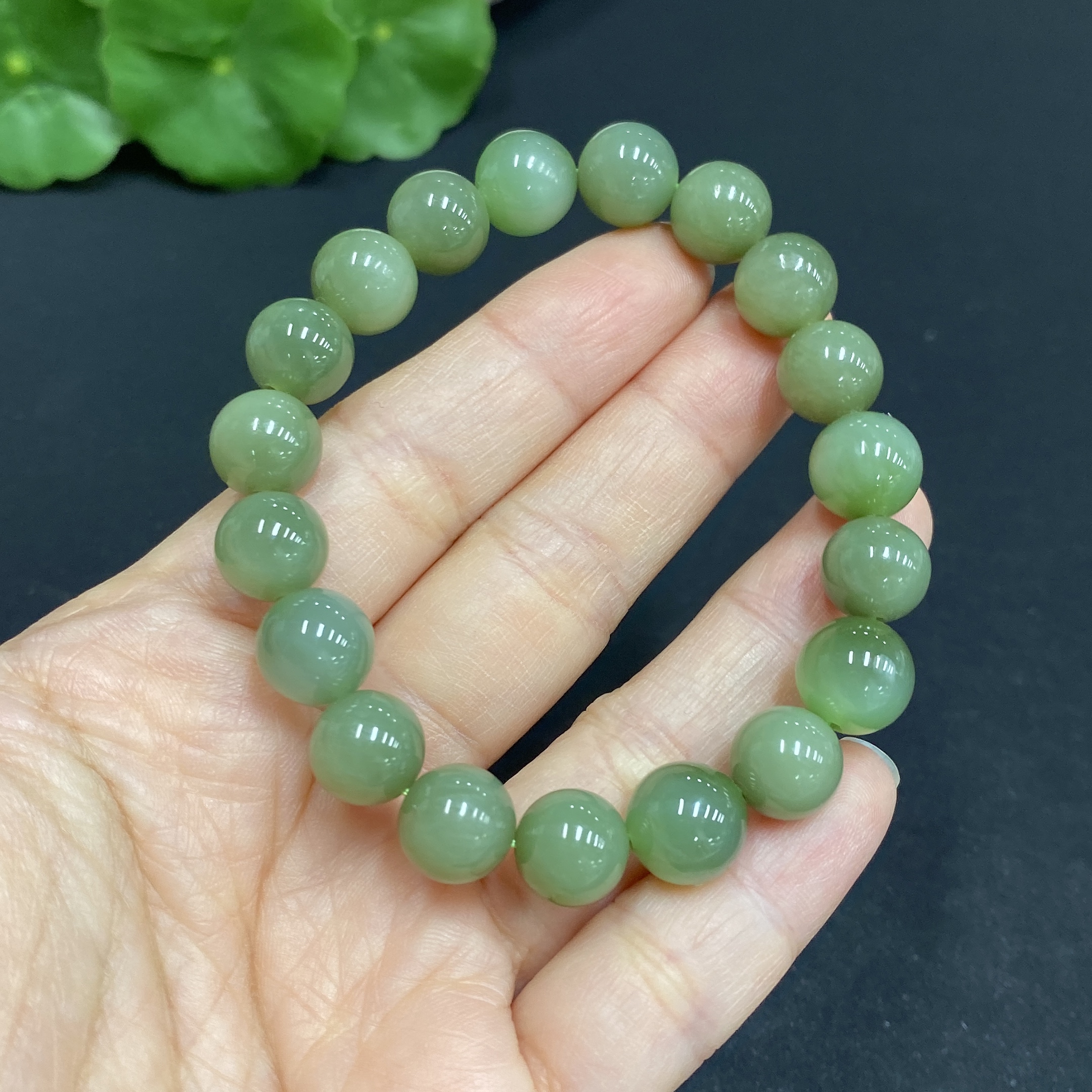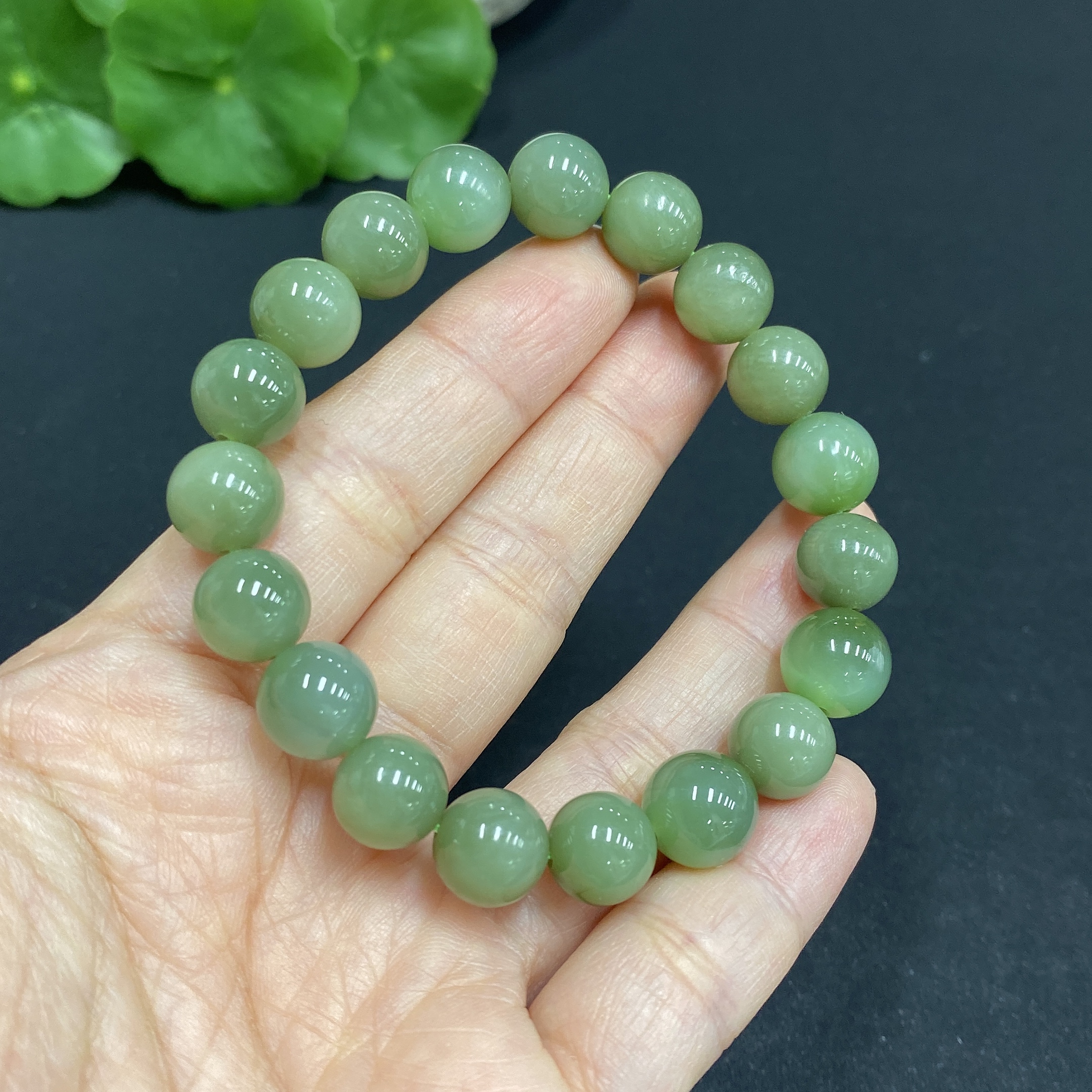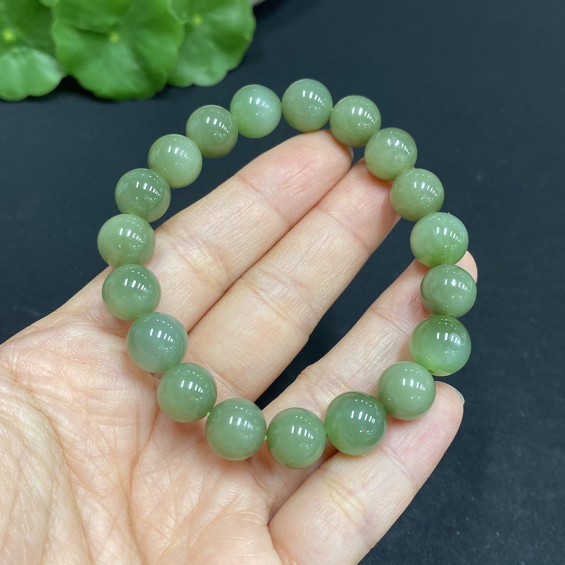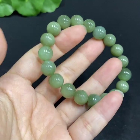 Hetian Jade Bead Bracelet Approx. 9.6mm Total Weight Approx. 25.8g