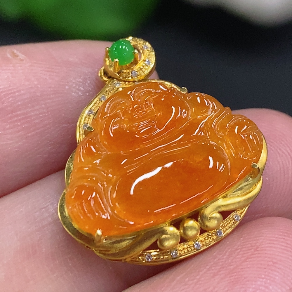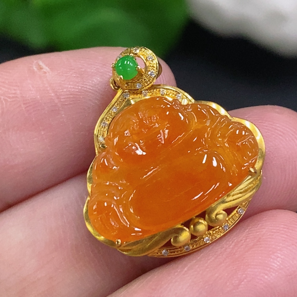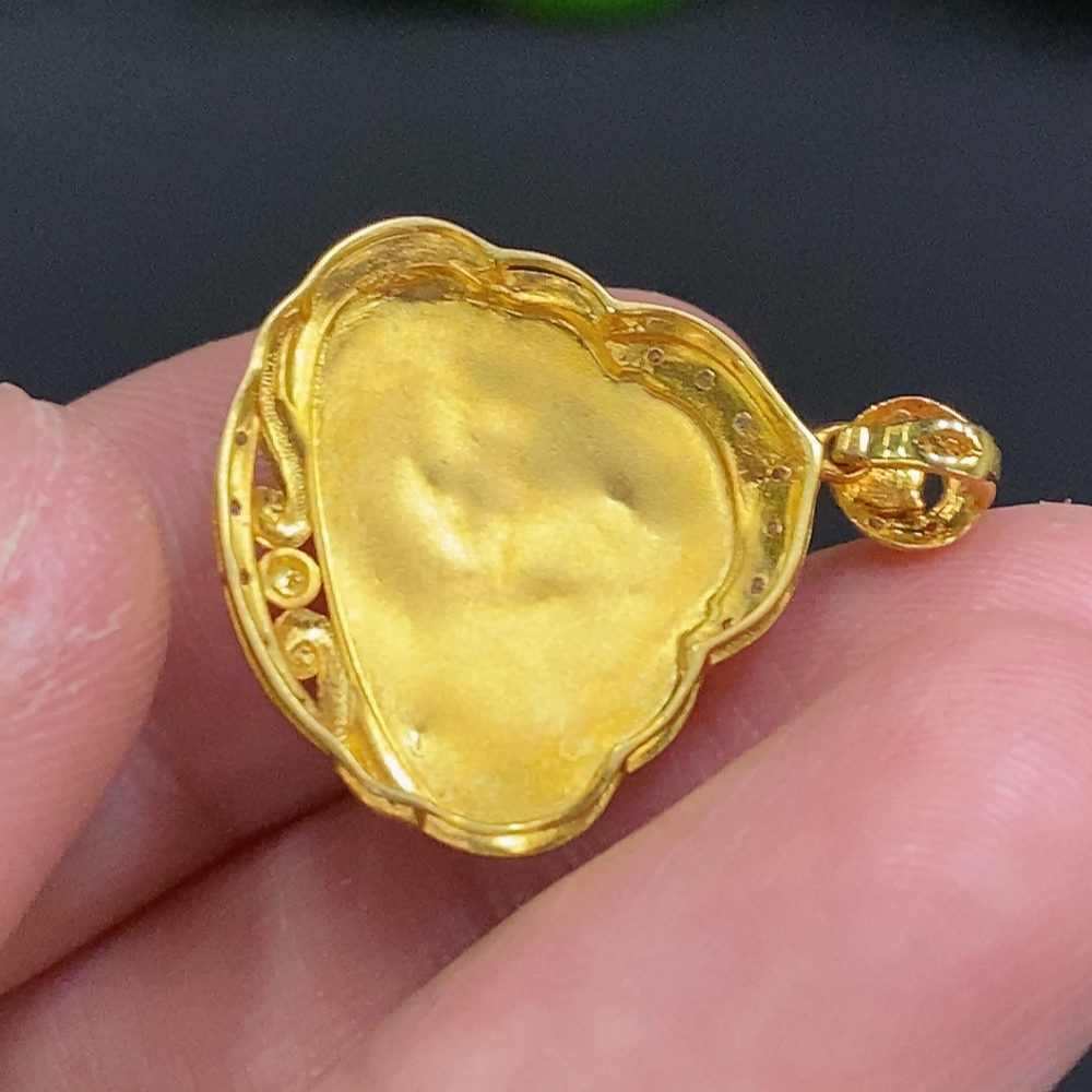 Jadeite Buddha Inlaid Pendant 18K Gold Total Weight Approx. 2.2g (With Diamond Inlays) (Color Origin Undetermined)