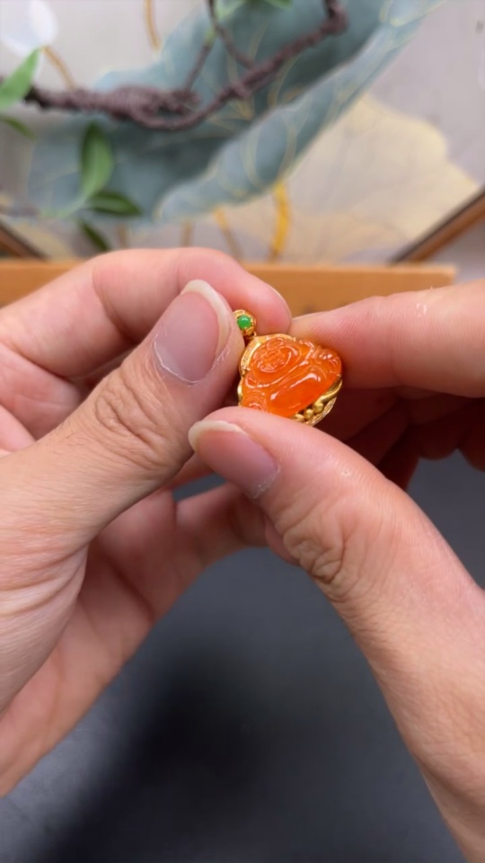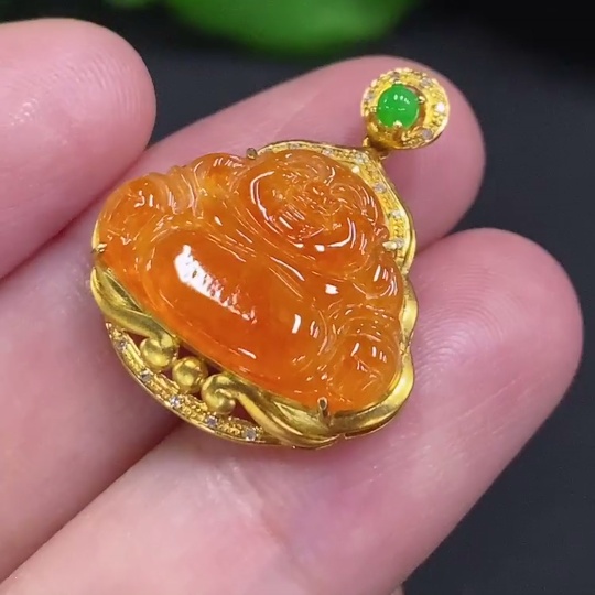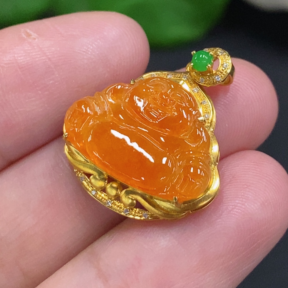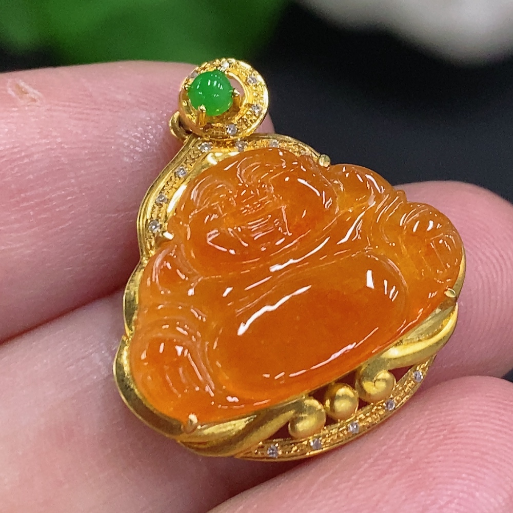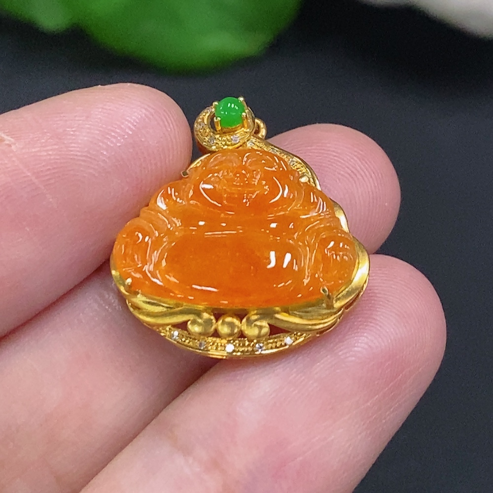 Jadeite Buddha Inlaid Pendant 18K Gold Total Weight Approx. 2.2g (With Diamond Inlays) (Color Origin Undetermined)