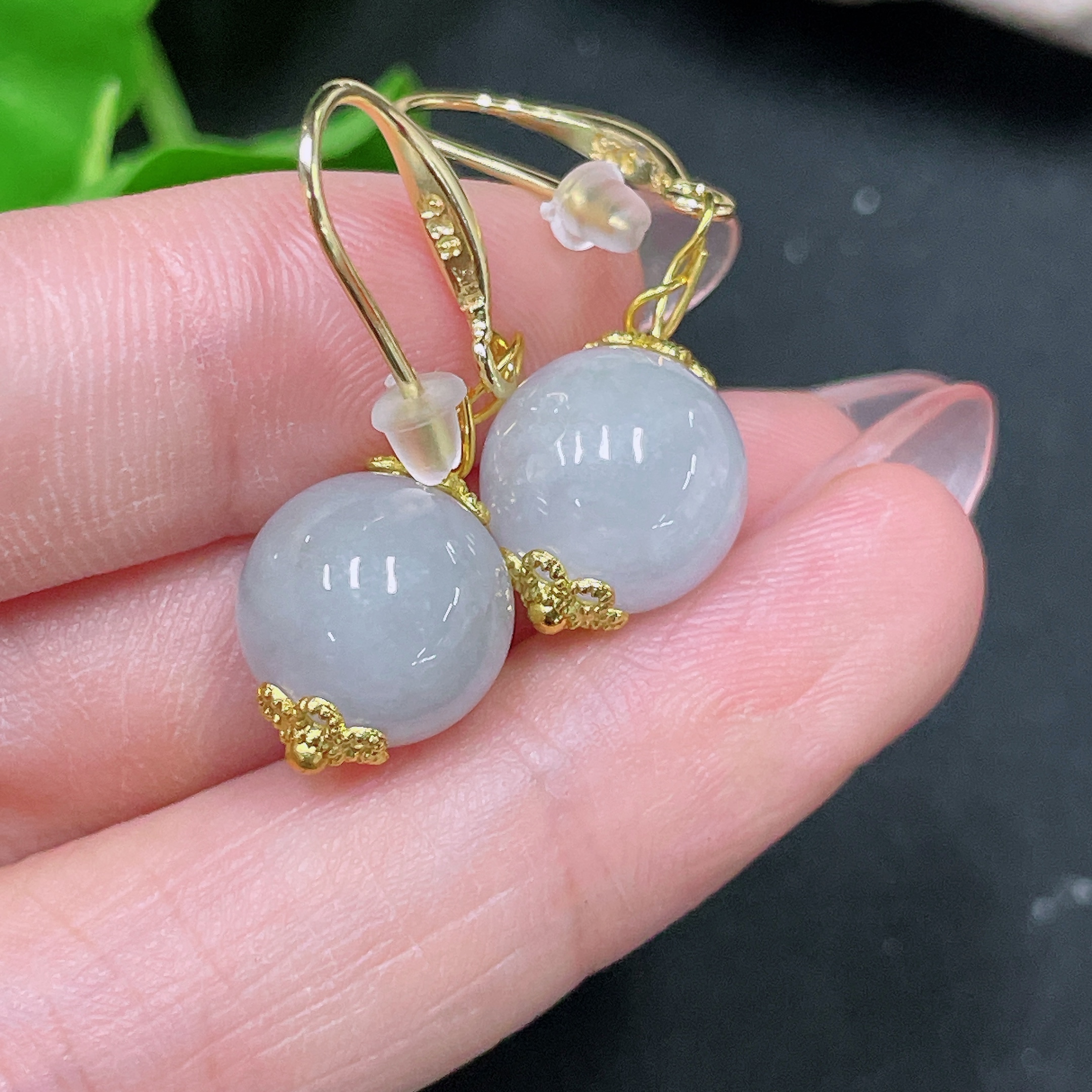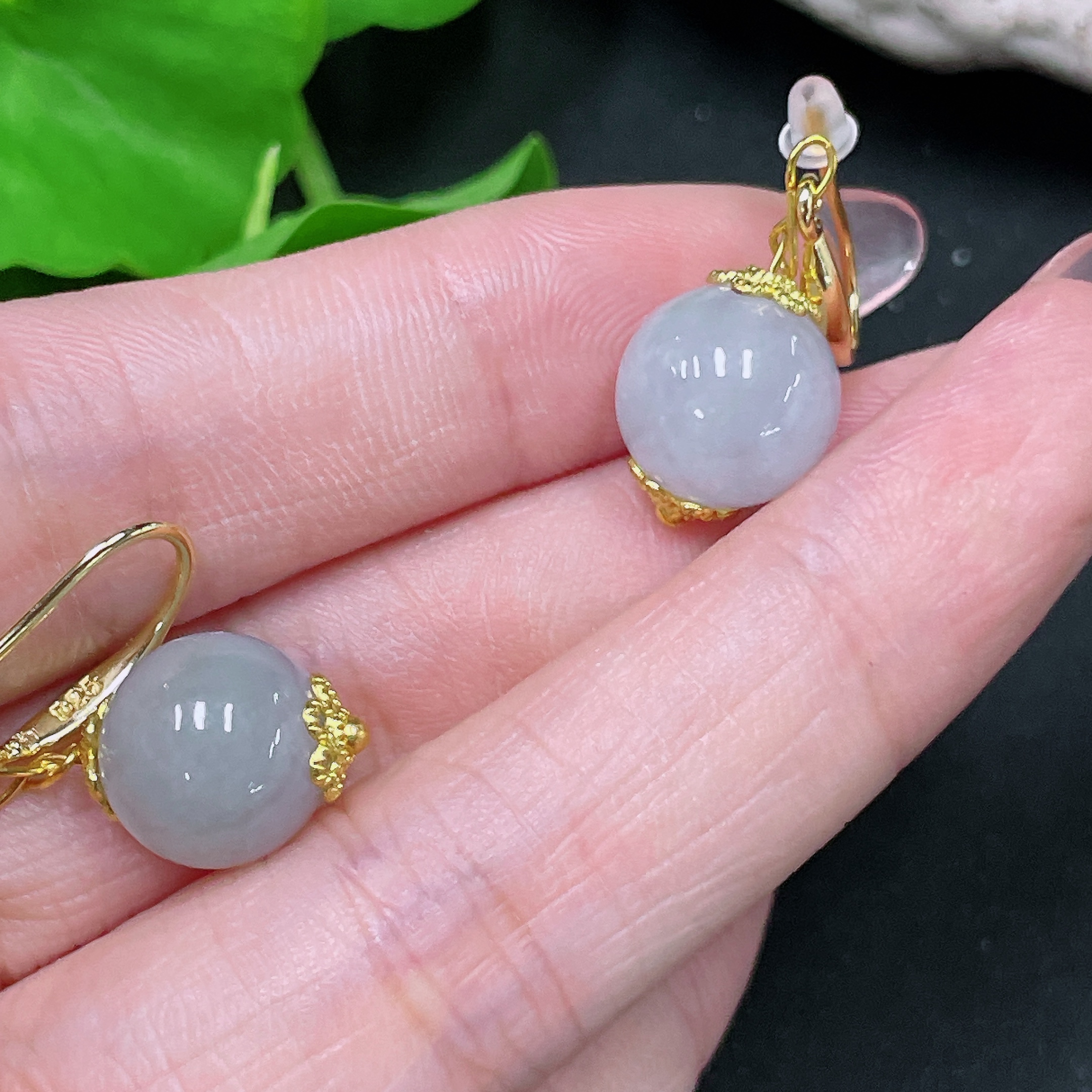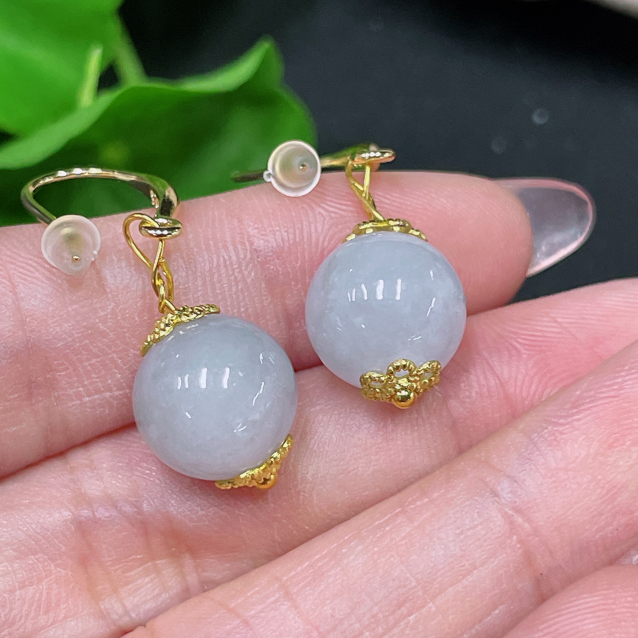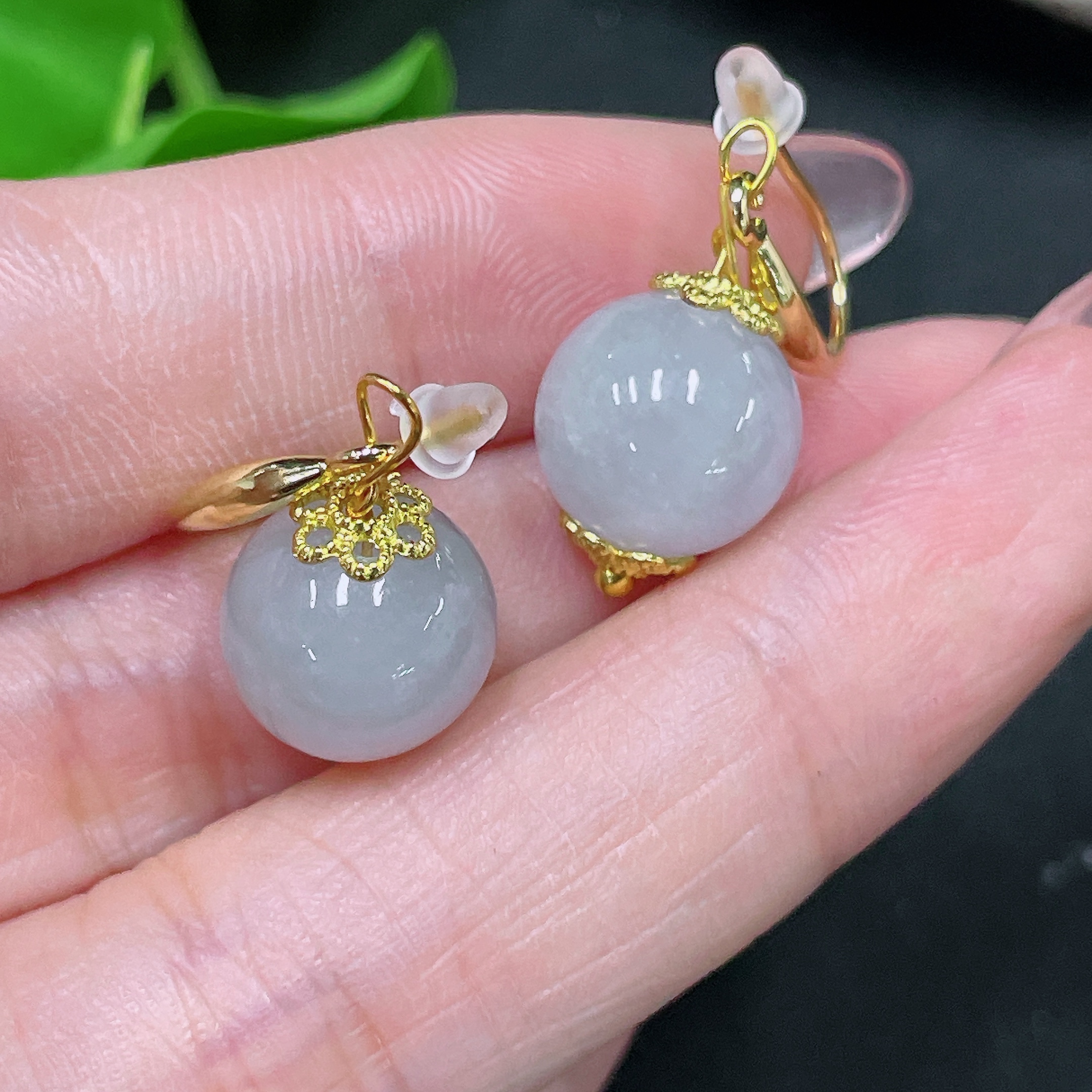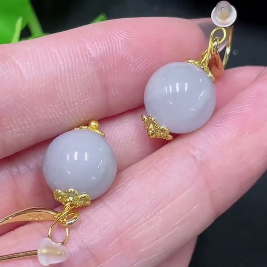 Jadeite Inlaid Earrings Size Approx.10.9mm Non-gold Inlaid Total Weight Approx.5.7g