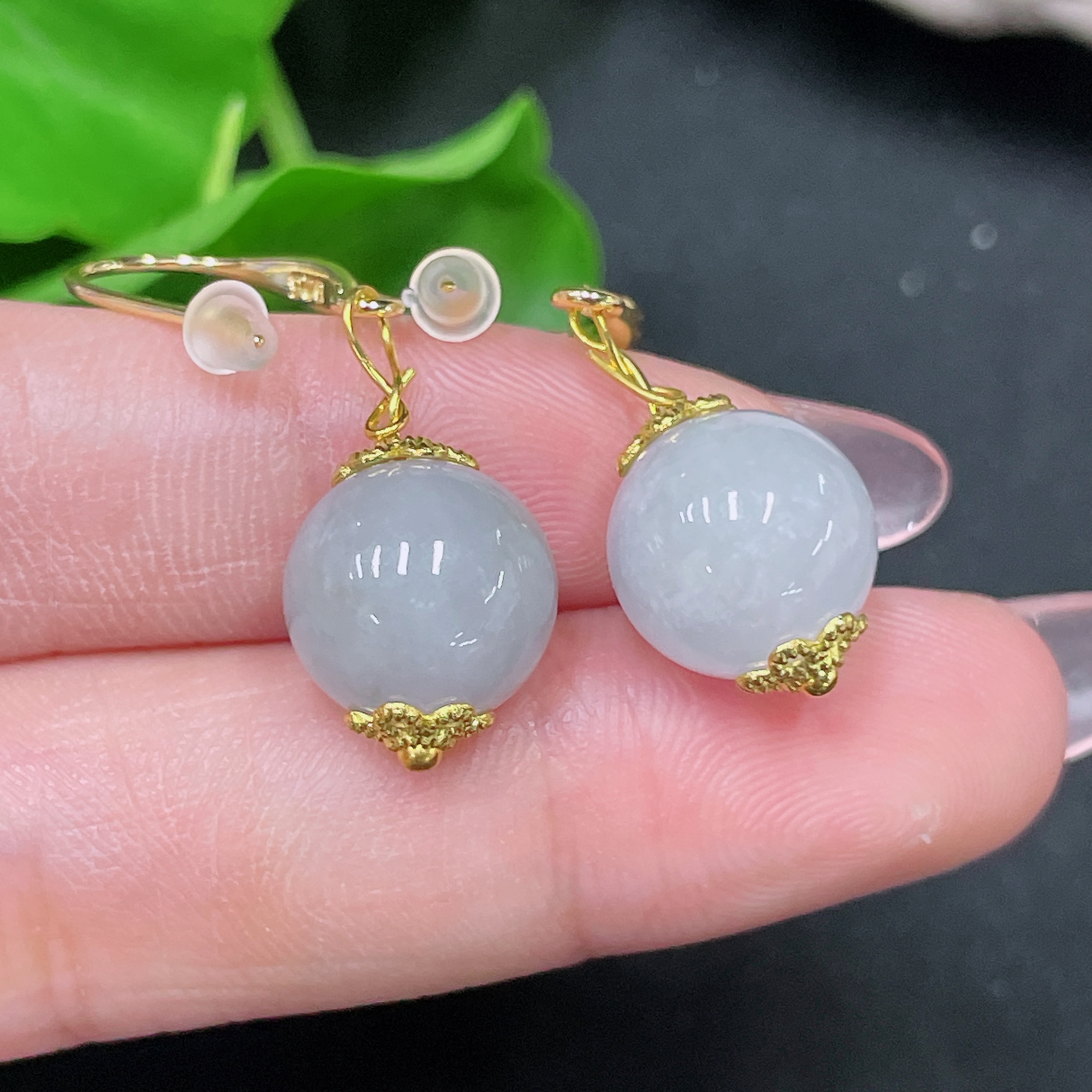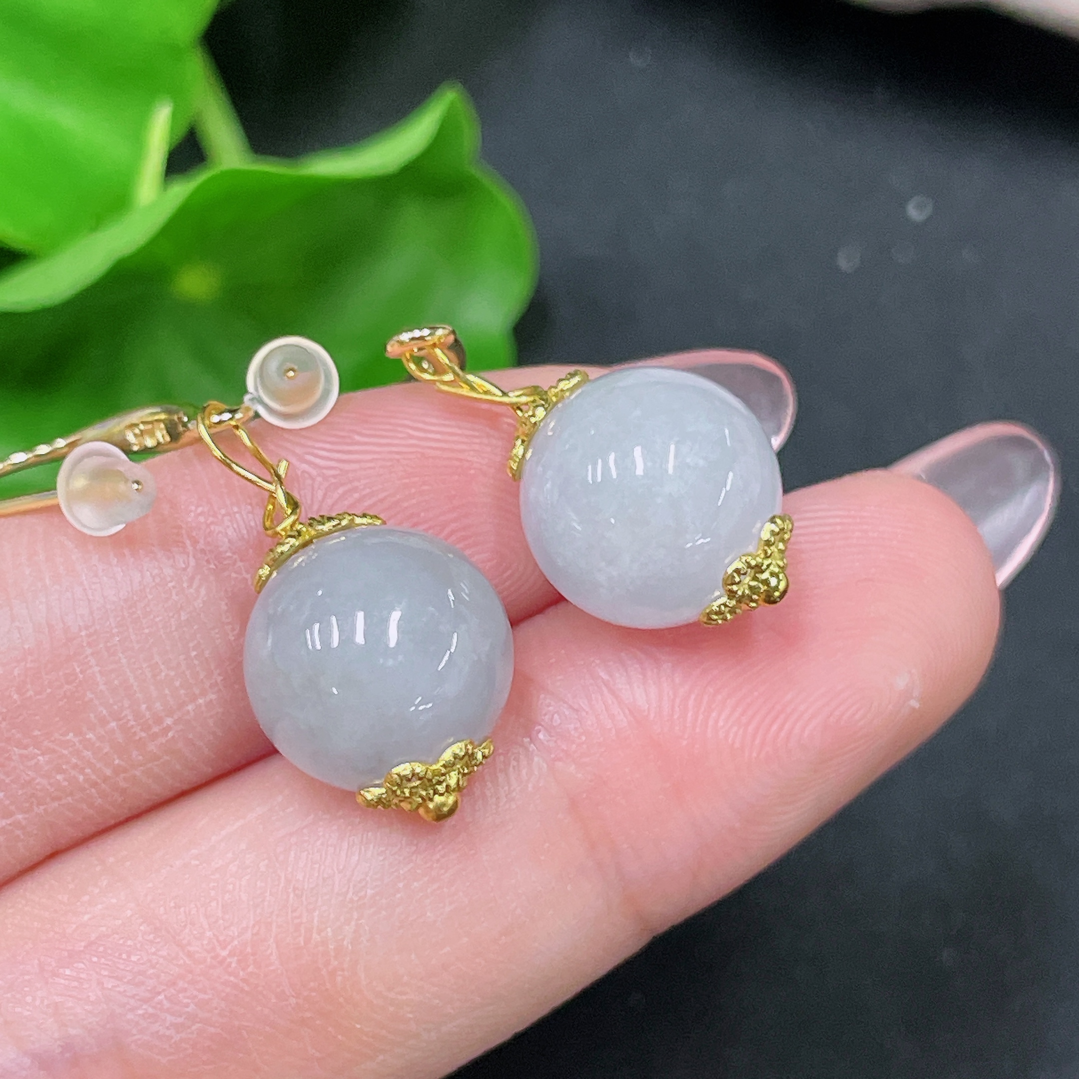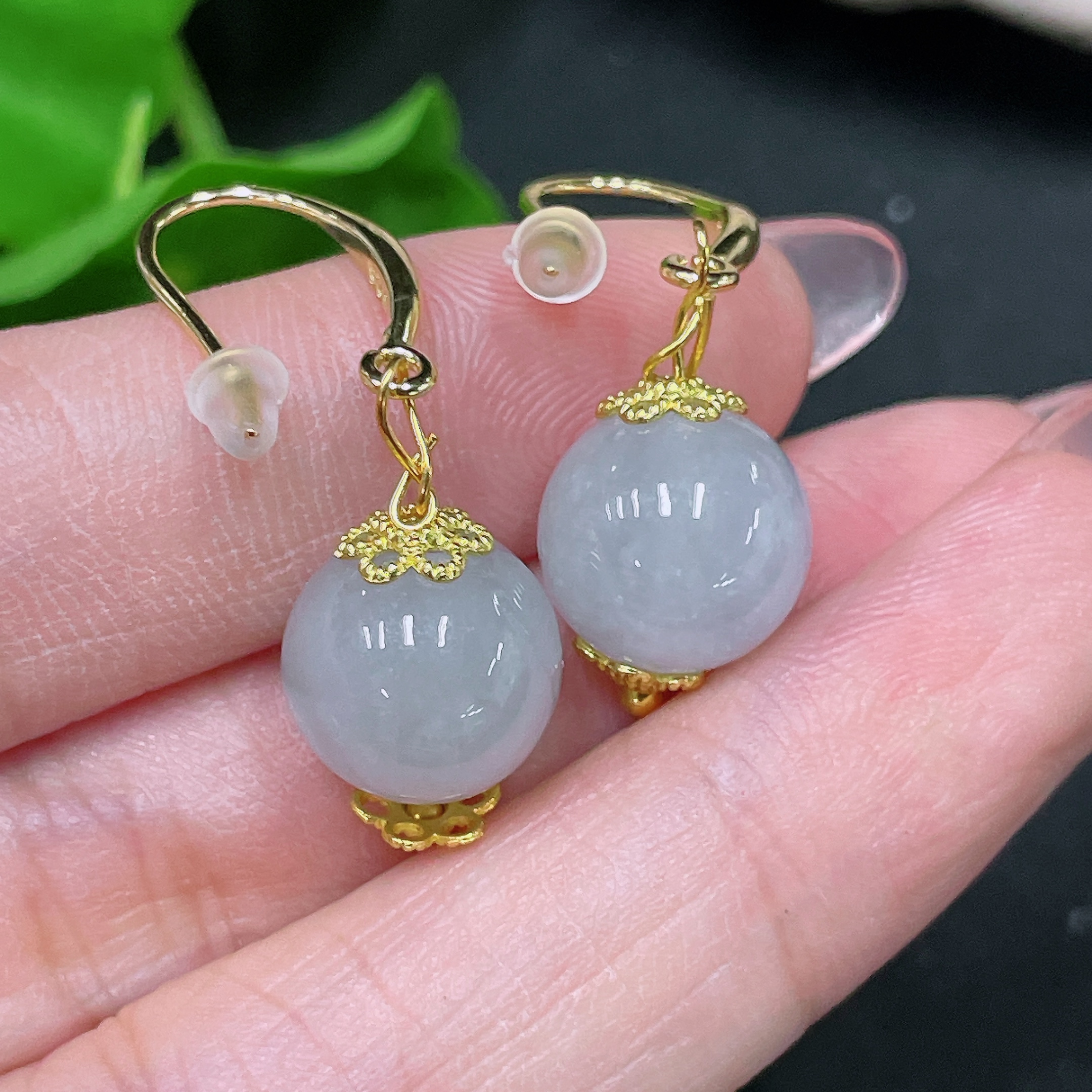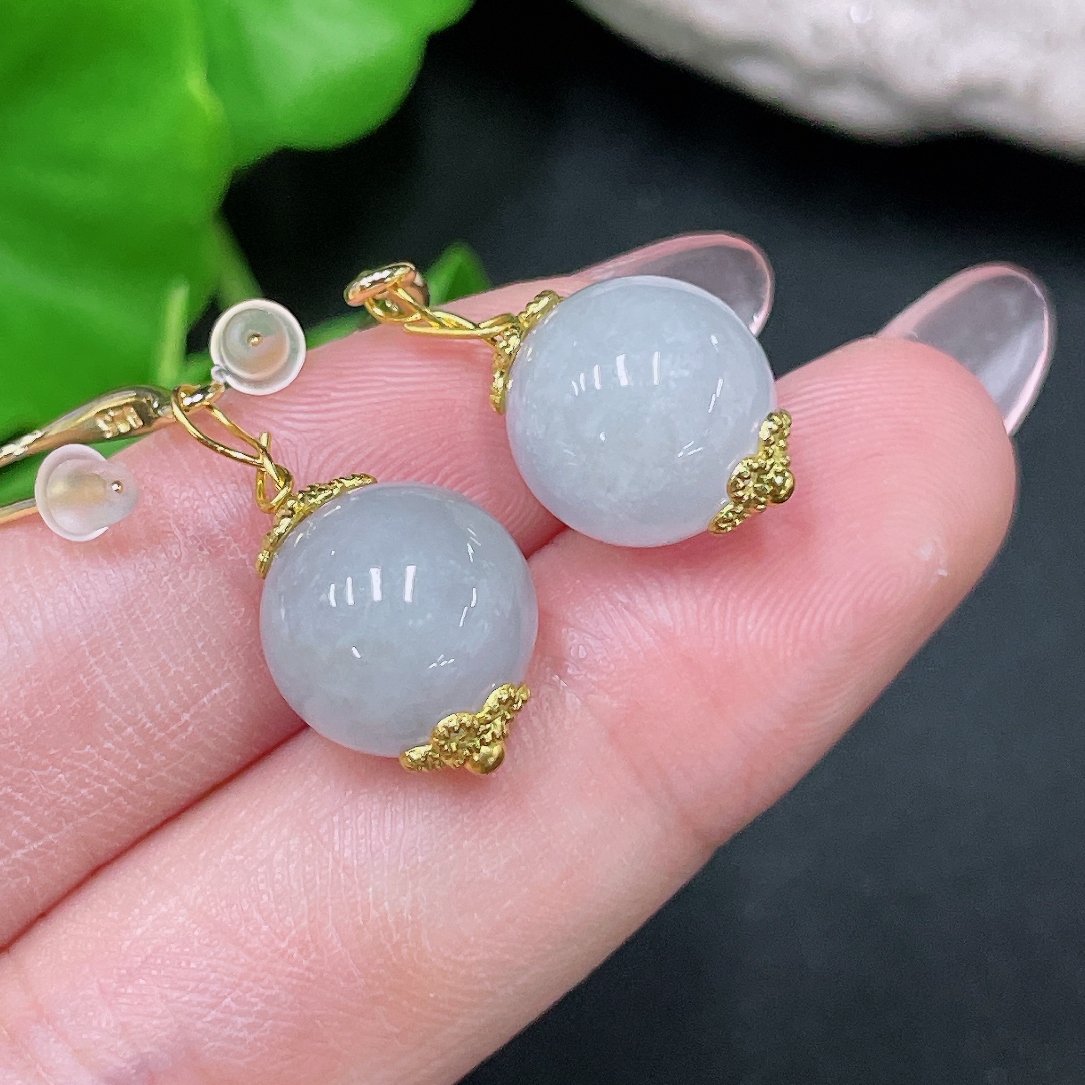 Jadeite Inlaid Earrings Size Approx.10.9mm Non-gold Inlaid Total Weight Approx.5.7g