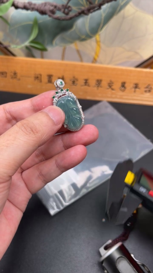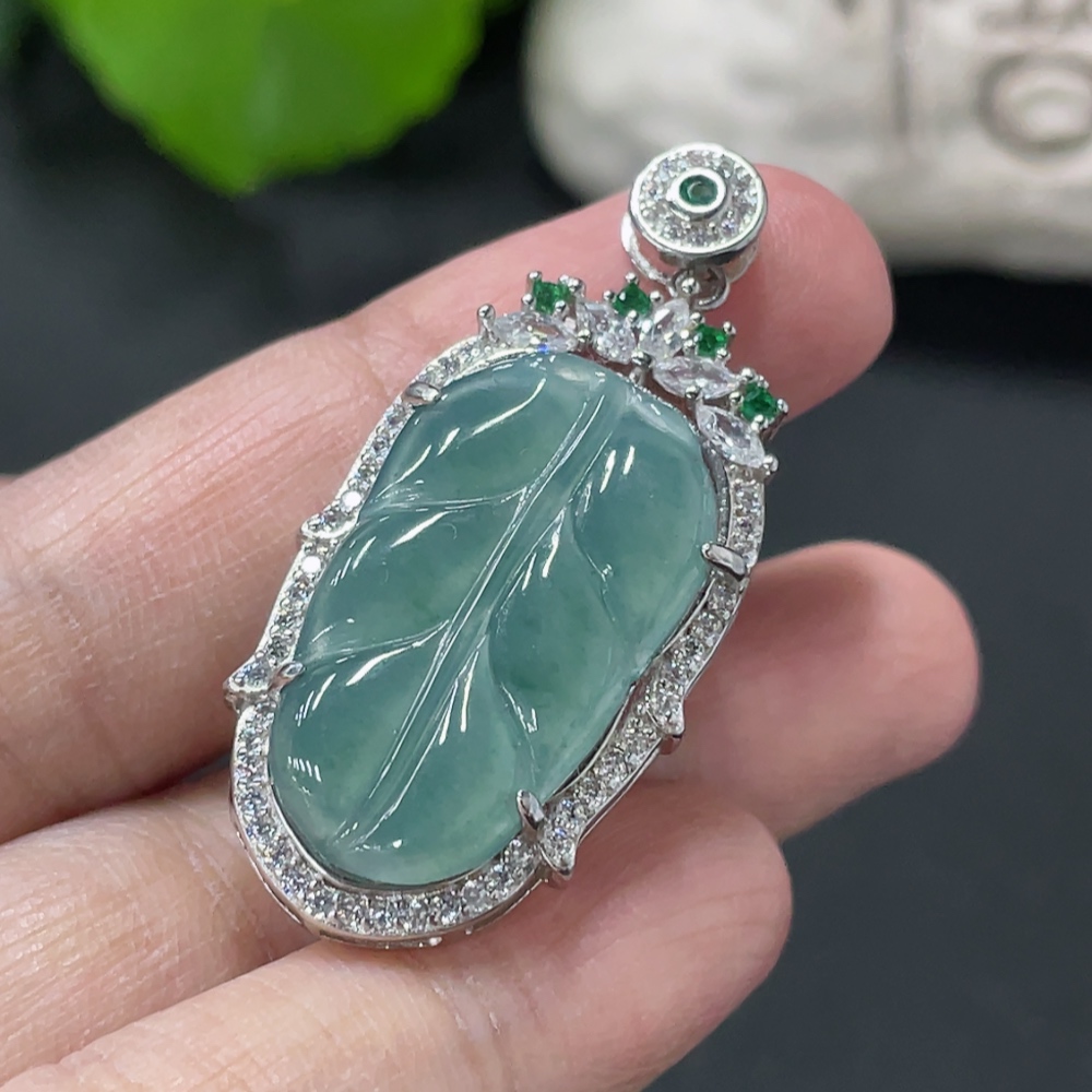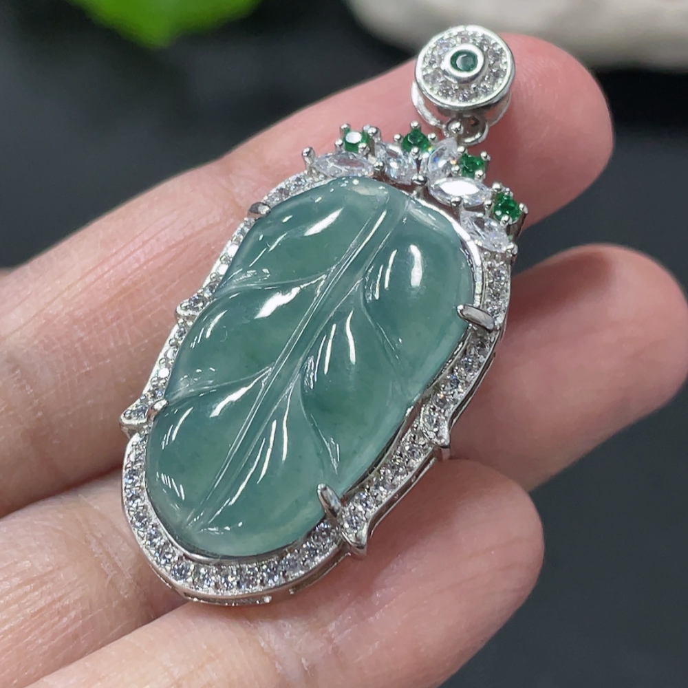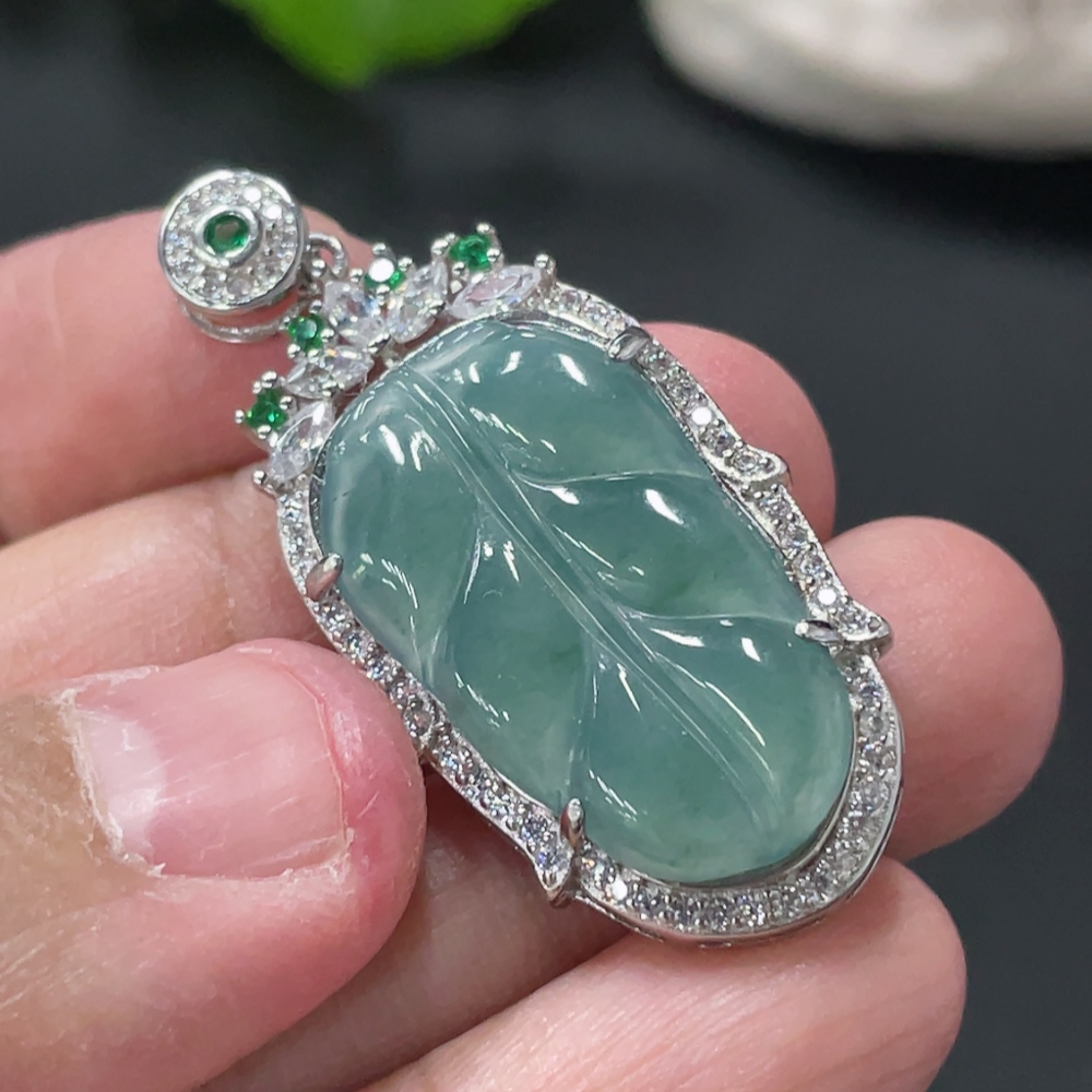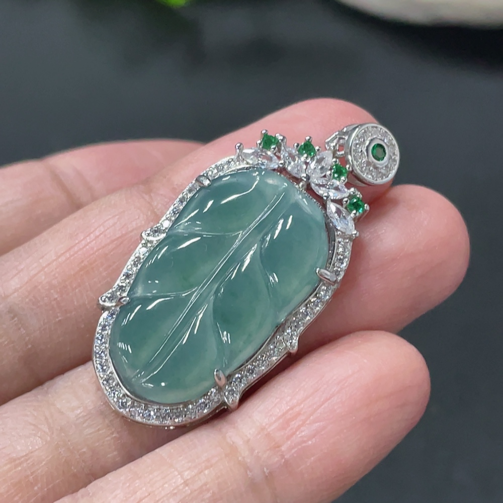Jadeite Leaf Inlaid Pendant Non-Gold Inlaid Total Weight About 4.48g