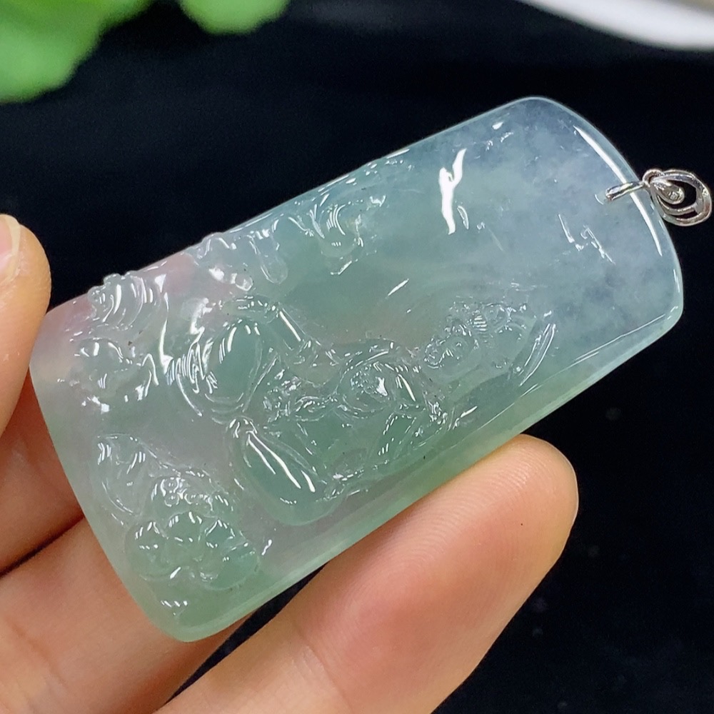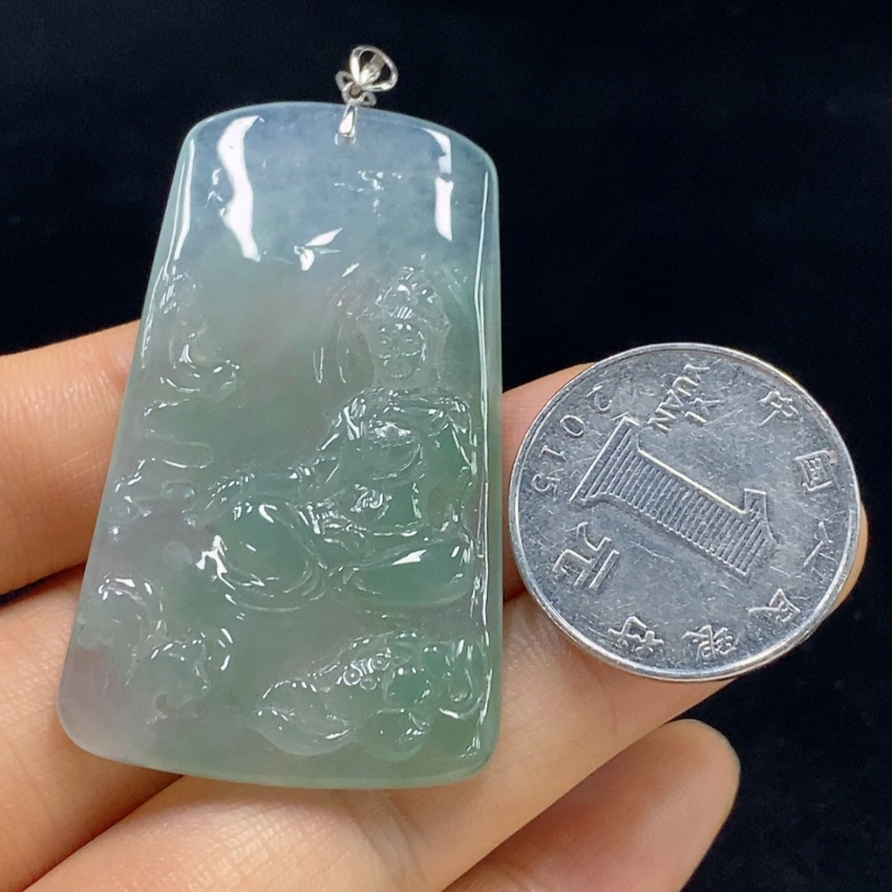 Jadeite Guanyin Pendant Total Weight Approx.20.1g 18k