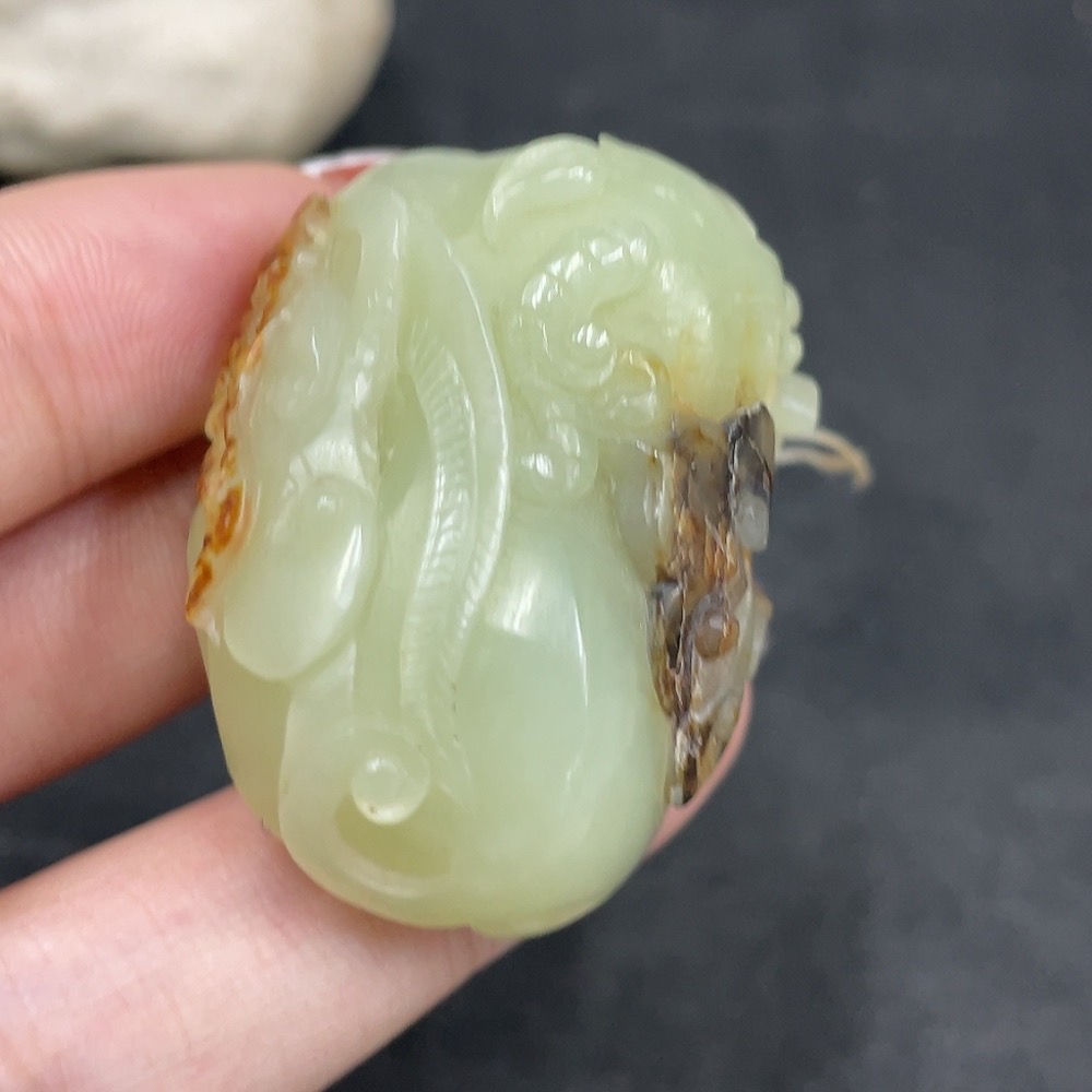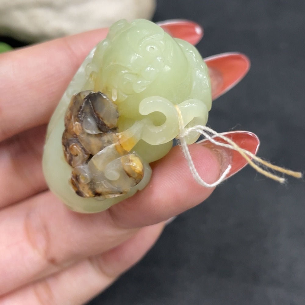 Hetian Jade Pendant, Auspicious Beast, Undetermined Skin Color Origin, Total Weight Approx. 37.8g