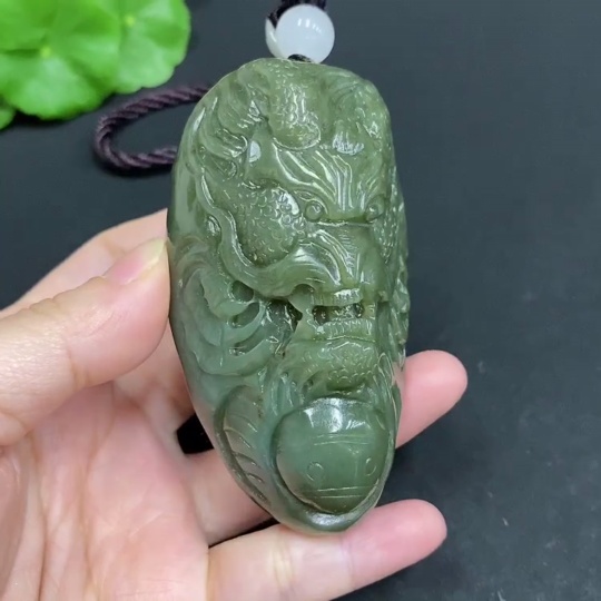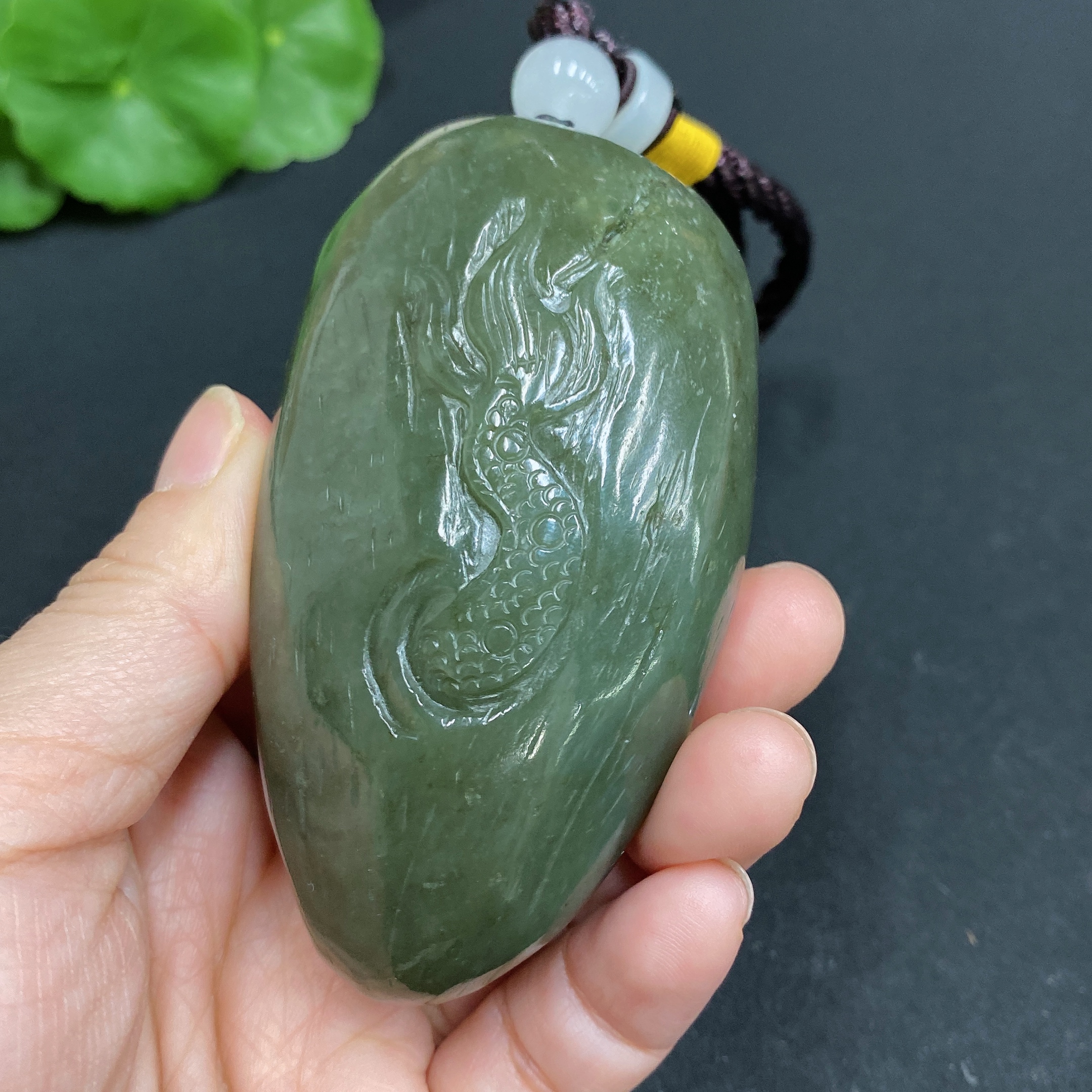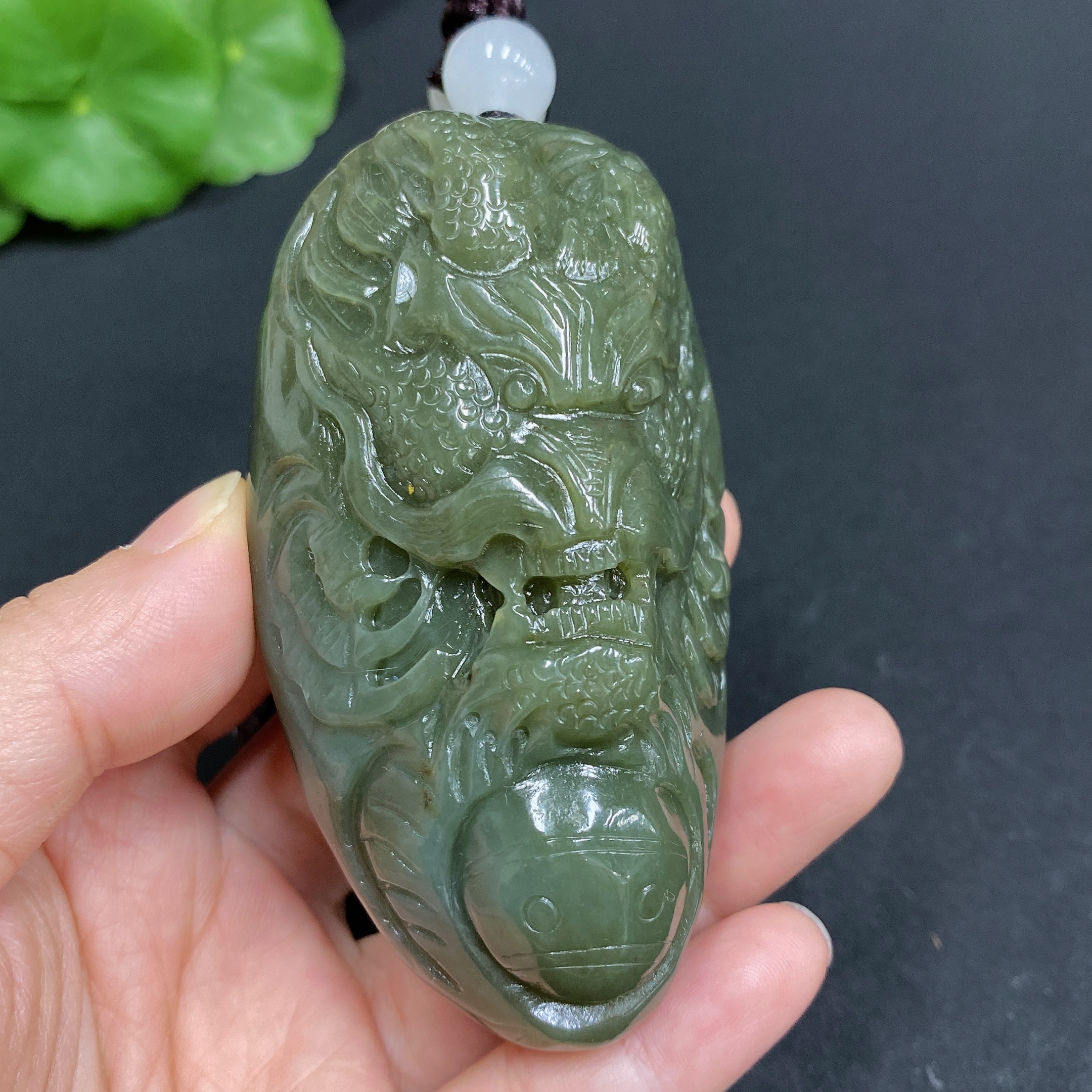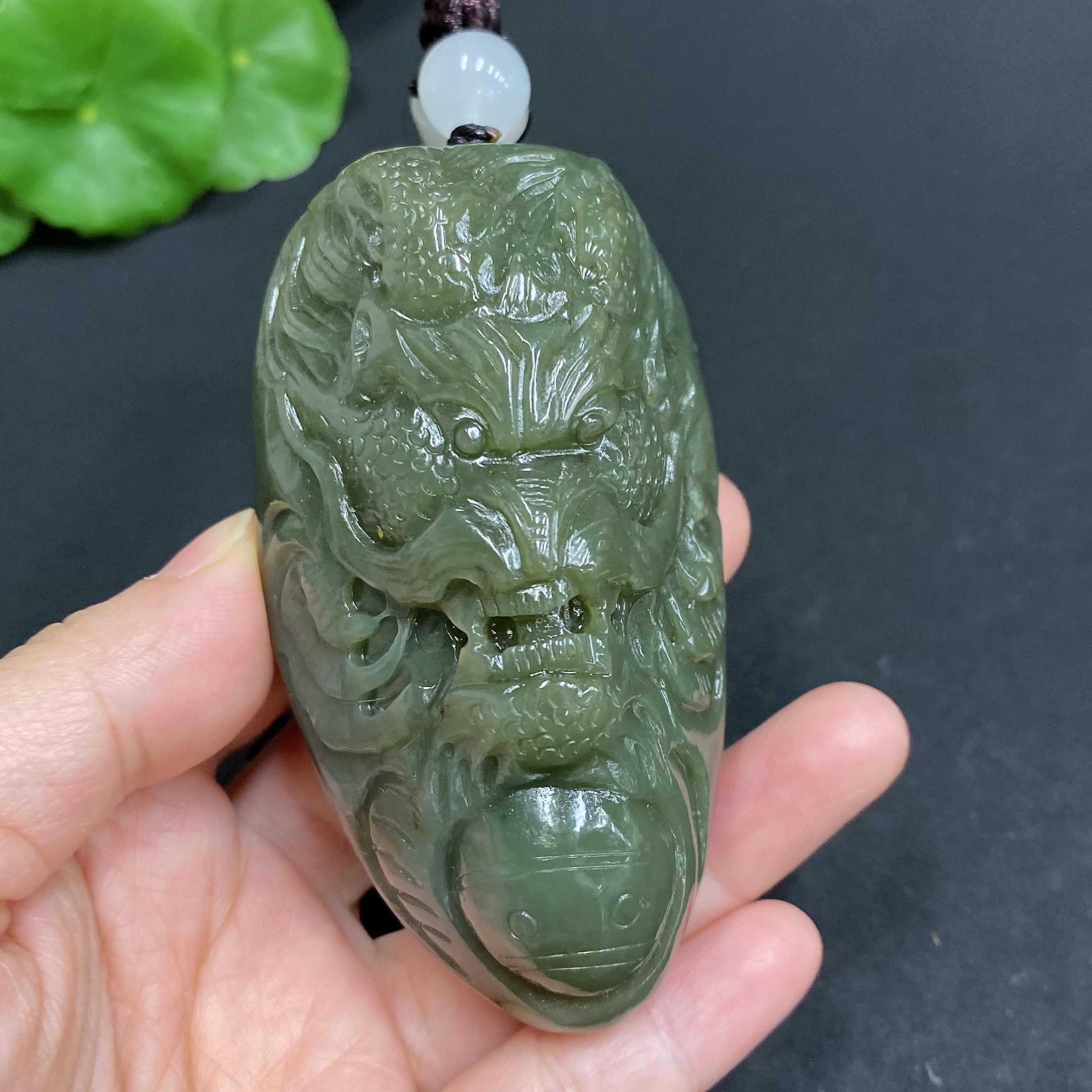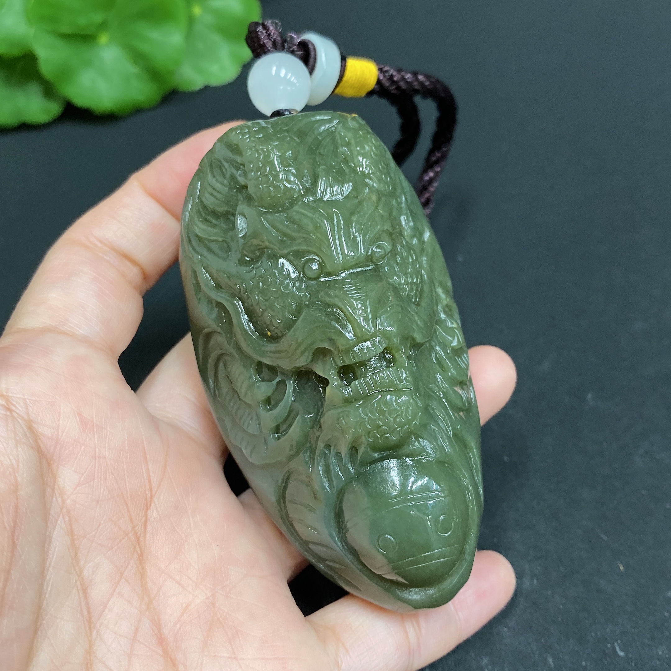 Hetian Jade Handheld Carving - Dragon (Total Weight Including Rope: 191.2g)